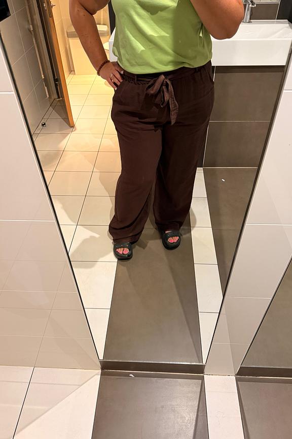 Associez ce pantalon fluide à un haut ajusté et des sandales à talons pour un style raffiné et décontracté. Parfait en toute saison. • Pantalon ample fluide • Taille élastique pour confort • Jambes larges pour une silhouette légère • Matière douce et agréable • Polyvalent et élégant