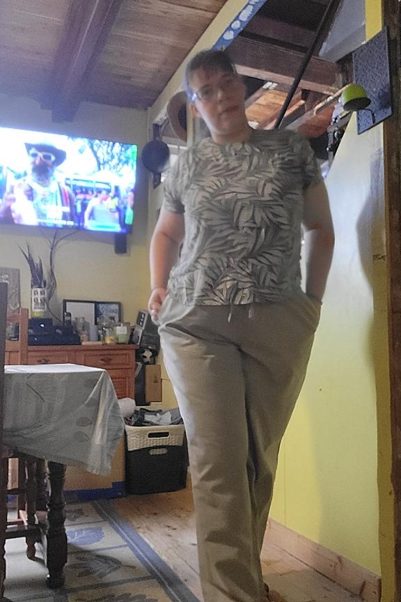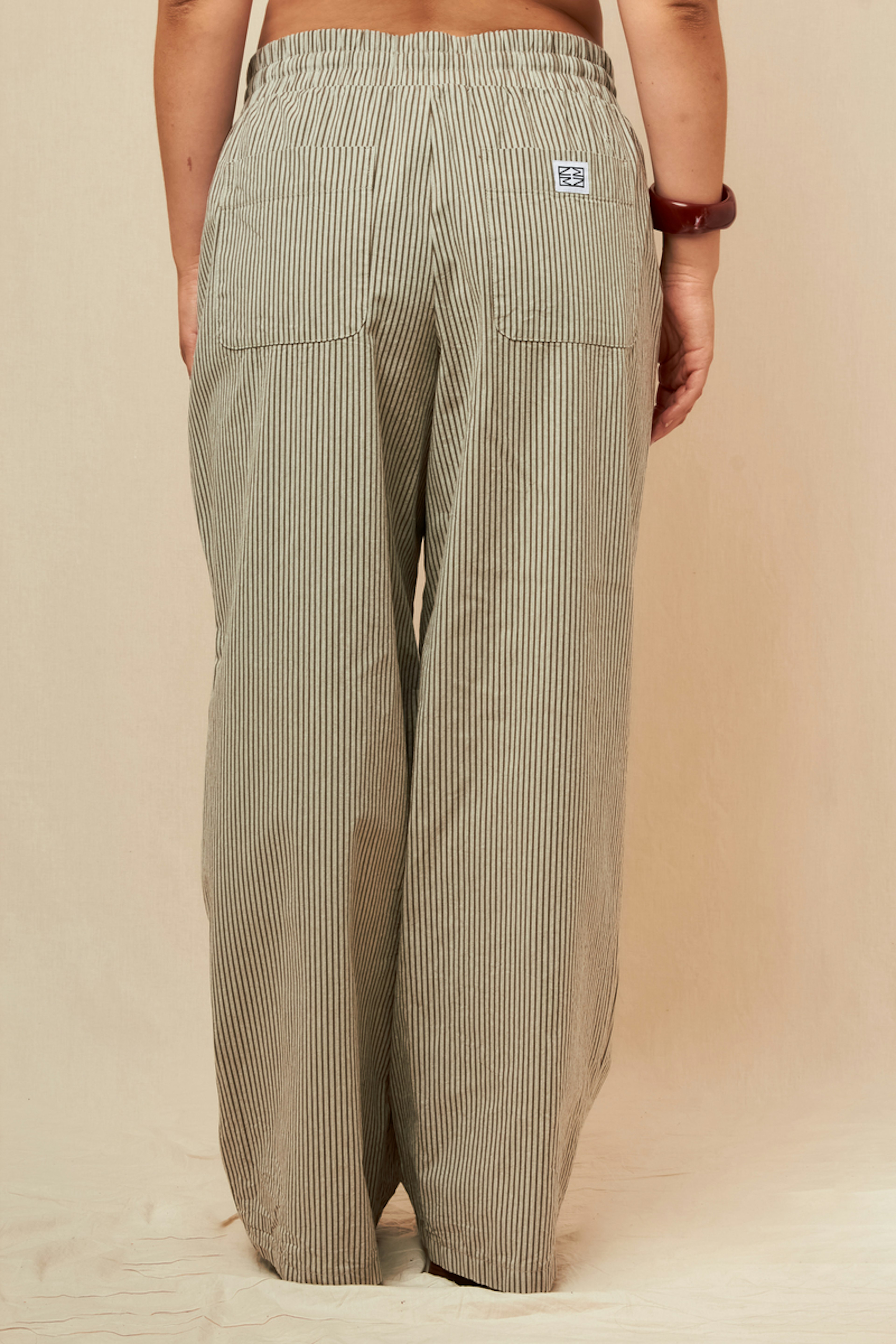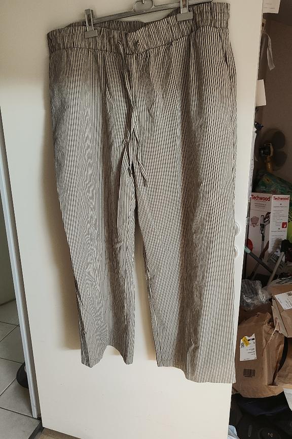 Associez ce pantalon à un haut léger pour un look estival parfait. Ajoutez-y des sandales pour compléter l'ensemble. • Pantalon large fluide • Taille élastiquée • Cordon de serrage • Rayures verticales • Couleur beige imprimé