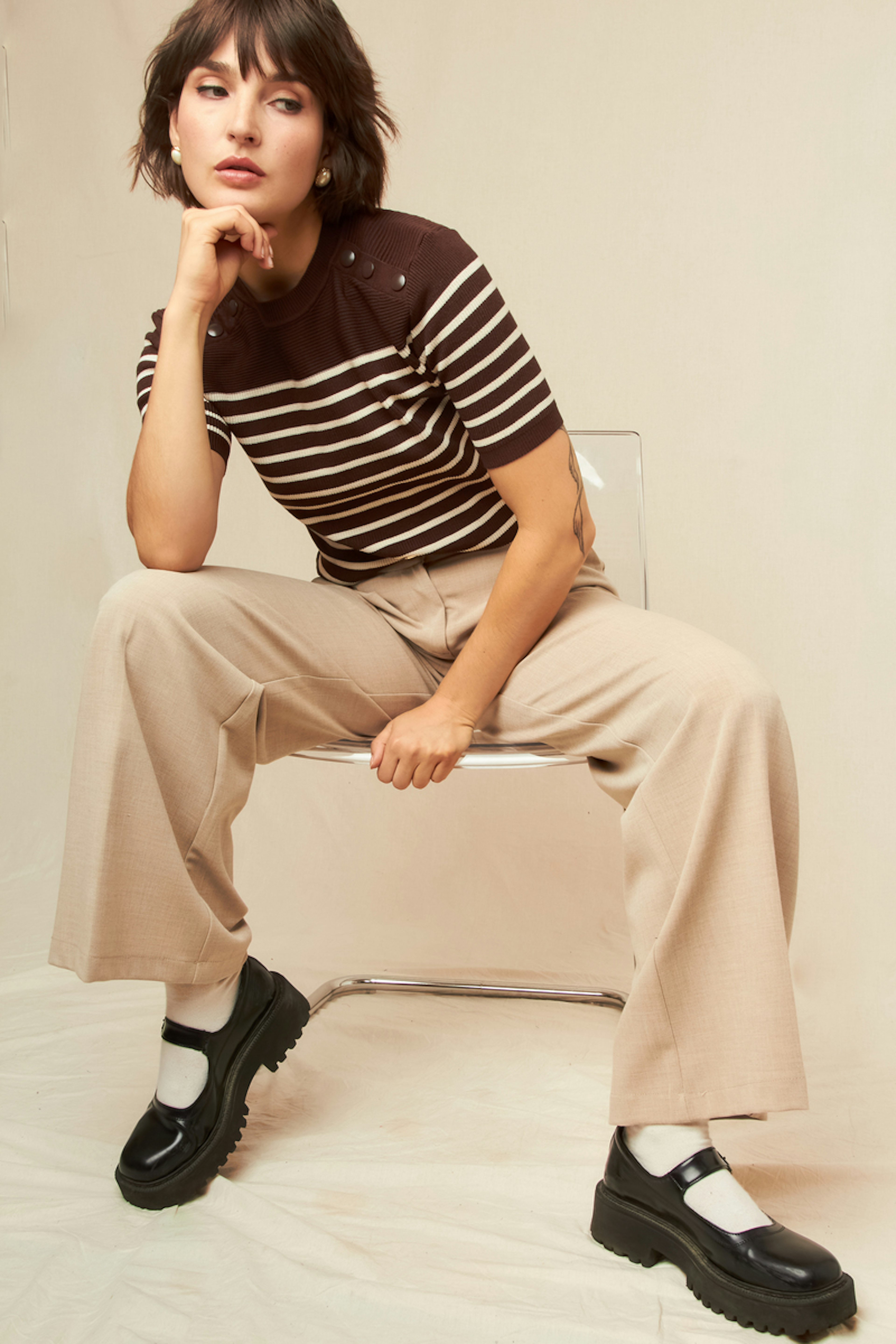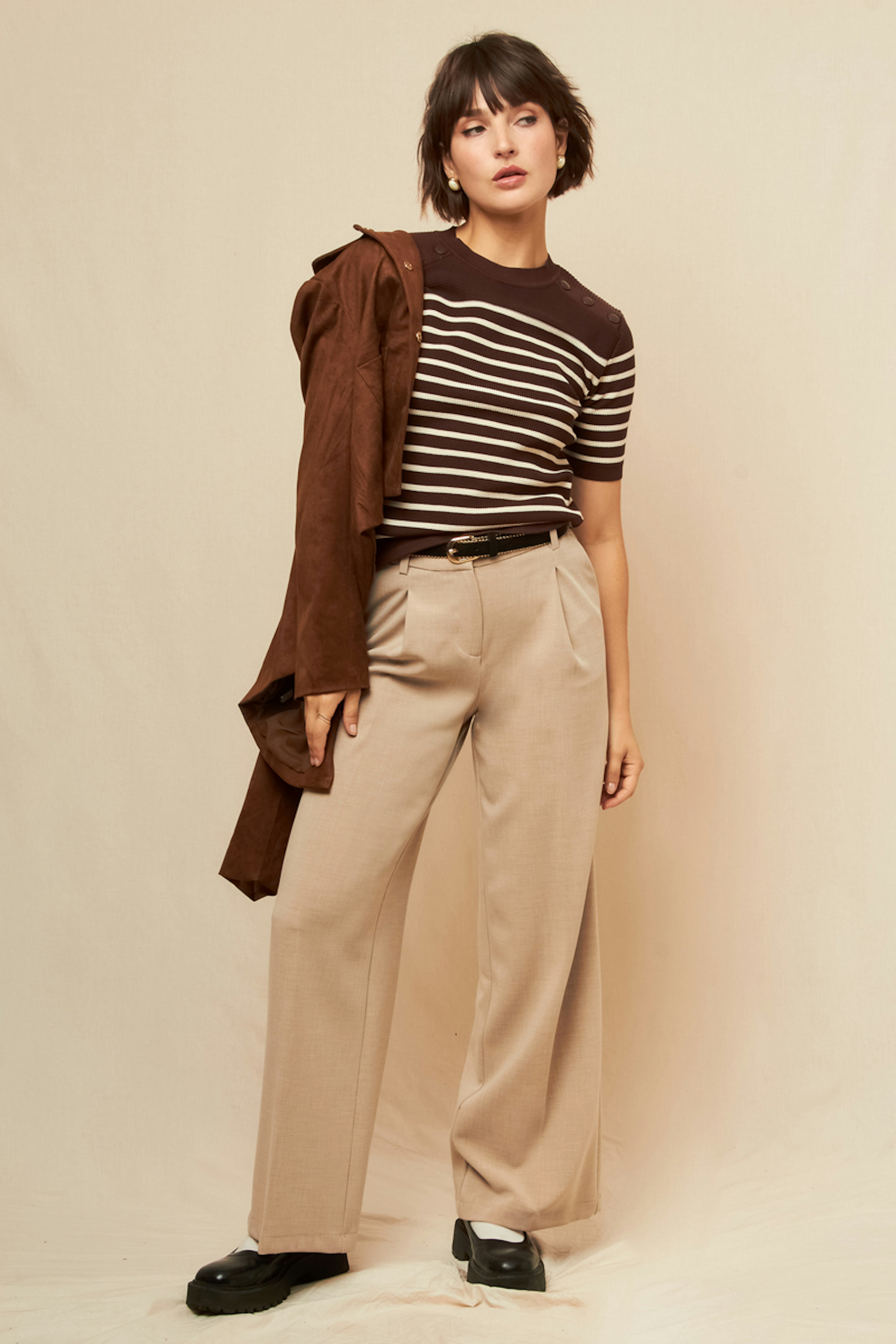 Associez ce pantalon élégant avec un top en soie et des sandales à talons pour un look chic en toute occasion. Parfait en toute saison. • Pantalon large • Taille haute flatteuse • Coupe décontractée • Ourlets maxi • Tissu doux écru