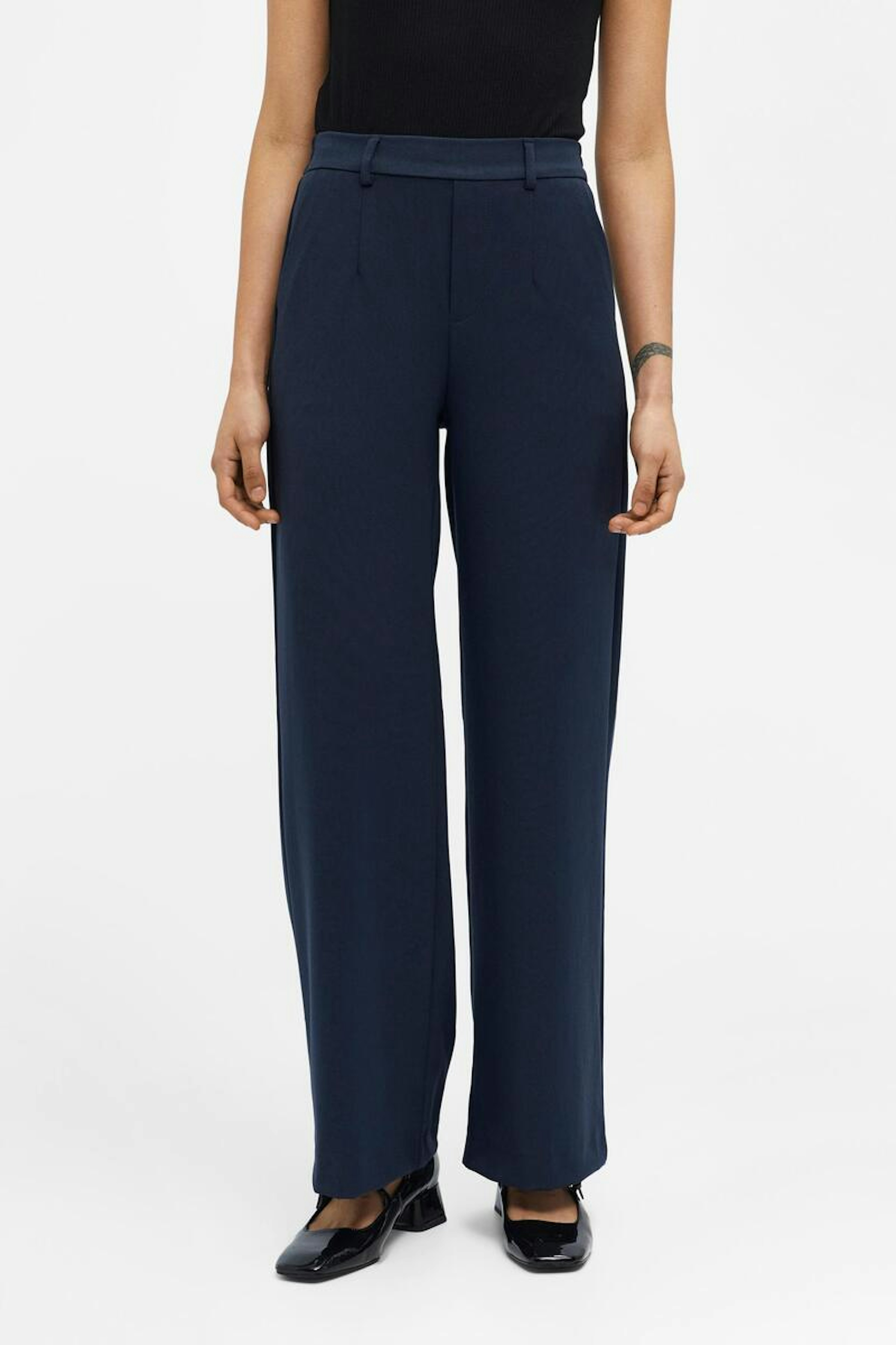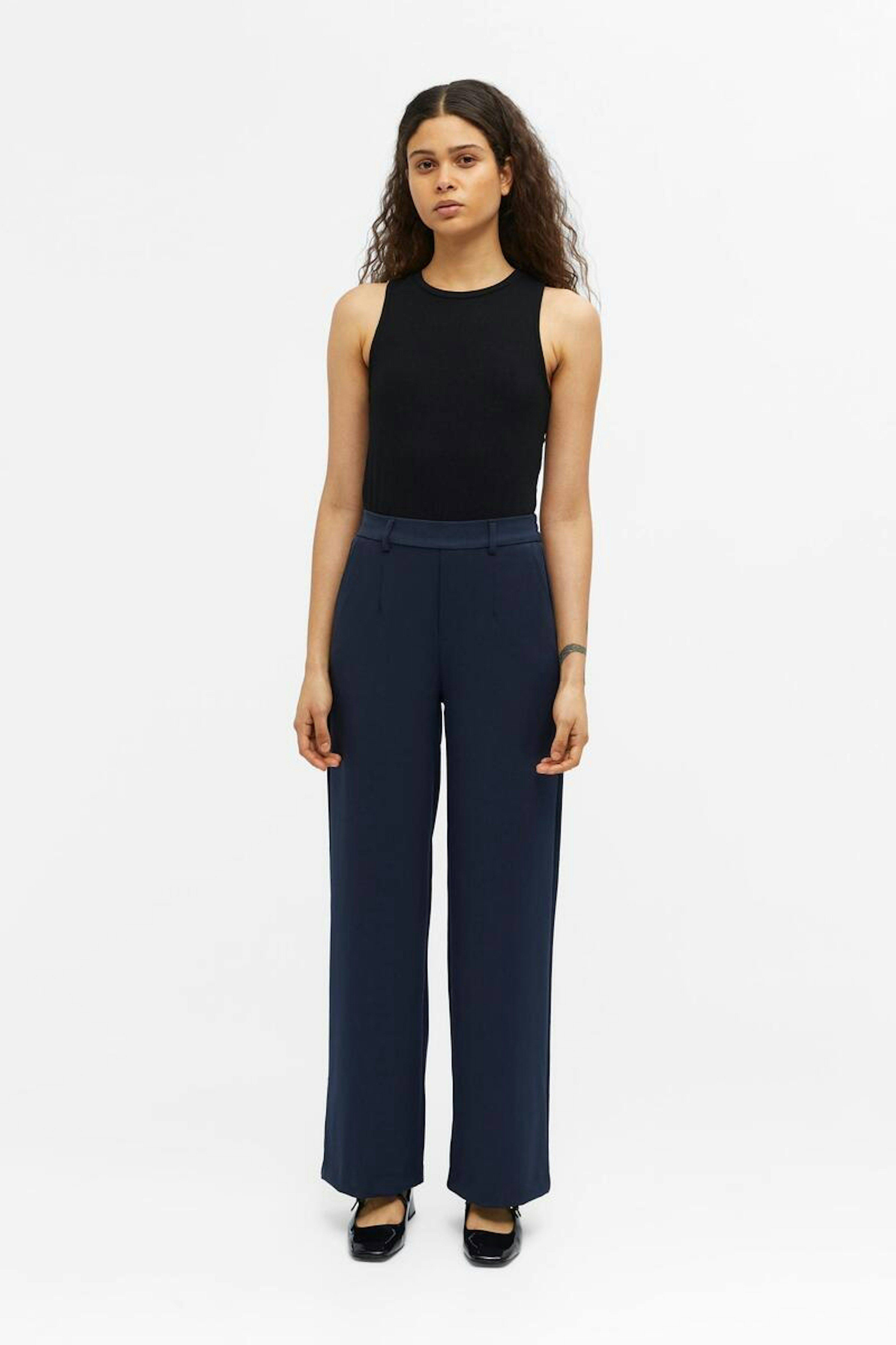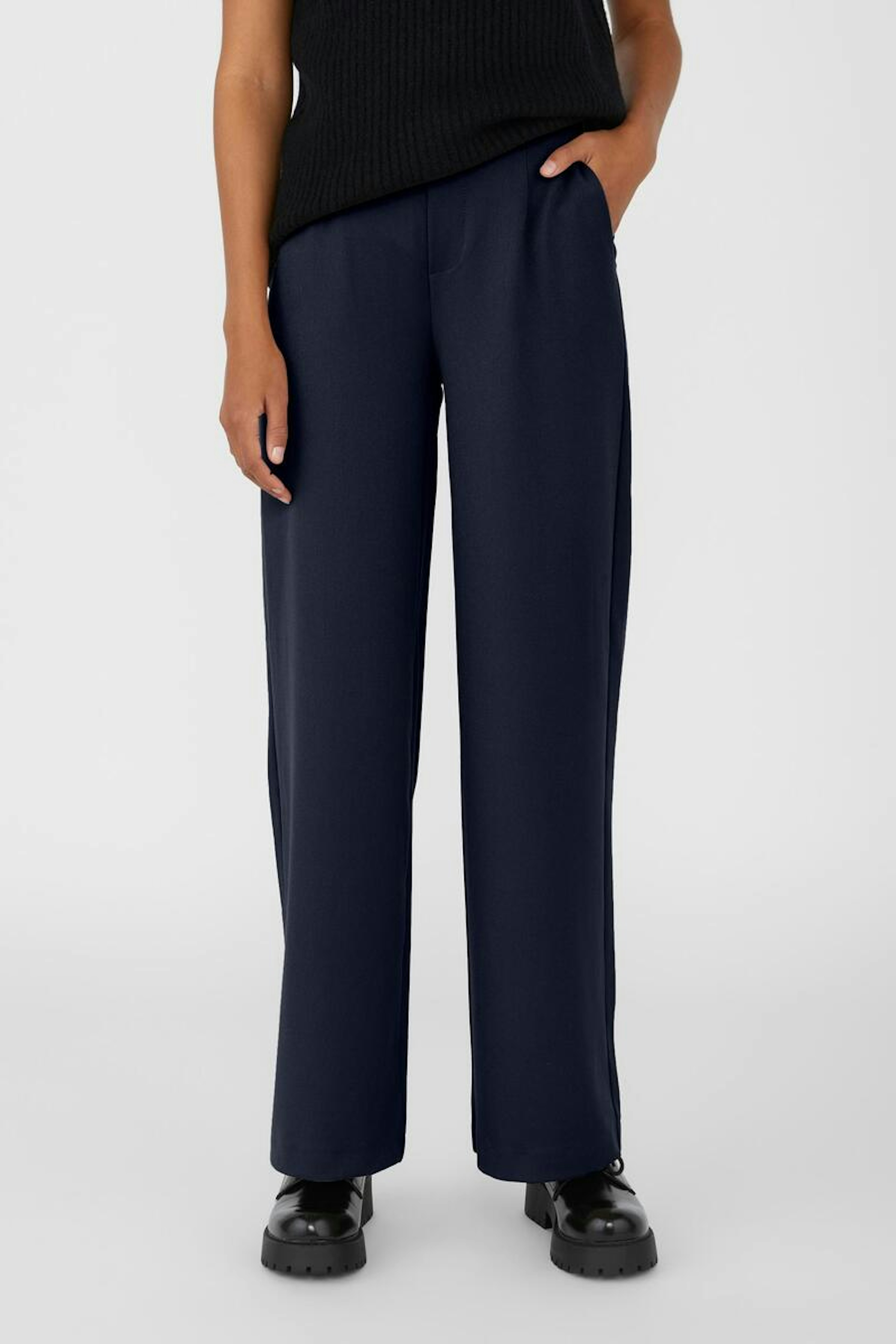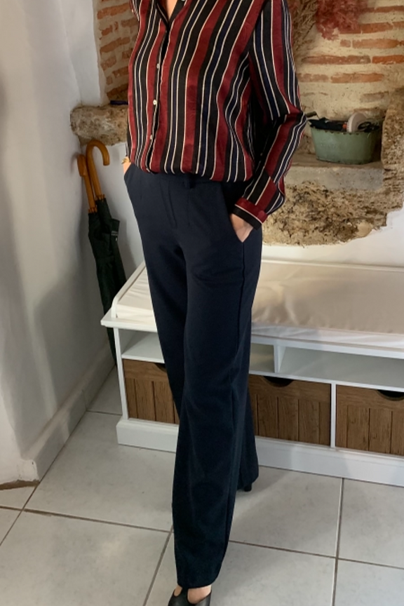 โข Pantalon รฉlรฉgant uni marine โข Coupe รฉvasรฉe โข Poches italiennes โข Contient du polyester recyclรฉ โข Passants pour la ceinture