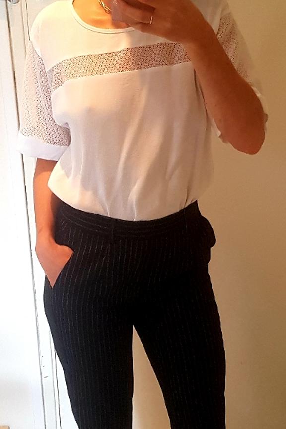 On adore la coupe carotte de ce pantalon Object. Il se porte aussi bien de faรงon habillรฉe que dรฉcontractรฉe. โข Pantalon รฉlรฉgant โข Imprimรฉ ร rayures fines blanches sur fond noir โข Coupe carotte โข Poches italiennes โข Contient du polyester recyclรฉ