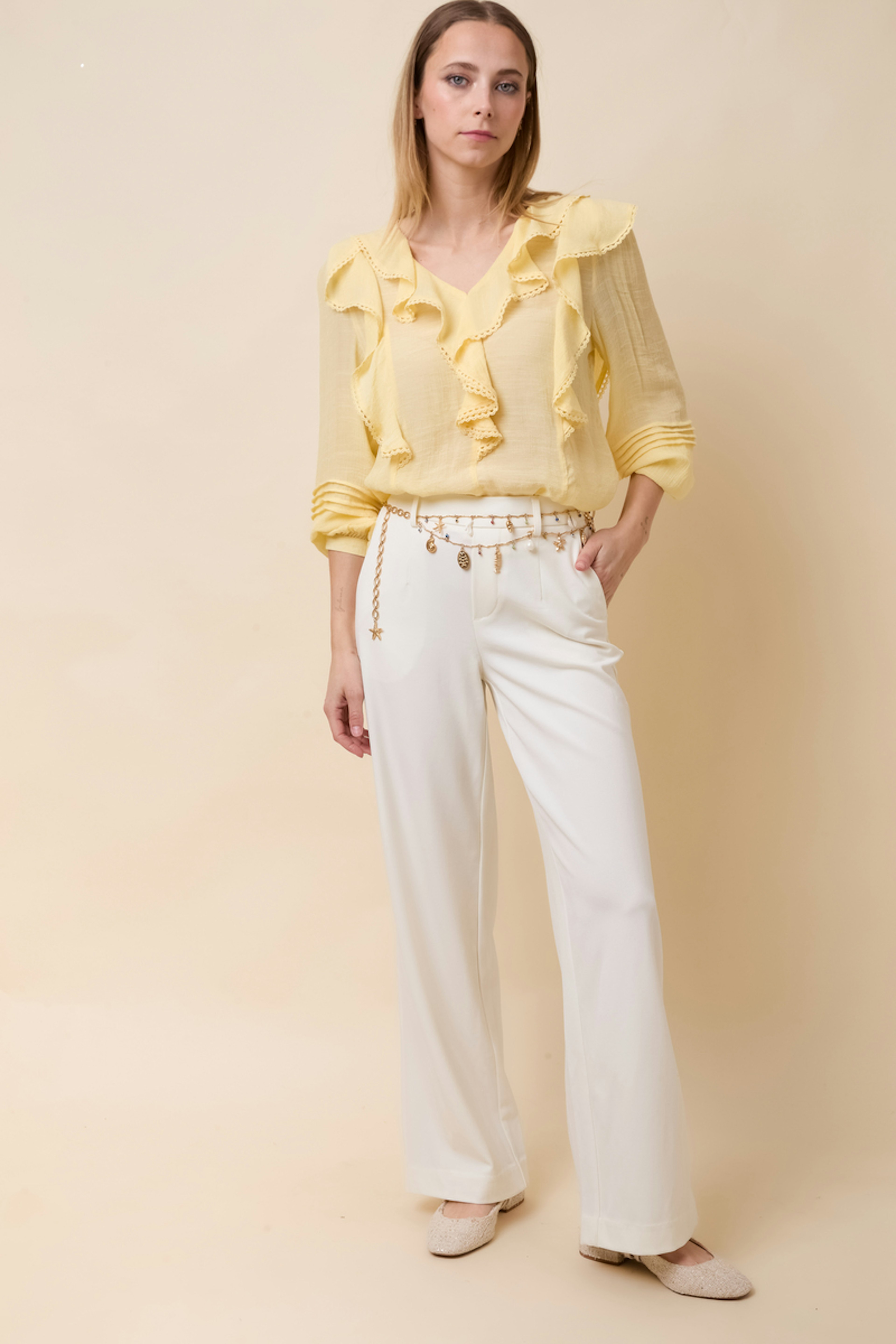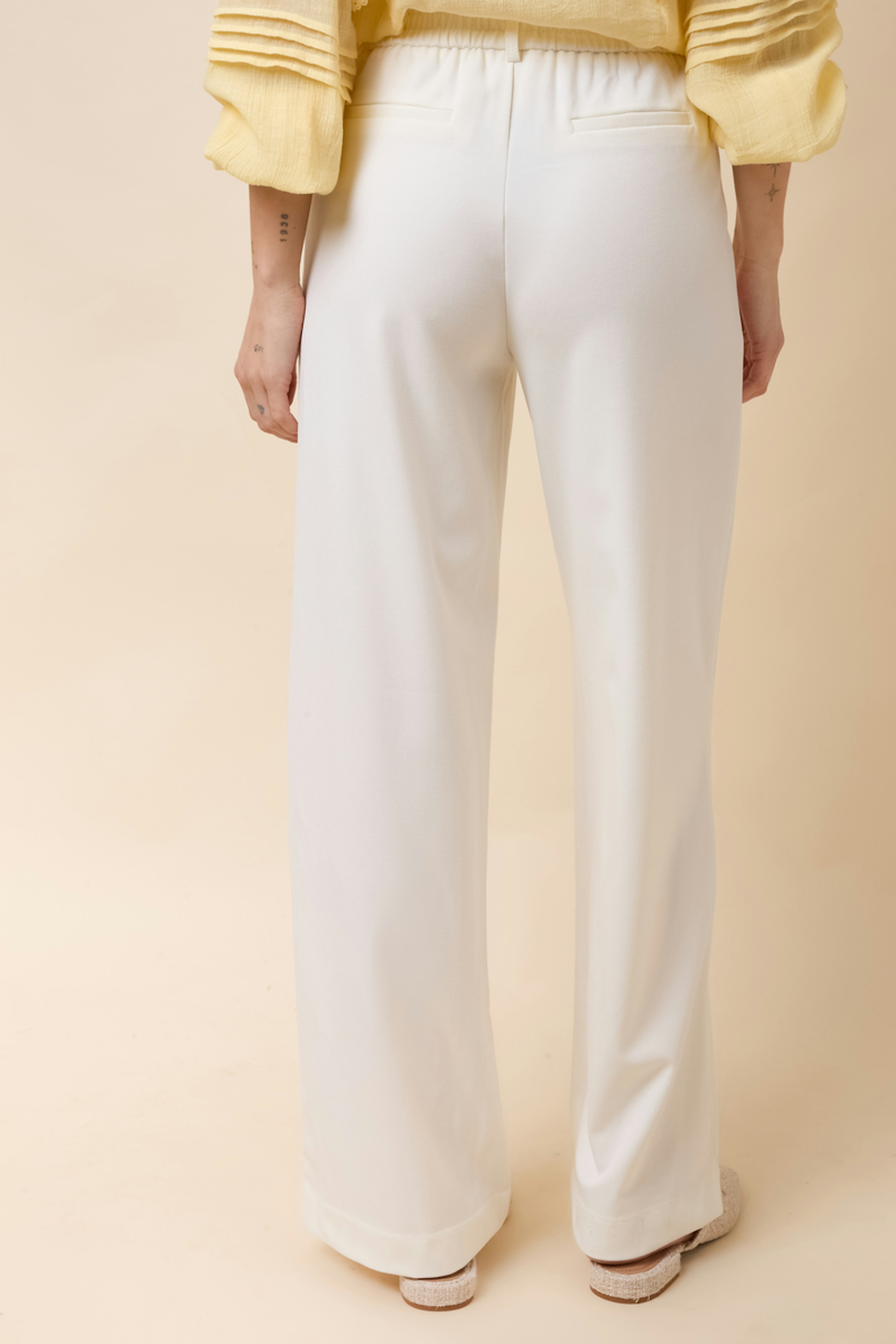 Associez ce pantalon large avec un chemisier fluide pour une élégance intemporelle, ou optez pour un t-shirt décontracté. Parfait en toute saison. • Pantalon à jambe large • Taille moyenne • Poches latérales • Taille élastiquée • Sans doublure