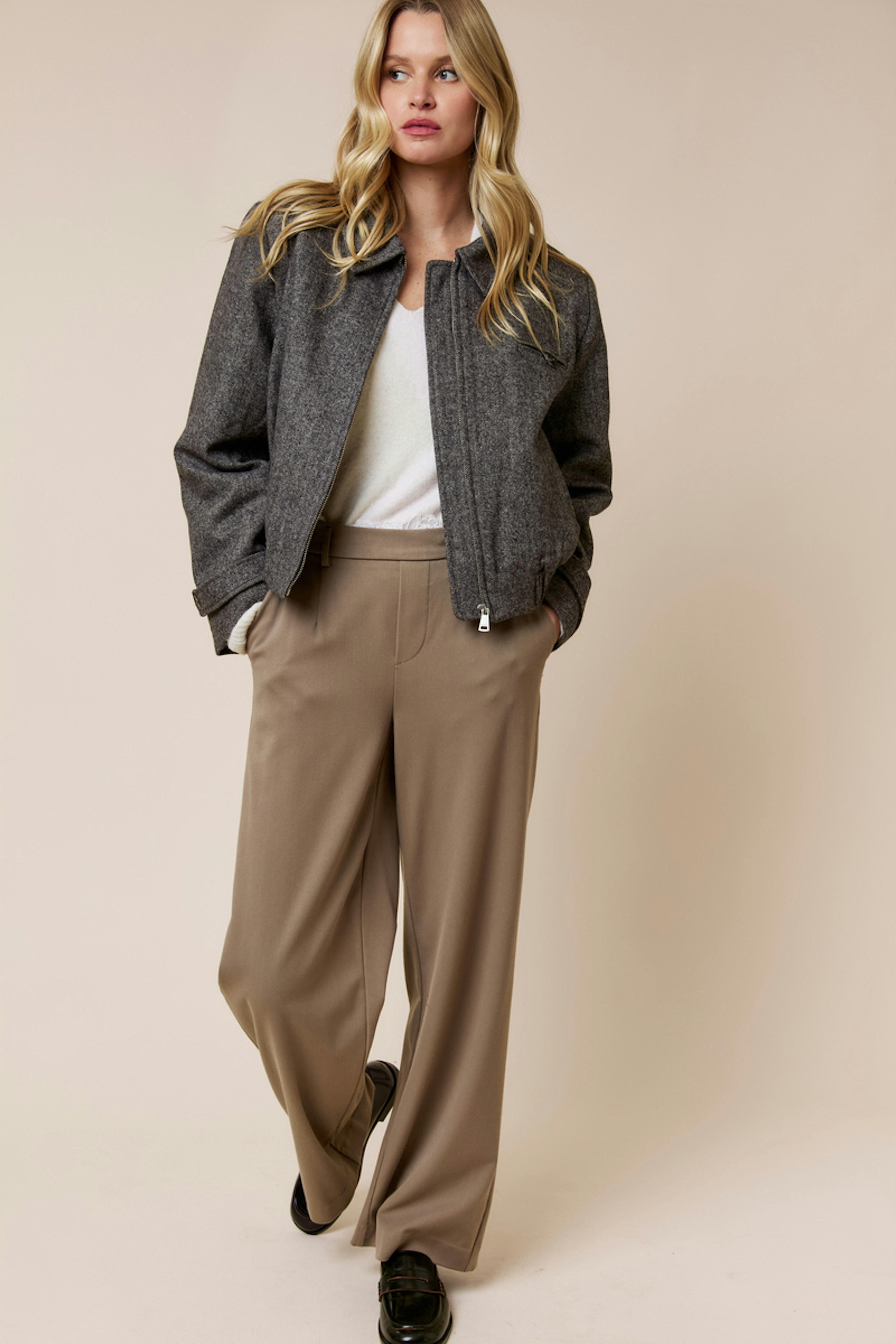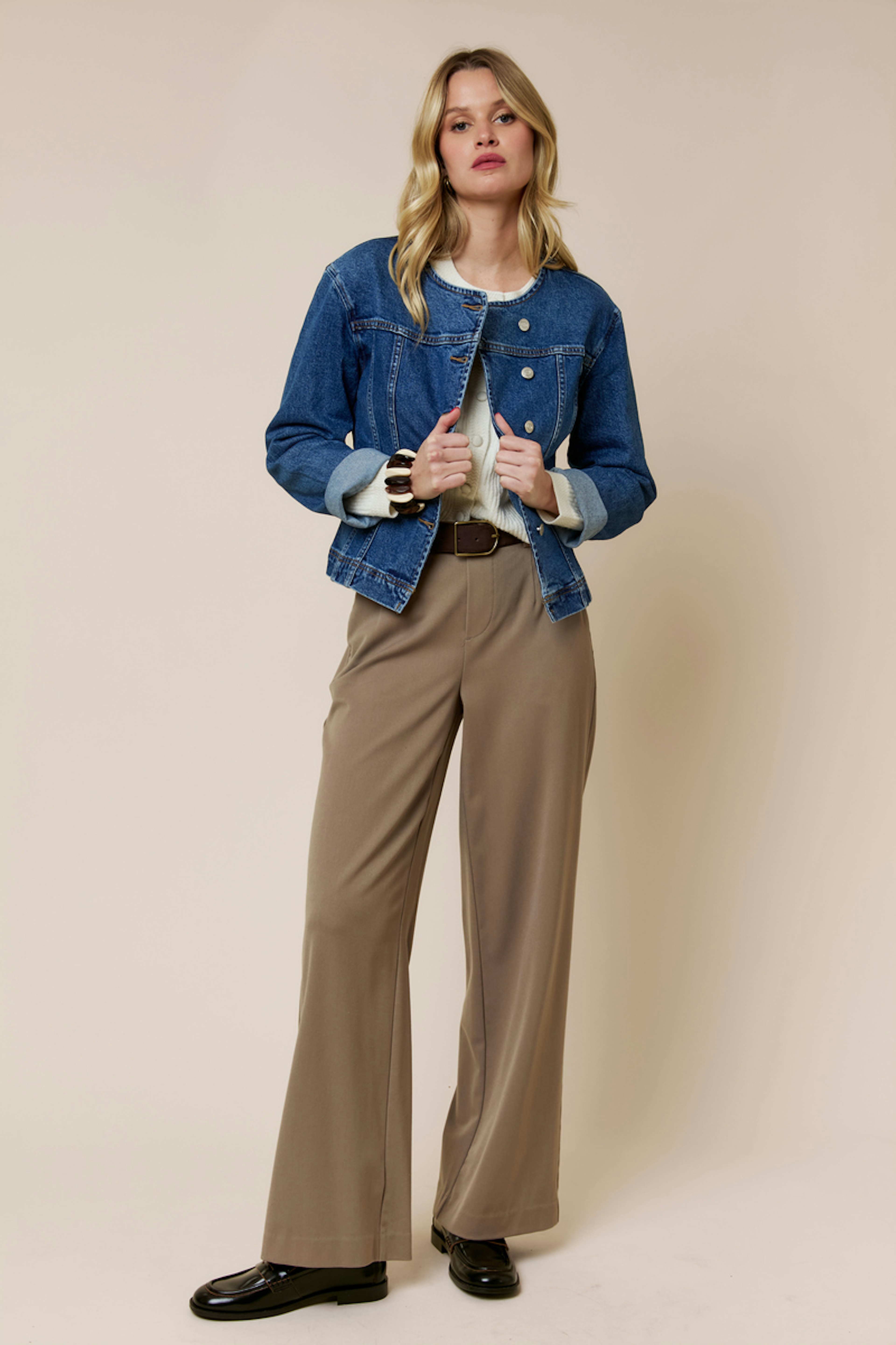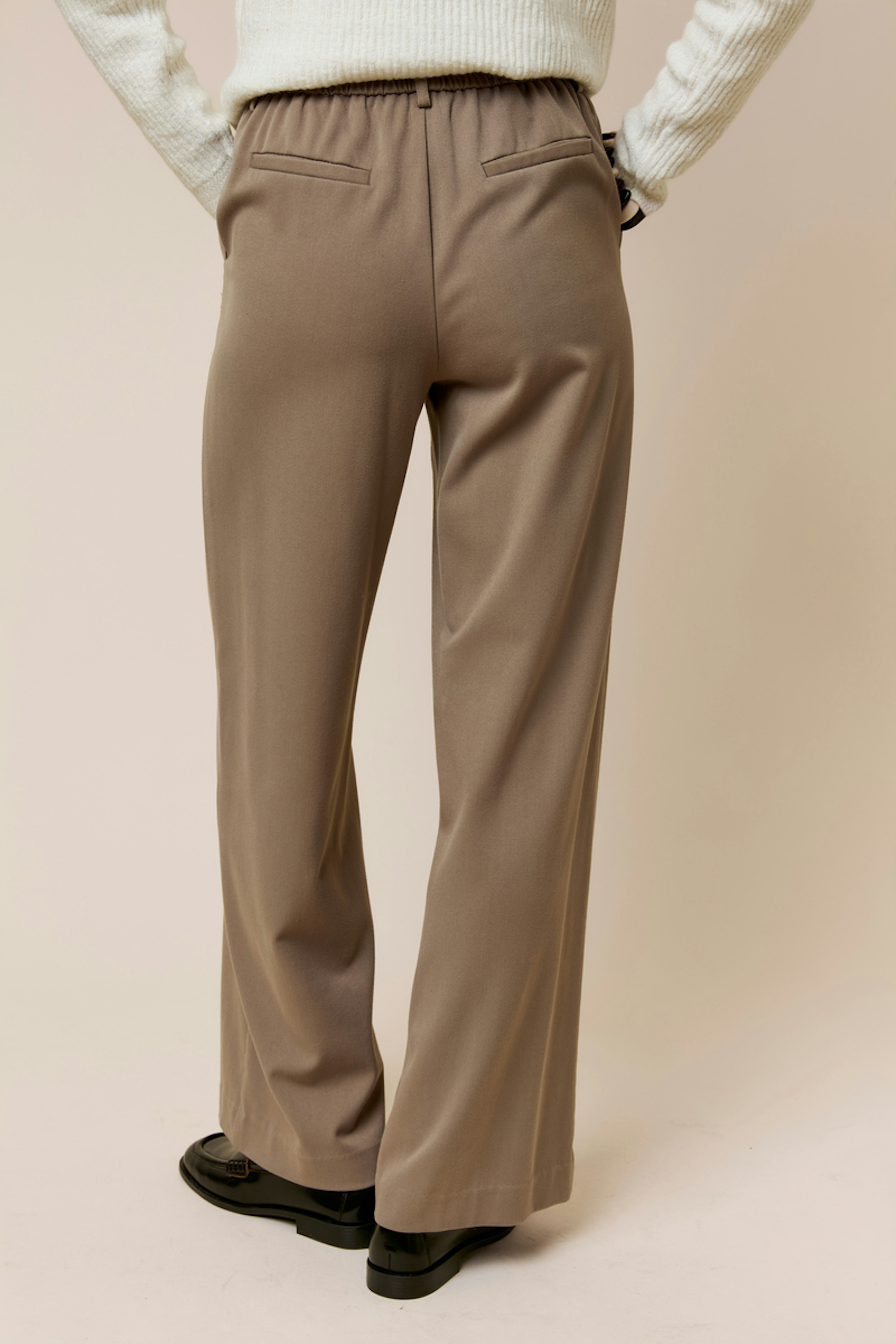 Optez pour un look chic en ajoutant un blazer à ce pantalon large, idéal pour les journées de travail ou les sorties en ville, peu importe la saison. • Pantalon à jambe large • Taille moyenne • Taille élastiquée • Poches latérales • Sans doublure