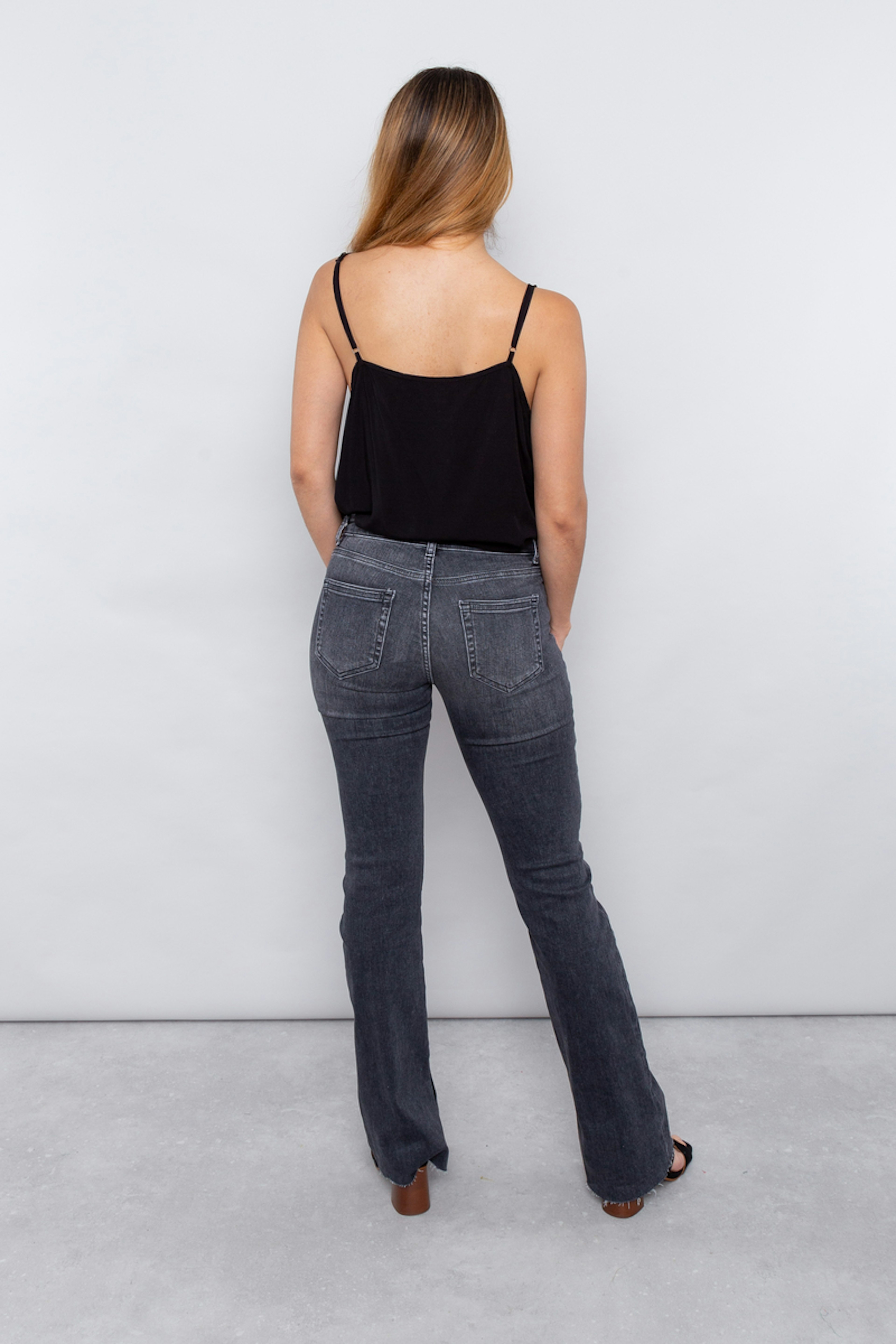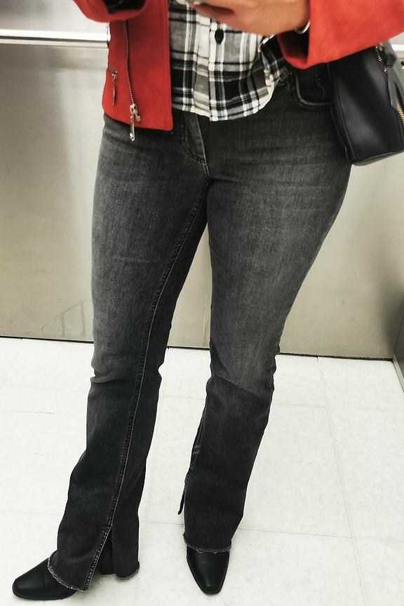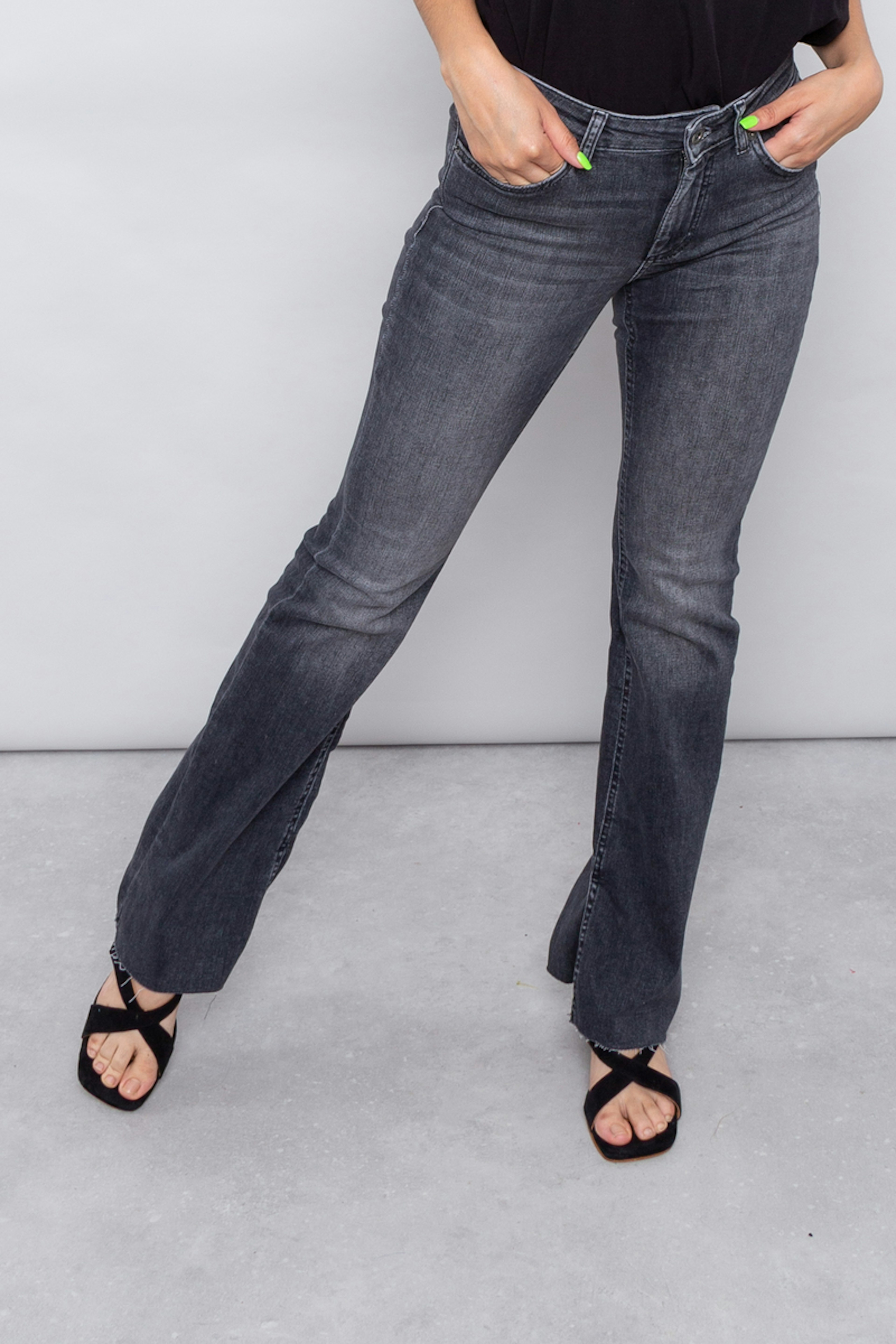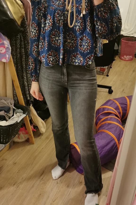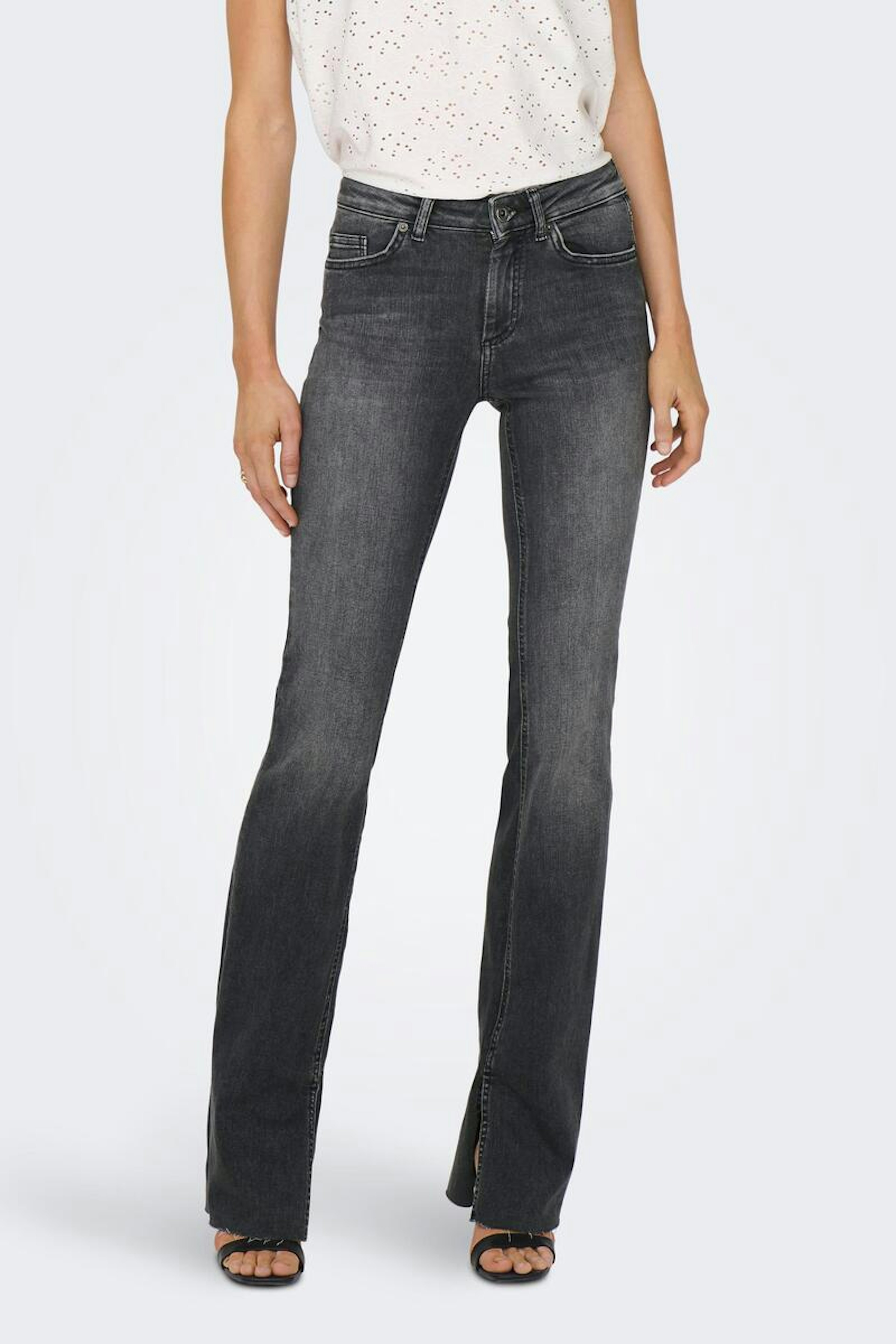 โข 5 poches en denim โข Coupe flare โข Denim stretch grรขce ร ses fibres d'elasthane โข Coloris noir dรฉlavรฉ