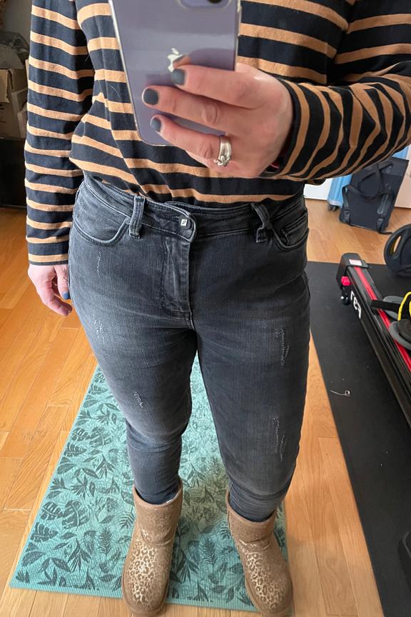 โข Jean slim gris dรฉlavรฉ โข Taille mi-haute โข Dรฉtails effet usรฉ sur le jean โข Longueur 32 โข Braguette zippรฉe โข 5 poches