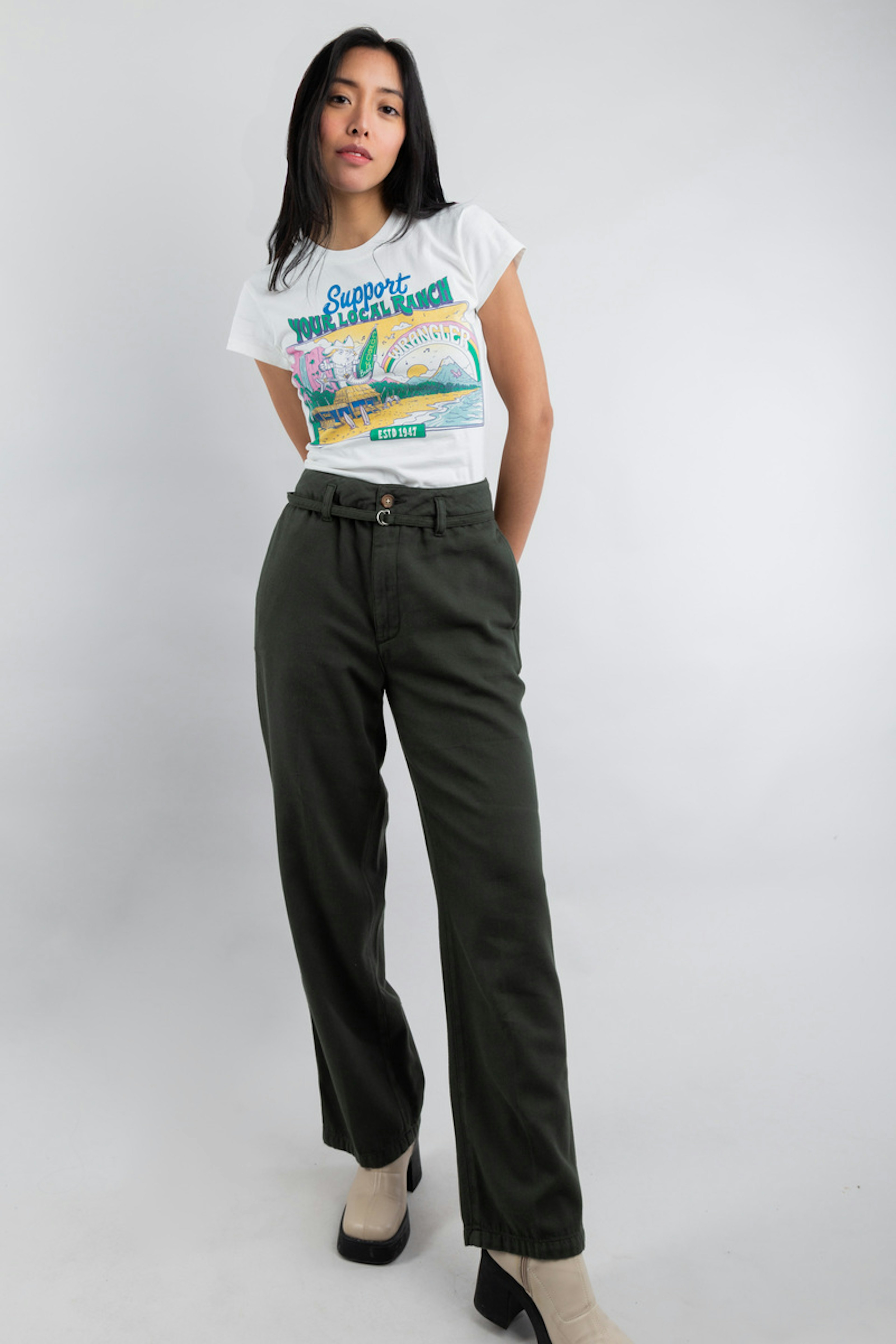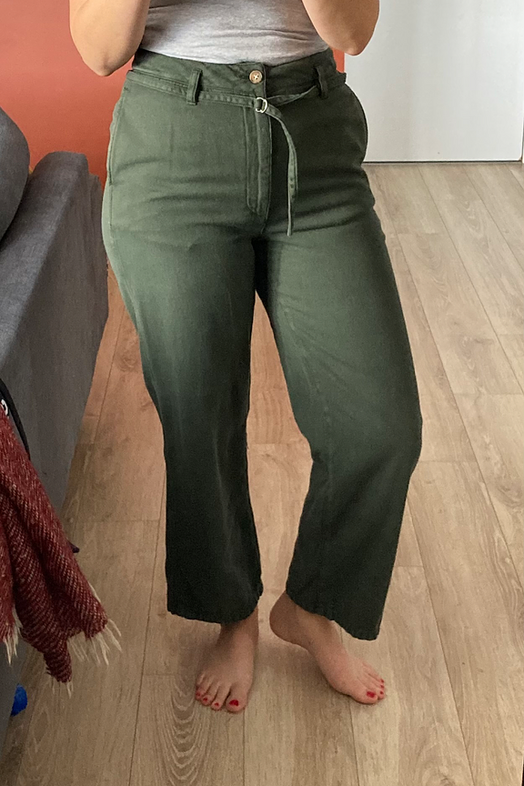 โข Notre pantalon droit Pilar, est idรฉal pour une journรฉe au travail ou pour une soirรฉe entre amis โข Sa taille haute et sa coupe large รฉlanceront votre silhouette โข Couleur kaki โข Ceinturรฉe ร la taille par une ceinture tissu et petite boucle argentรฉe โข En coton et lyocell, il est parfait pour les intersaisons