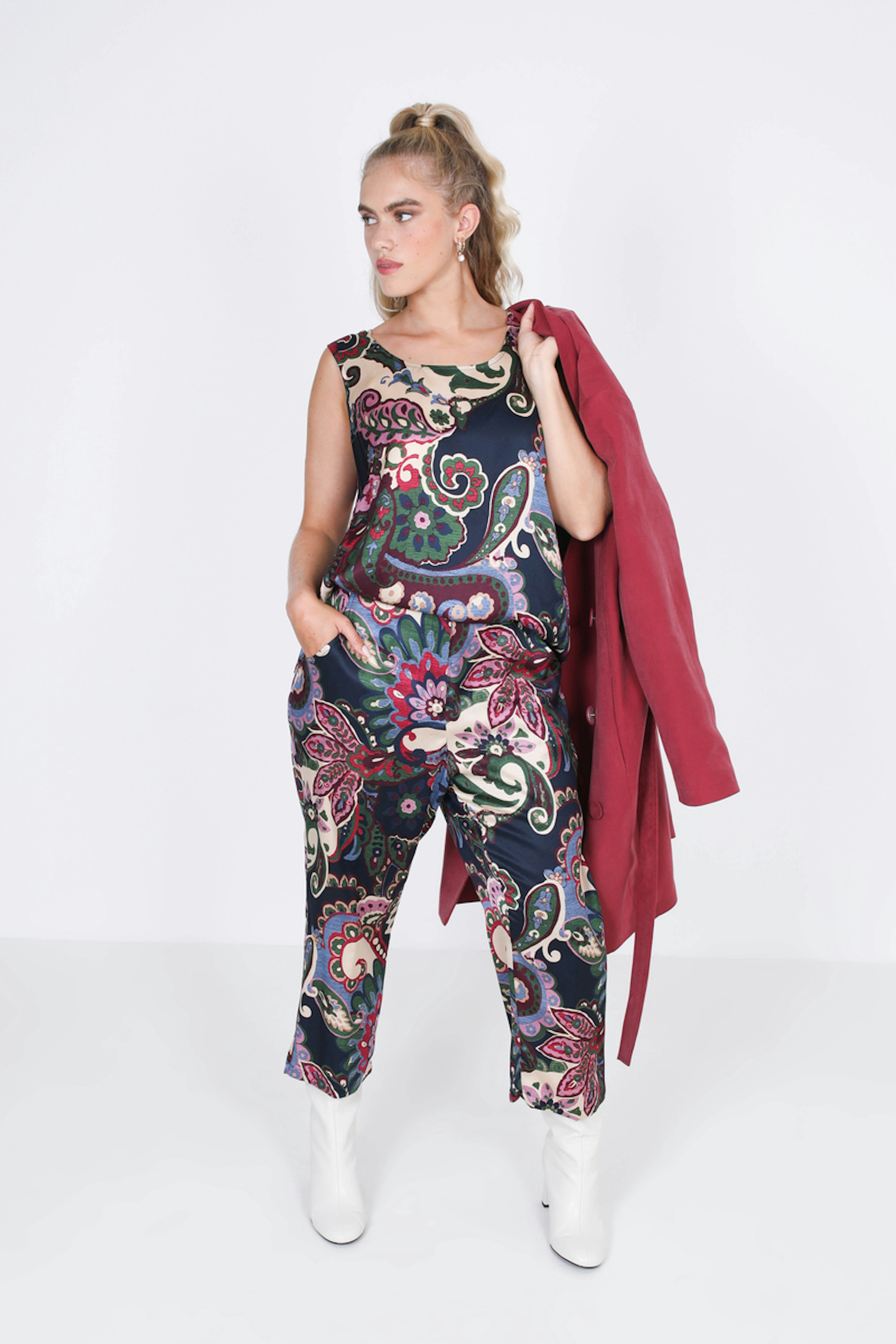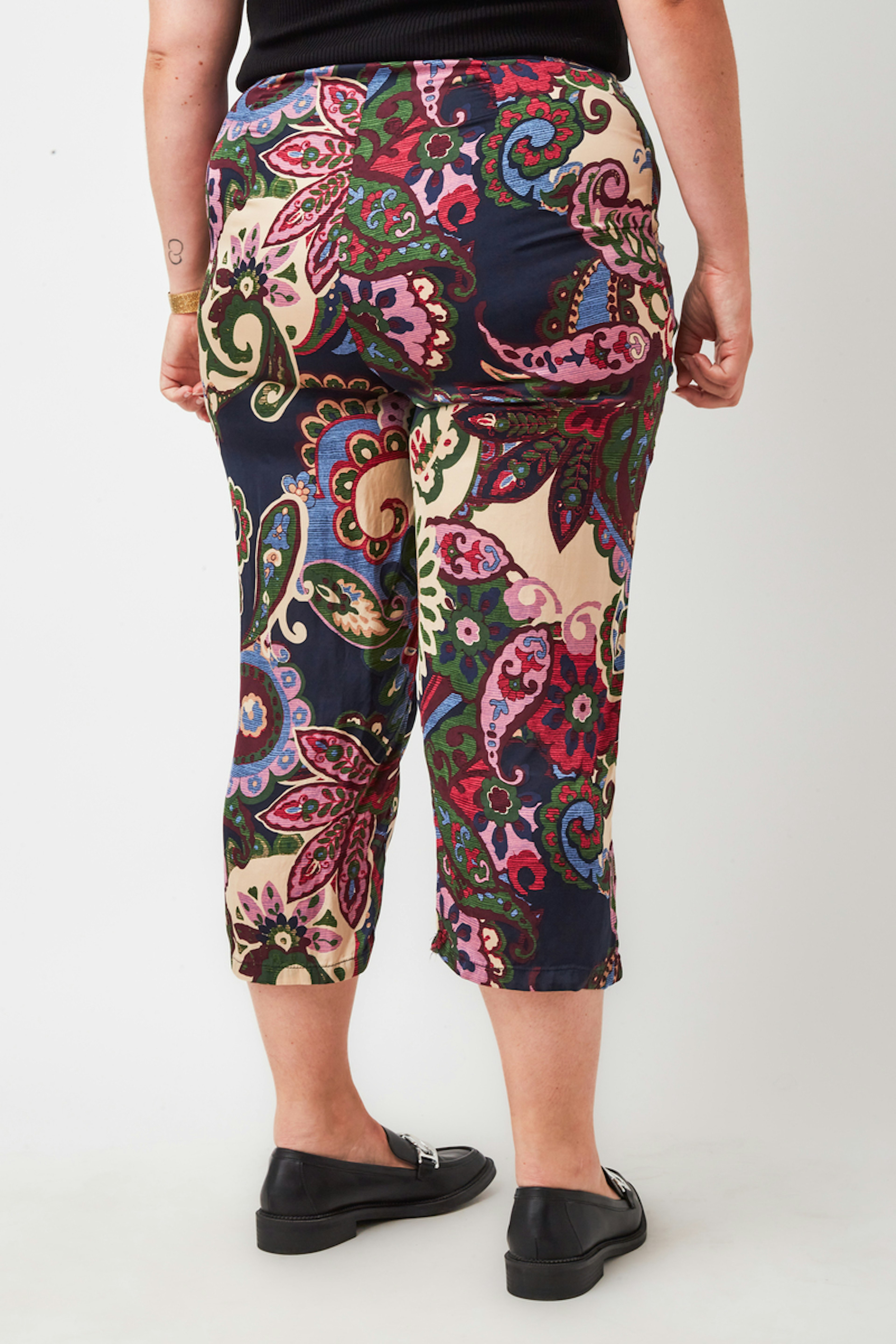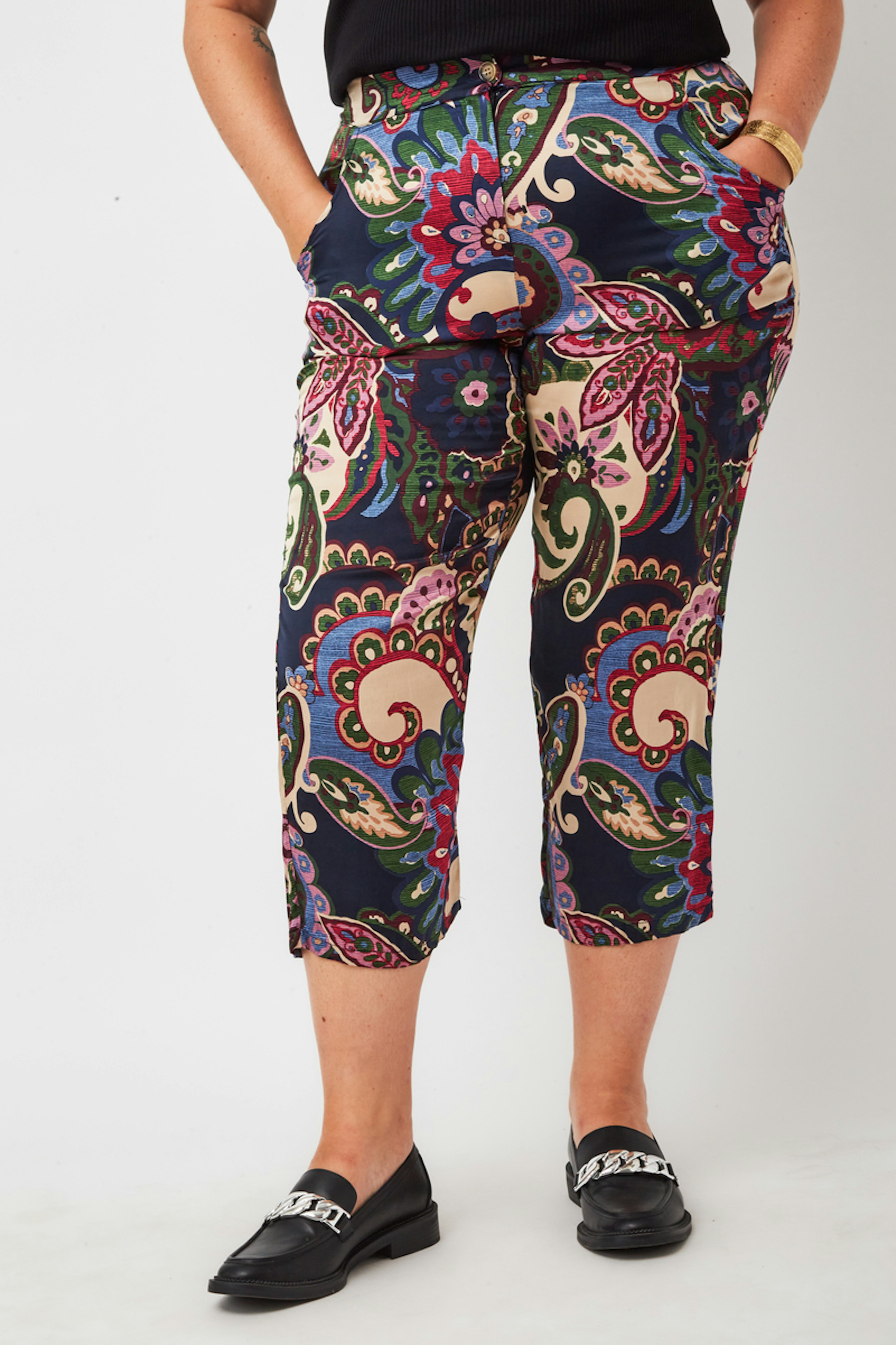 โข Pantacourt en imprimรฉ satinรฉ โข Poche ร l'italienne โข Ceinture avec zip et bouton โข รlastiquรฉ au dos โข Longueur : 85 cm en taille 2(42/44)