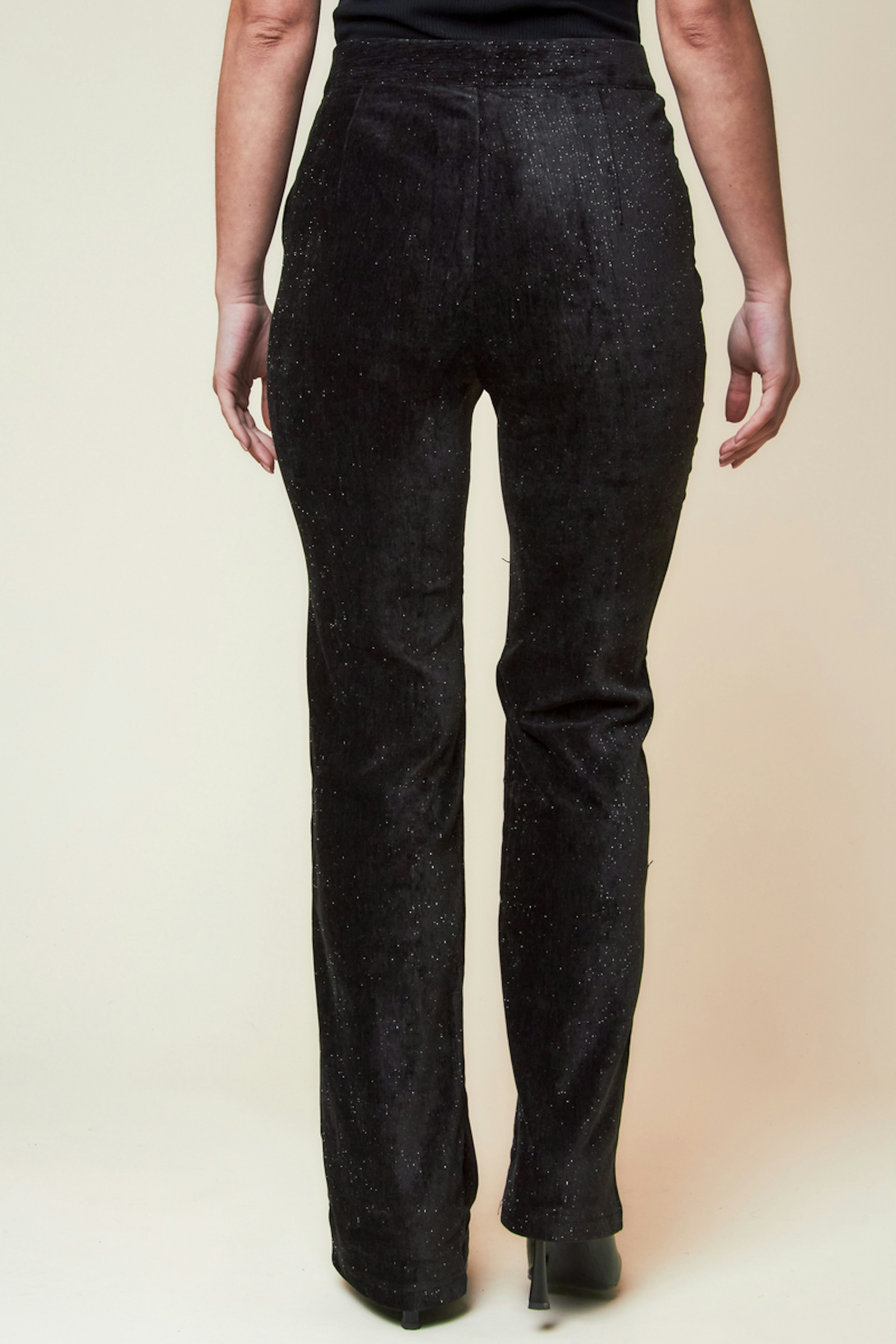 Associez ce pantalon élégant avec un chemisier en soie et des escarpins pour une touche de sophistication hivernale. • Pantalon scintillant • Coupe droite • Texture métallisée • Taille mi-haute • Fermeture éclair cachée