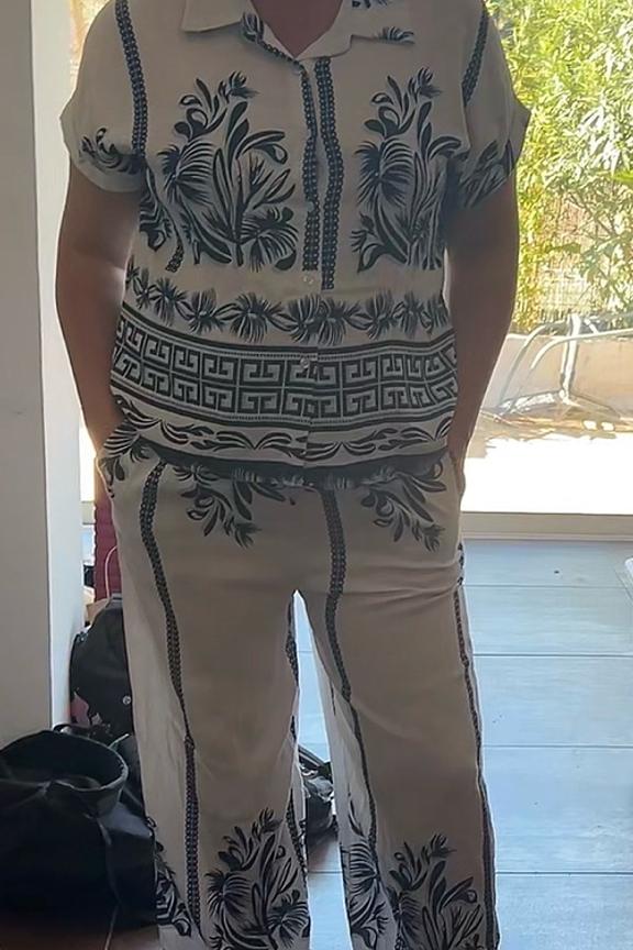 Associez ce pantalon à une blouse fluide et des sandales pour une allure estivale décontractée. • Pantalon ample • Taille élastiquée • Motif floral • Bordure contrastée • Matière légère