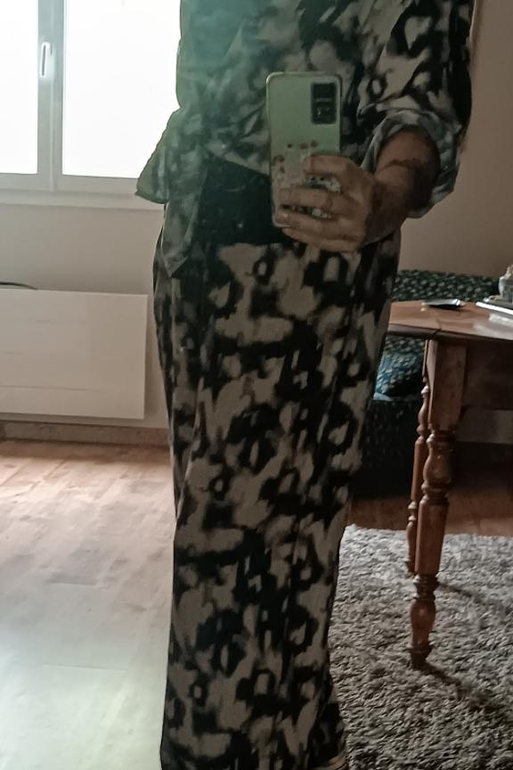 “Faire, il faudrait faire des photos de vos collections avec des vraies couleurs - sans que ça tire sur le rose ou pêche… C’est bien beige, noir et gris le pantalon est très léger,. Je fais 1,68 m et j’étais obligée de le tourner à la ceinture. Sinon, je marchais dessus. Je trouve que ça taille grand.”