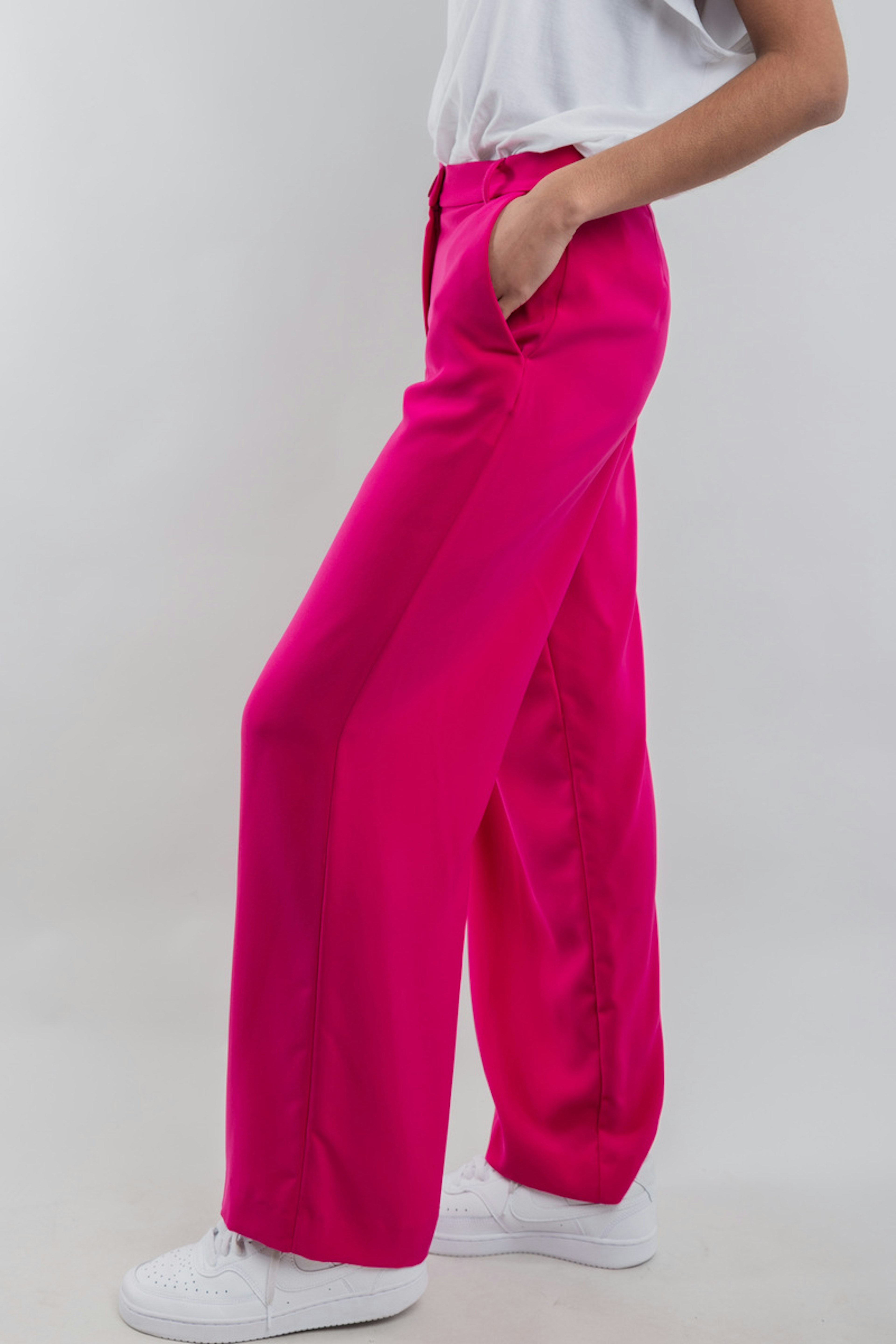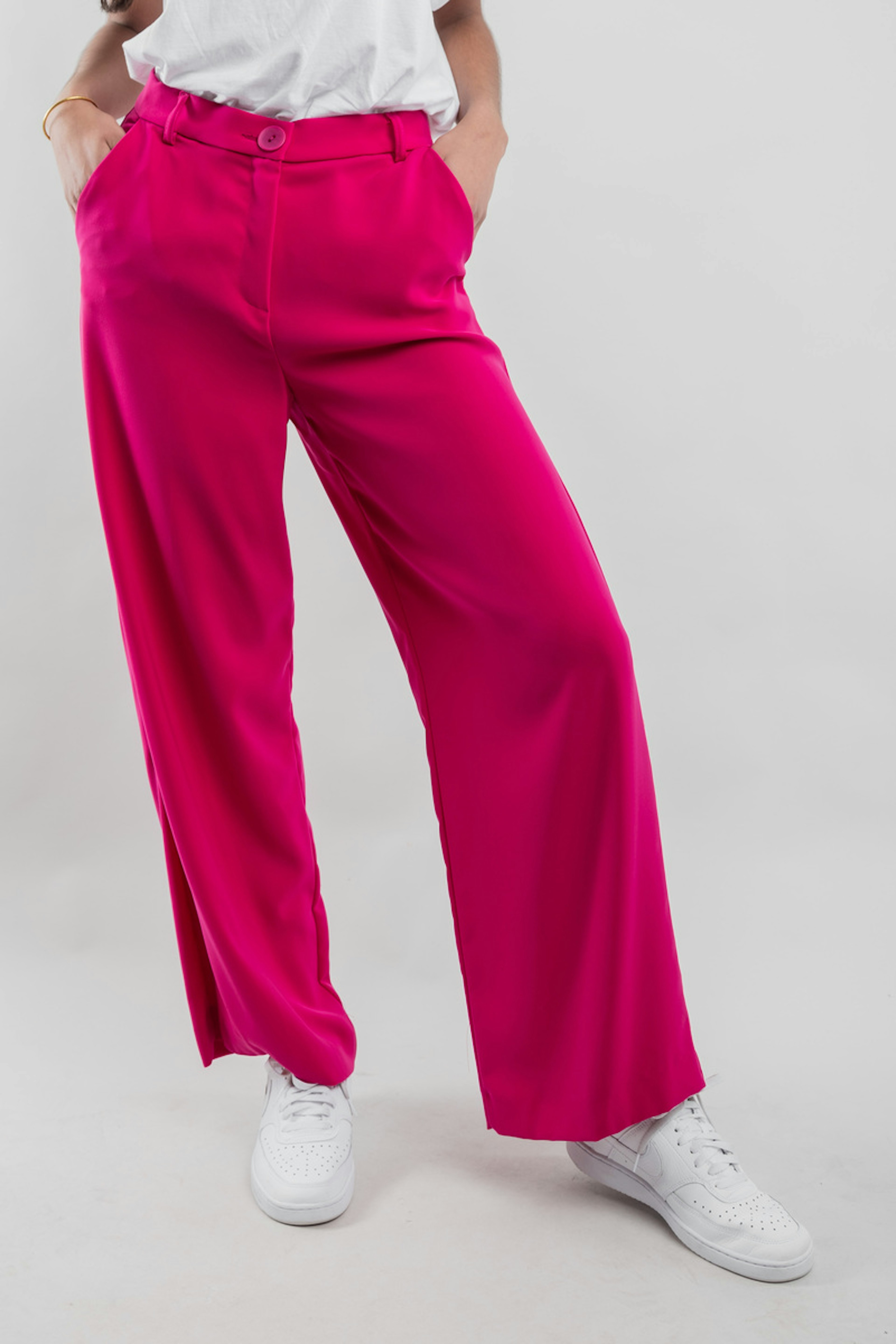 โ€ข Pantalon droit รฉlรฉgant fushia โ€ข Jambes droites et larges โ€ข Tissu fluide โ€ข Poches latรฉrales ouvertes โ€ข Fermeture boutonnรฉe avec zip โ€ข Fabriquรฉ en France