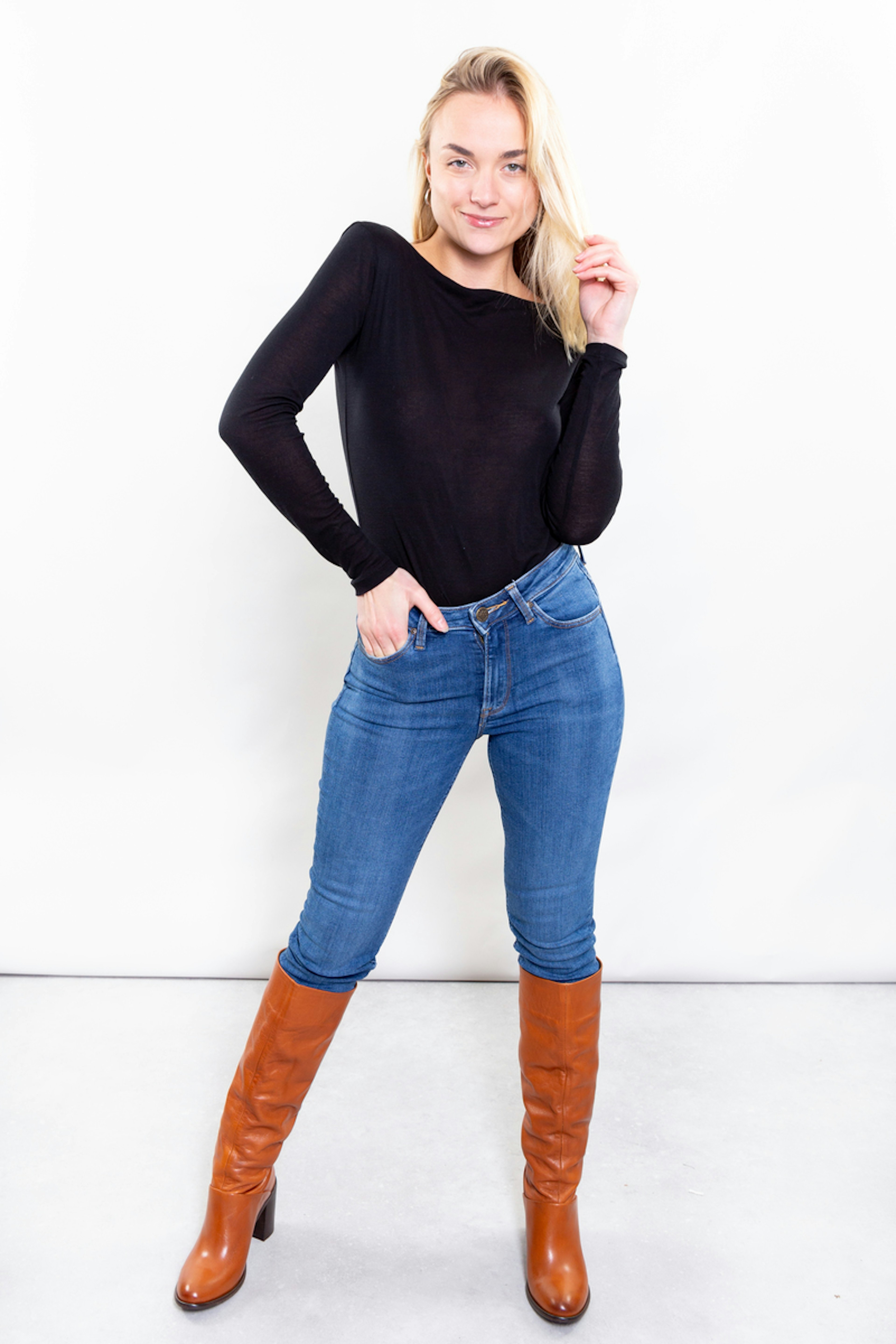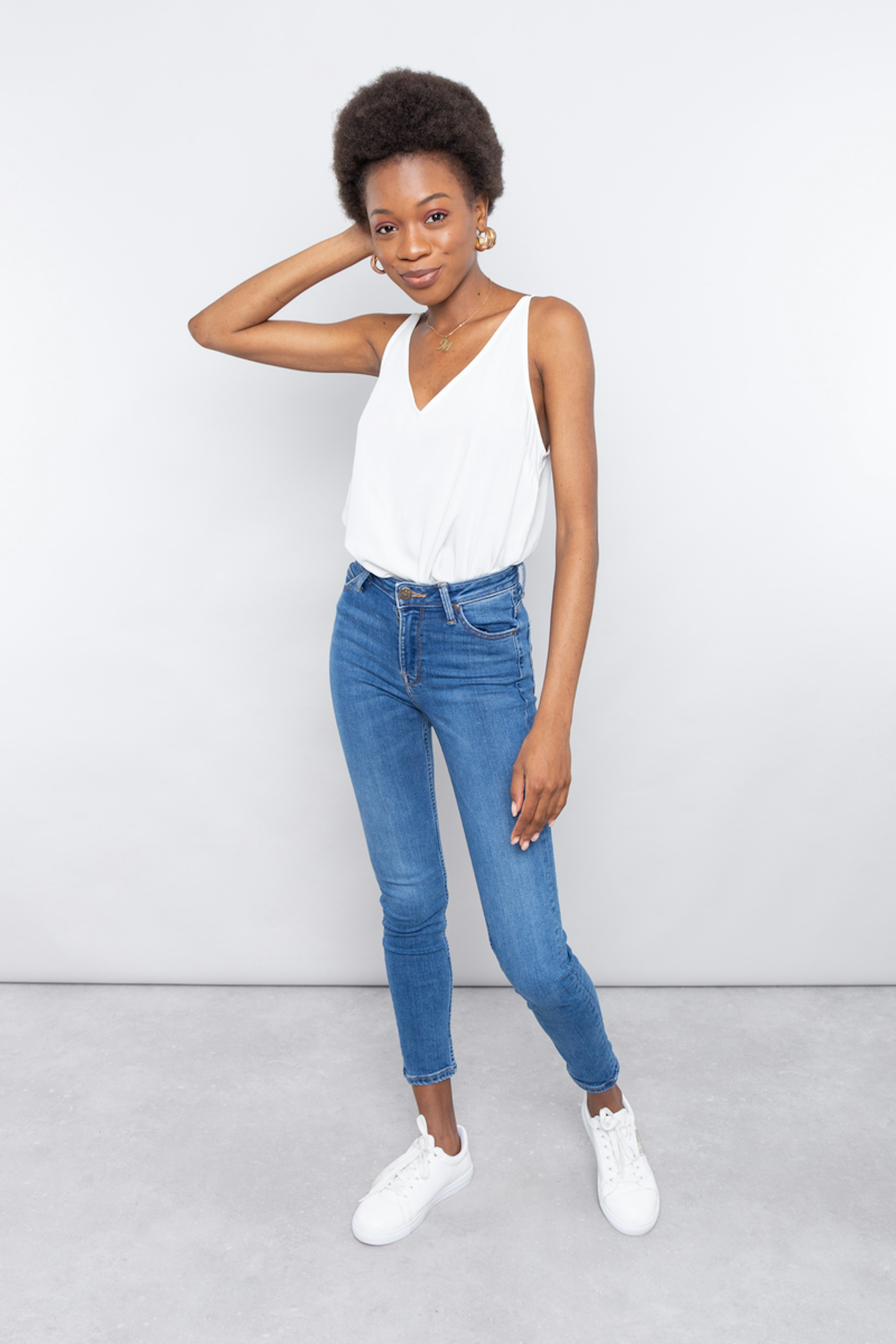 โข Jean skinny bleu โข Taille haute โข Longueur 32 โข Braguette zippรฉe โข 5 poches โข Longueur cheville โข Contient du coton certifiรฉ BCI