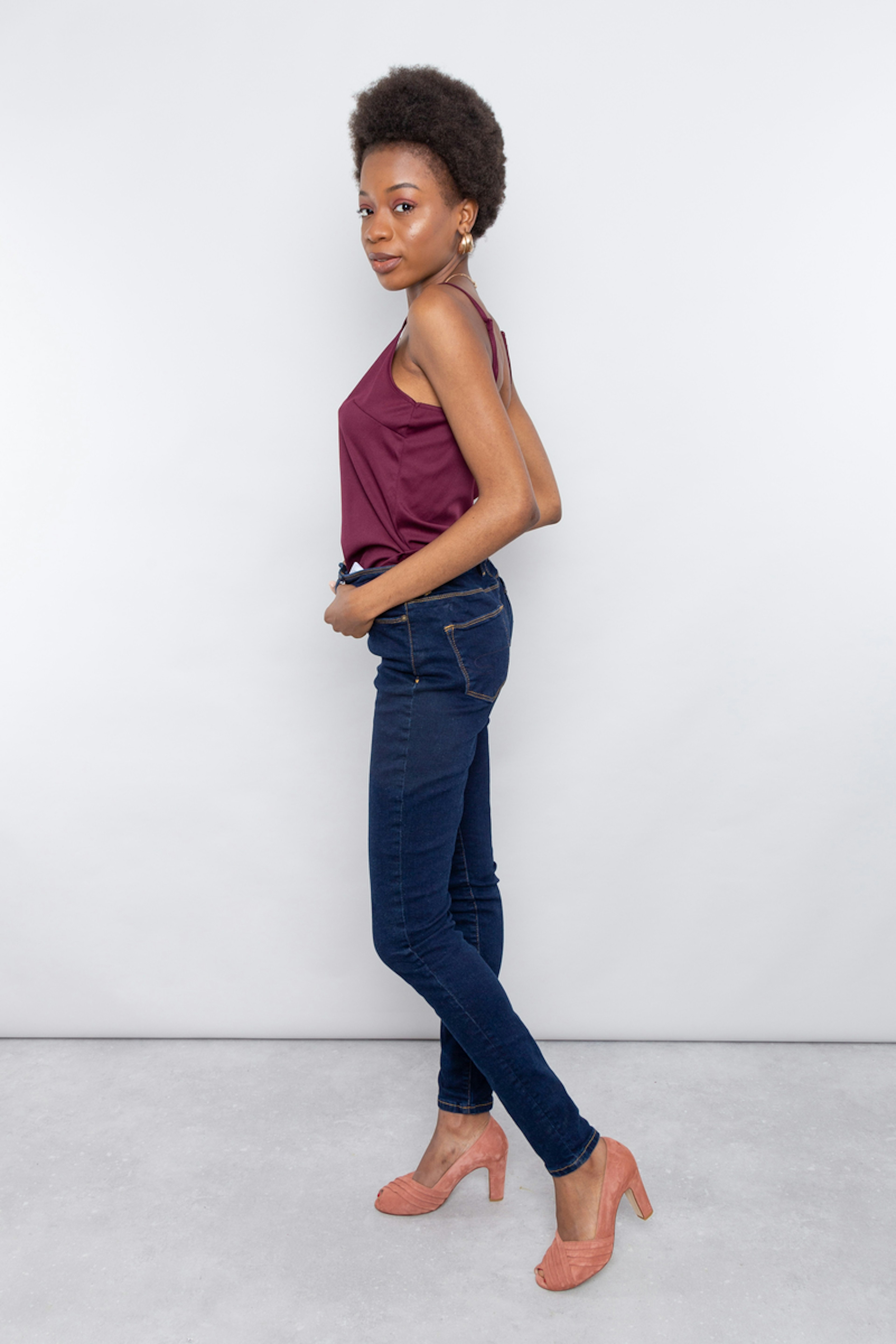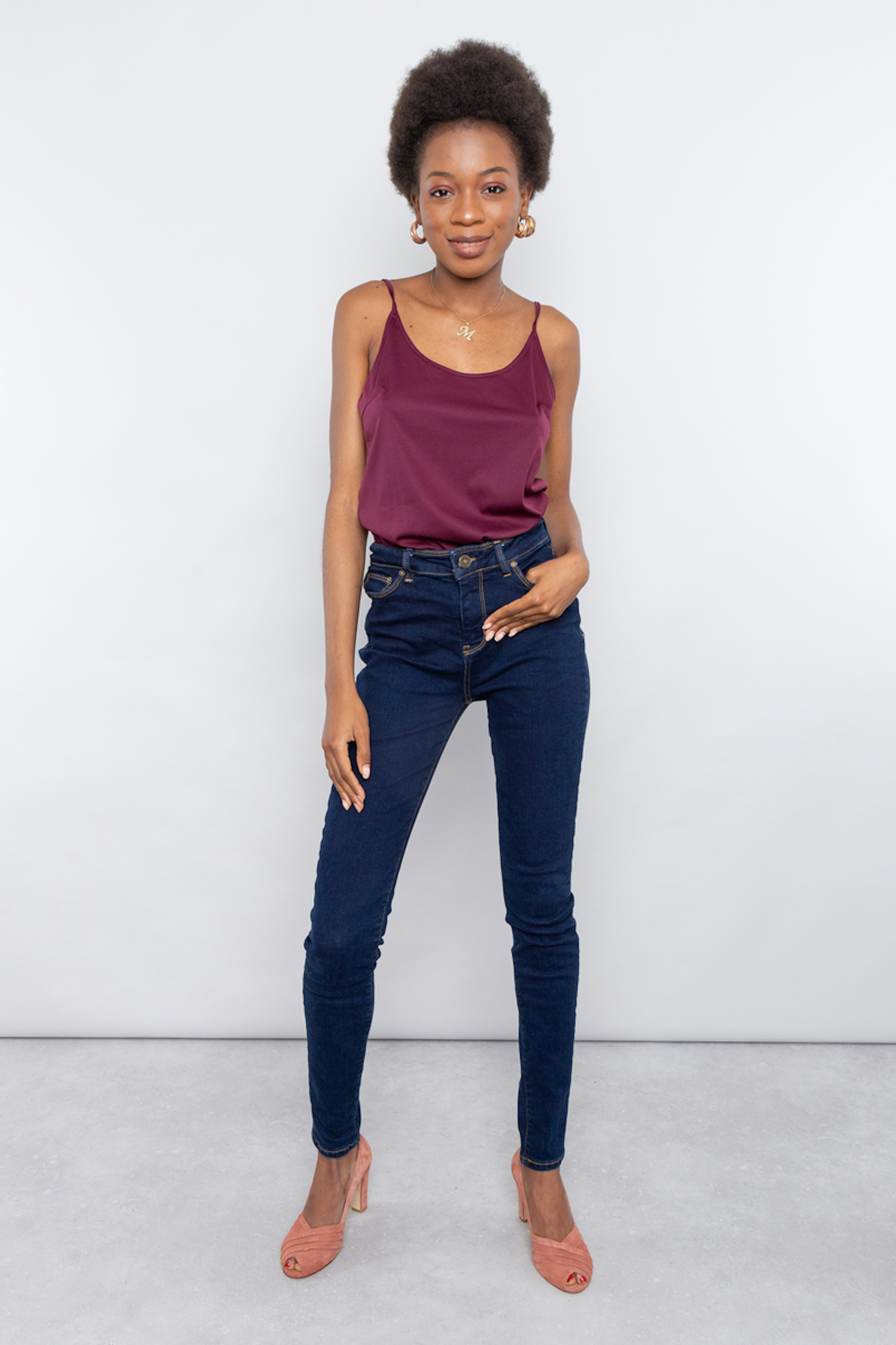 โข Jean slim fit โข Jambes ajustรฉes โข Taille medium haute โข Longueur 32