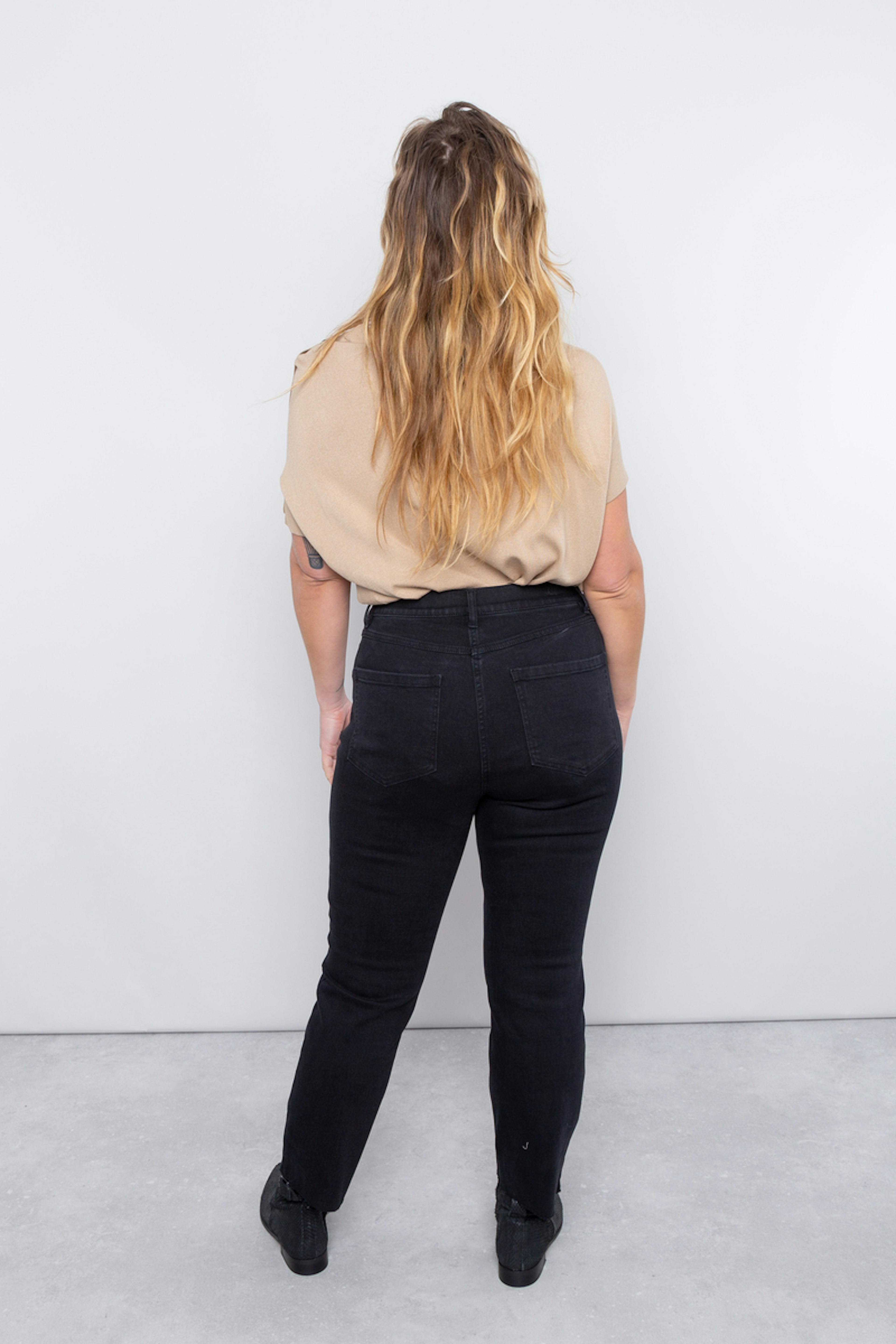 โข Jean droit noir โข Straight Fit โข 5 poches โข Bas frangรฉ