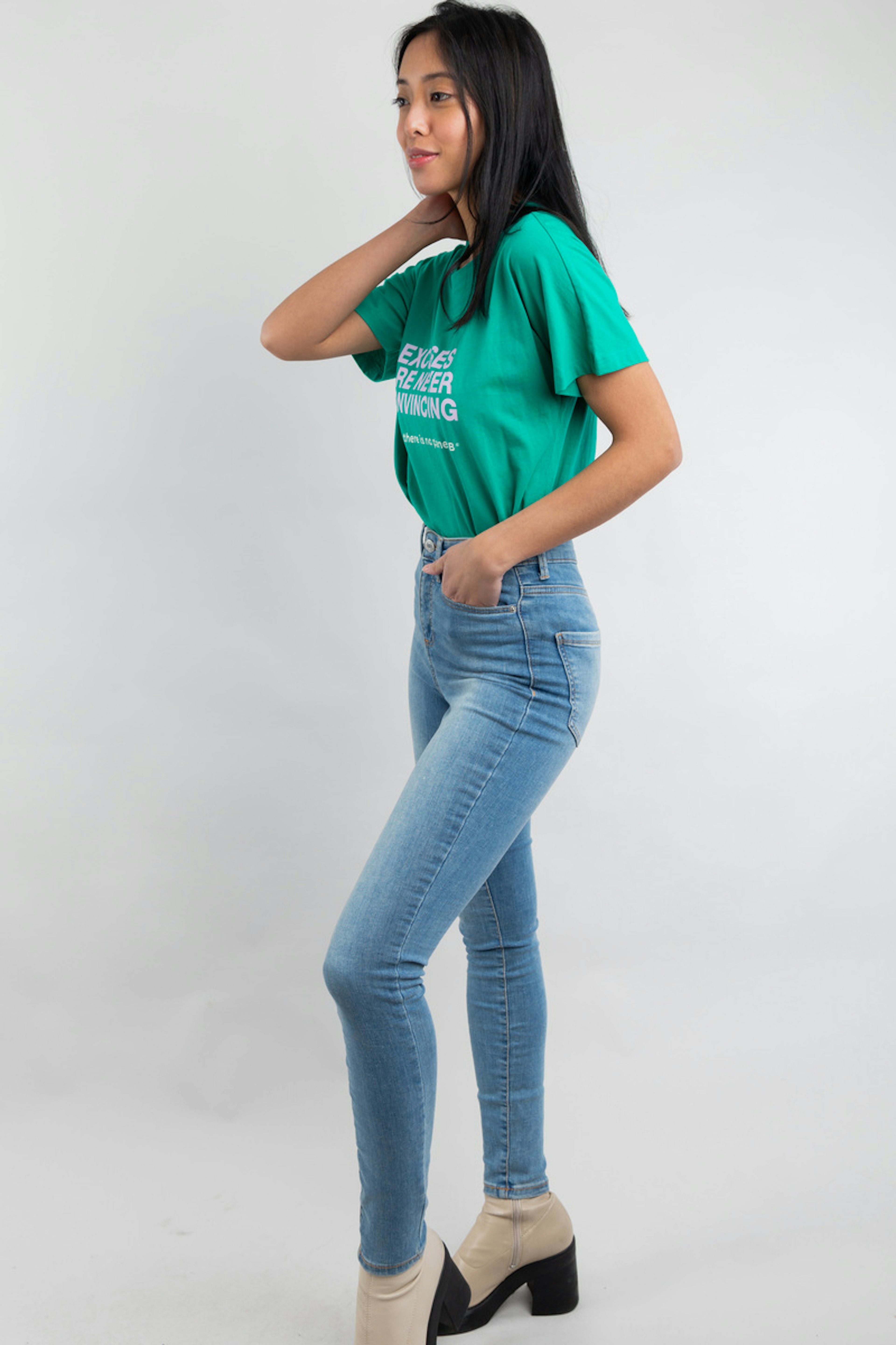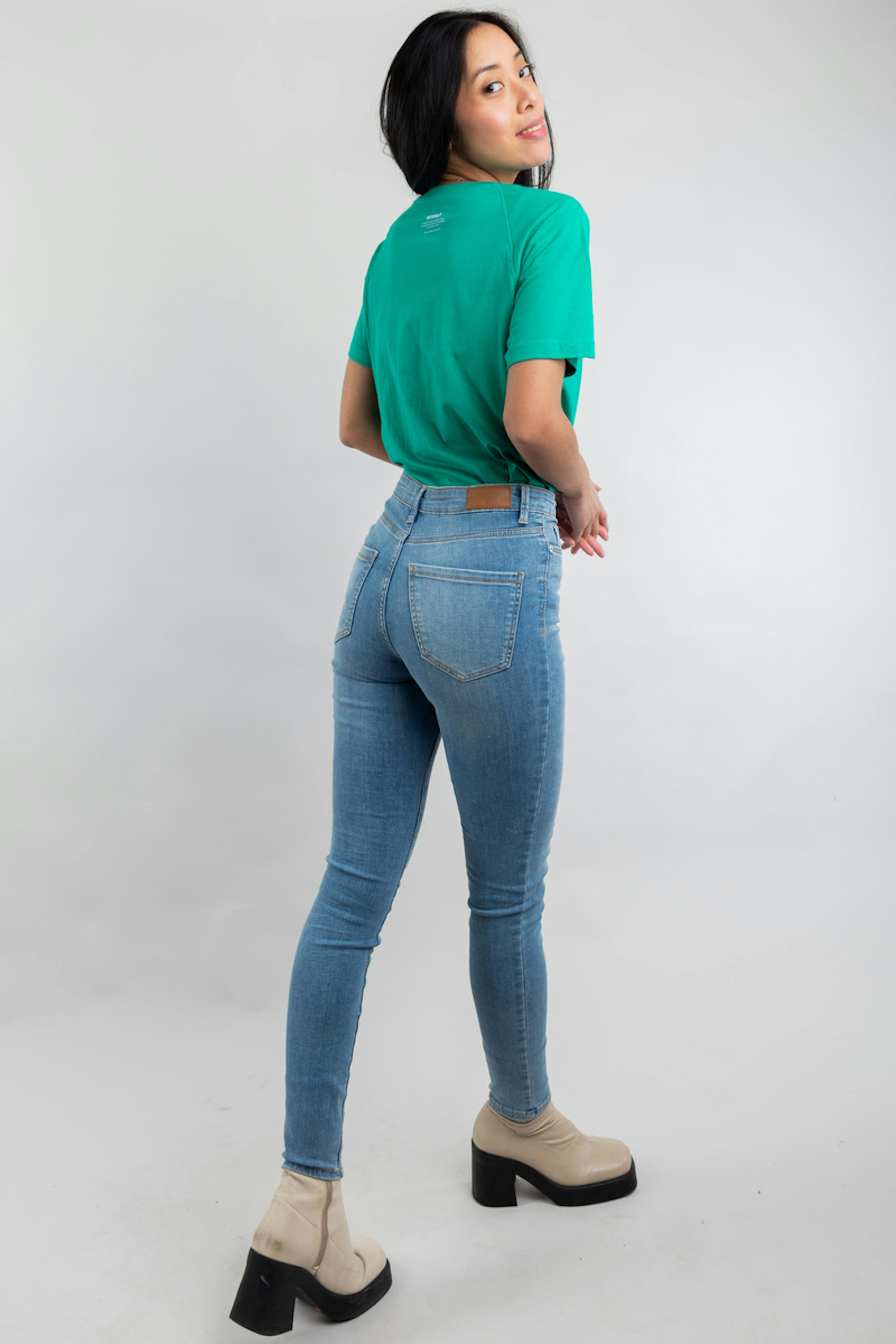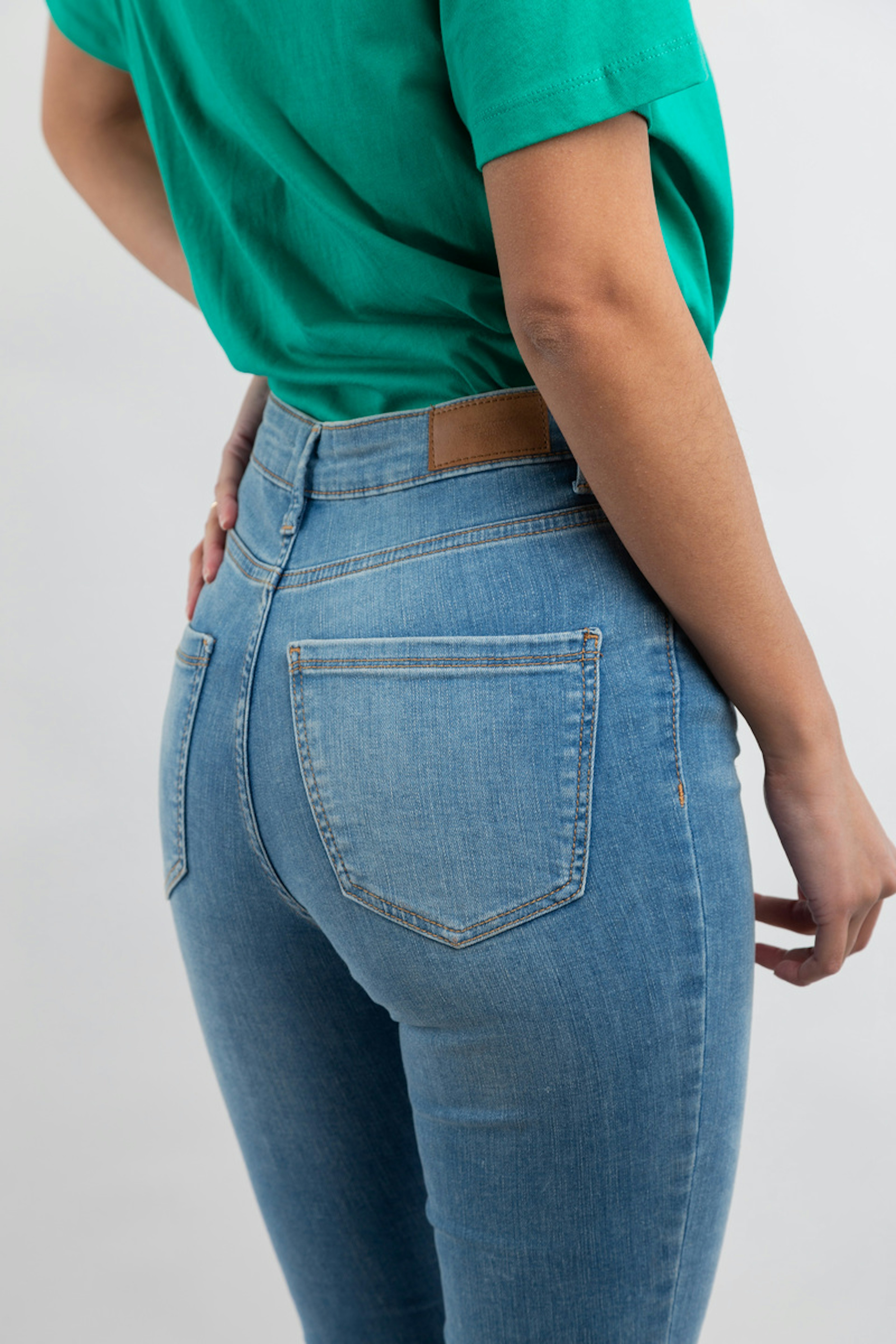 โข Pantalon en denim bleu clair โข Coupe droite et skinny โข Taille haute โข A associer avec un t-shirt pour un style dรฉcontractรฉ