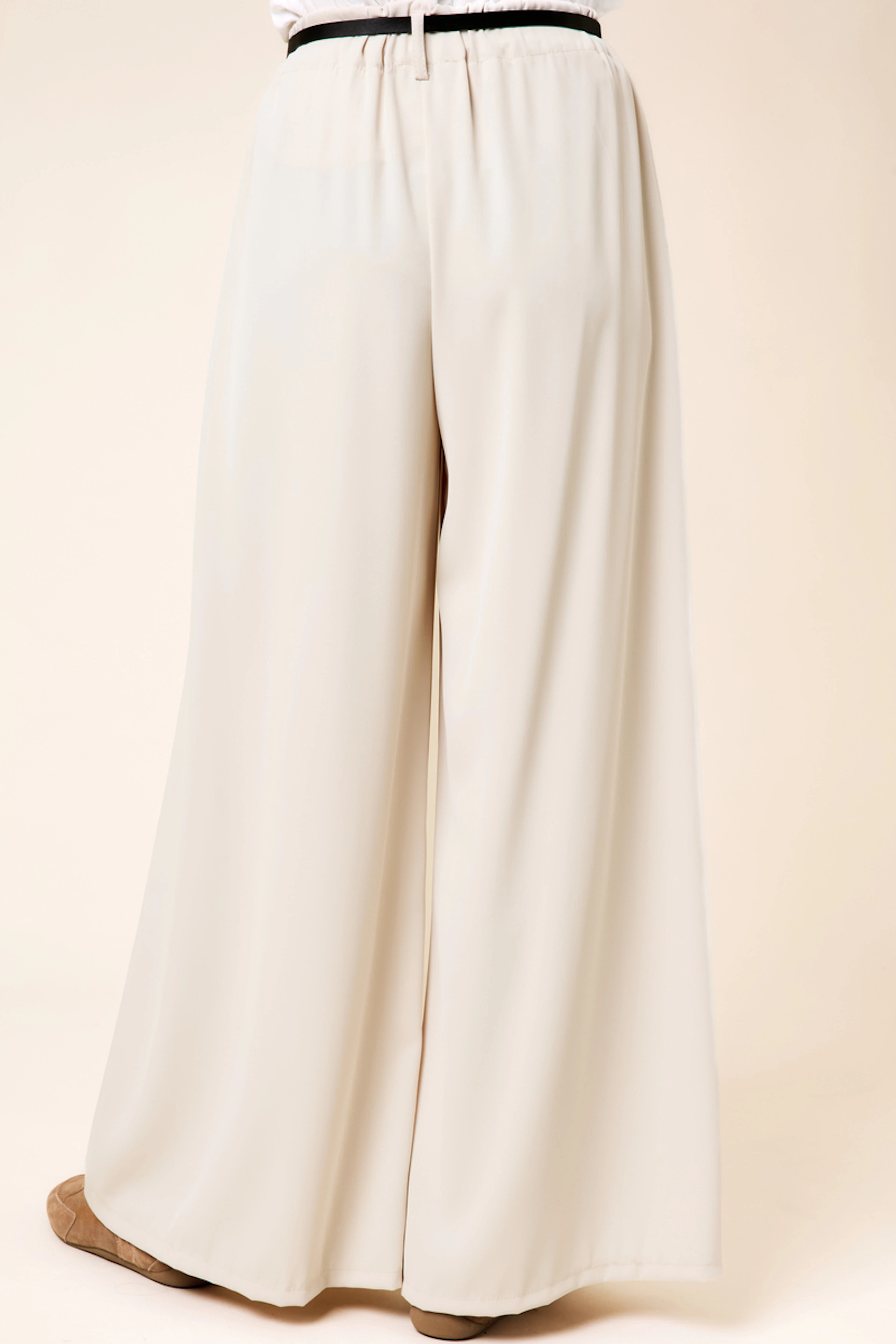 Associez ce pantalon large à un haut ajusté pour un contraste élégant, et ajoutez des bijoux dorés pour une touche chic. Parfait en toute saison. • Pantalon ample • Taille haute • Plis à l'avant • Longueur extra • Teinte beige sophistiquée