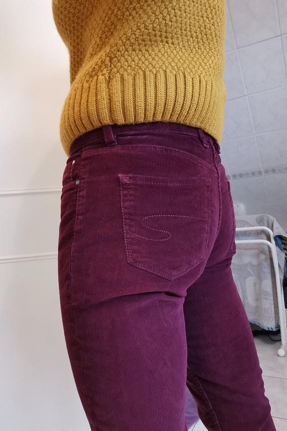โข Pantalon slim en velours bordeaux โข Taille haute โข Bouton de jean et braguette zippรฉe โข Conรงu avec de l'รฉlasthanne pour plus de confort