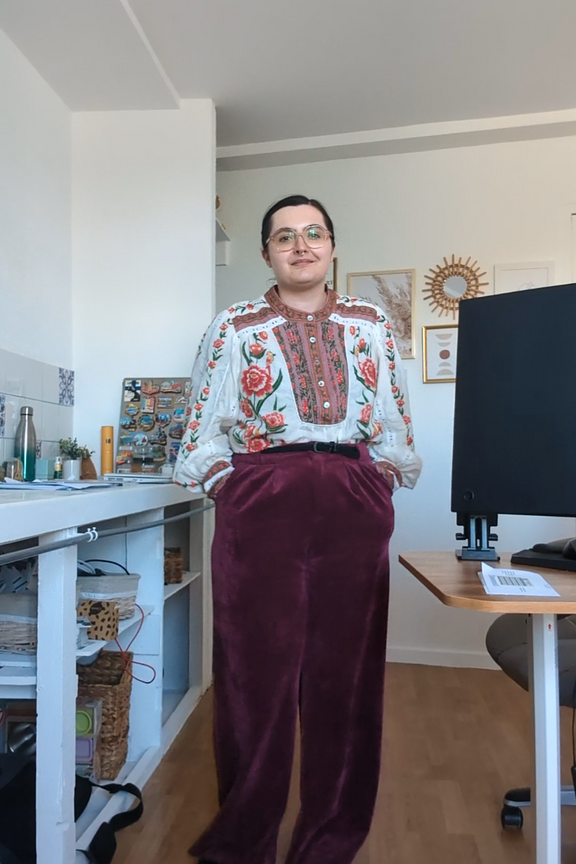 “La matière est très agréable à porter. Le pantalon est très joli et bien taillé, ne sert pas trop à la taille”