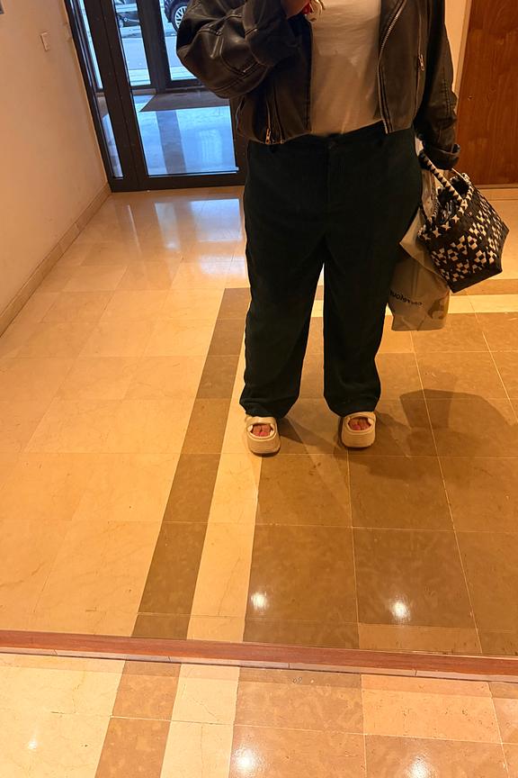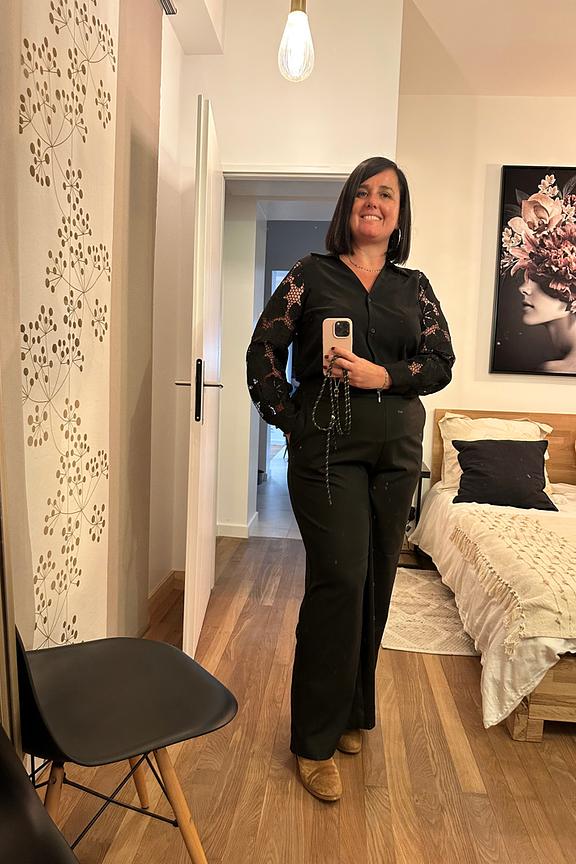 “Pantalon un peu grand pour un 42, est ok à la taille mais la coupe large au niveau des hanches ne met pas trop en valeur. J'ai également regretté qu'il n'ait pas de poches.”
