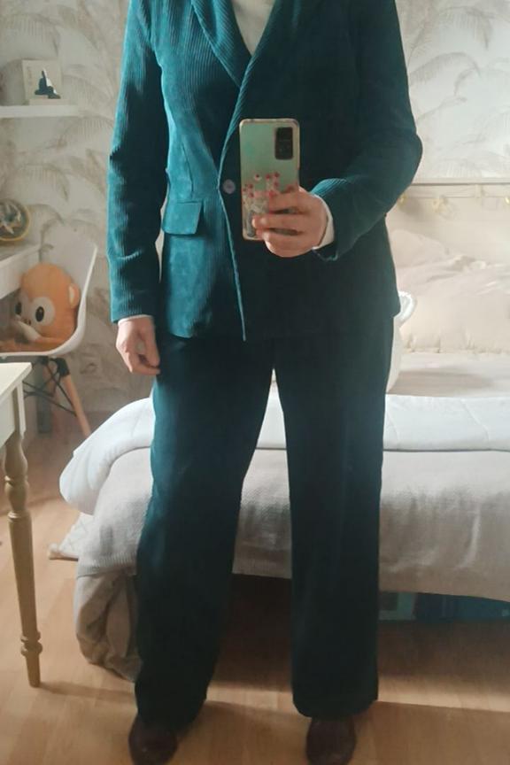 “tissu très agreable, souple avec la veste assortie en tailleur c'est tres élegant (t shirt le closet aussi sur la photo)”
