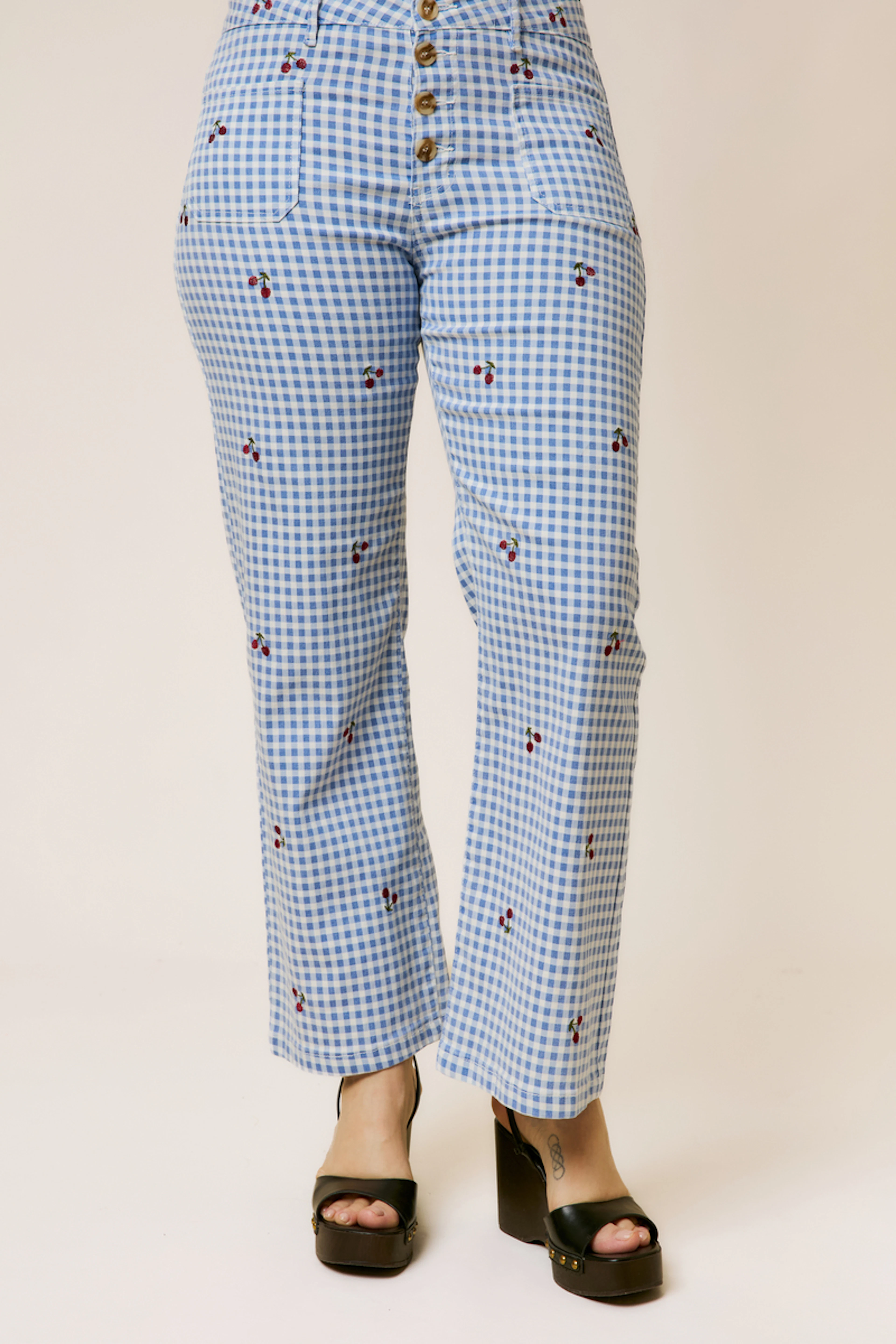 Pantalon Vichy Brodé Cerise