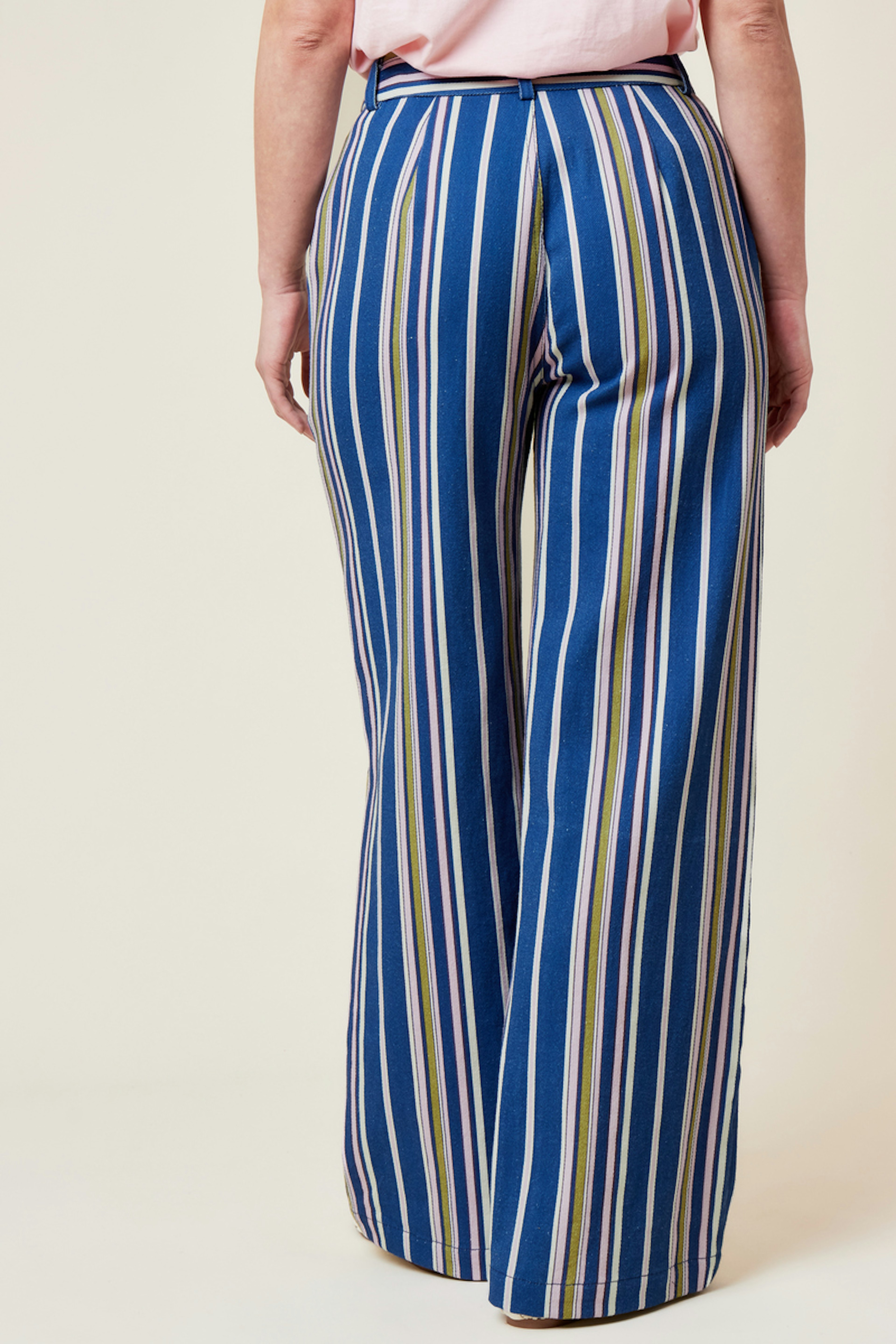 Associez-le à un t-shirt blanc et des sandales pour une allure estivale chic! • Pantalon large en coton • Taille haute • Rayures verticales • Coupe ample • Fermeture à bouton élégant