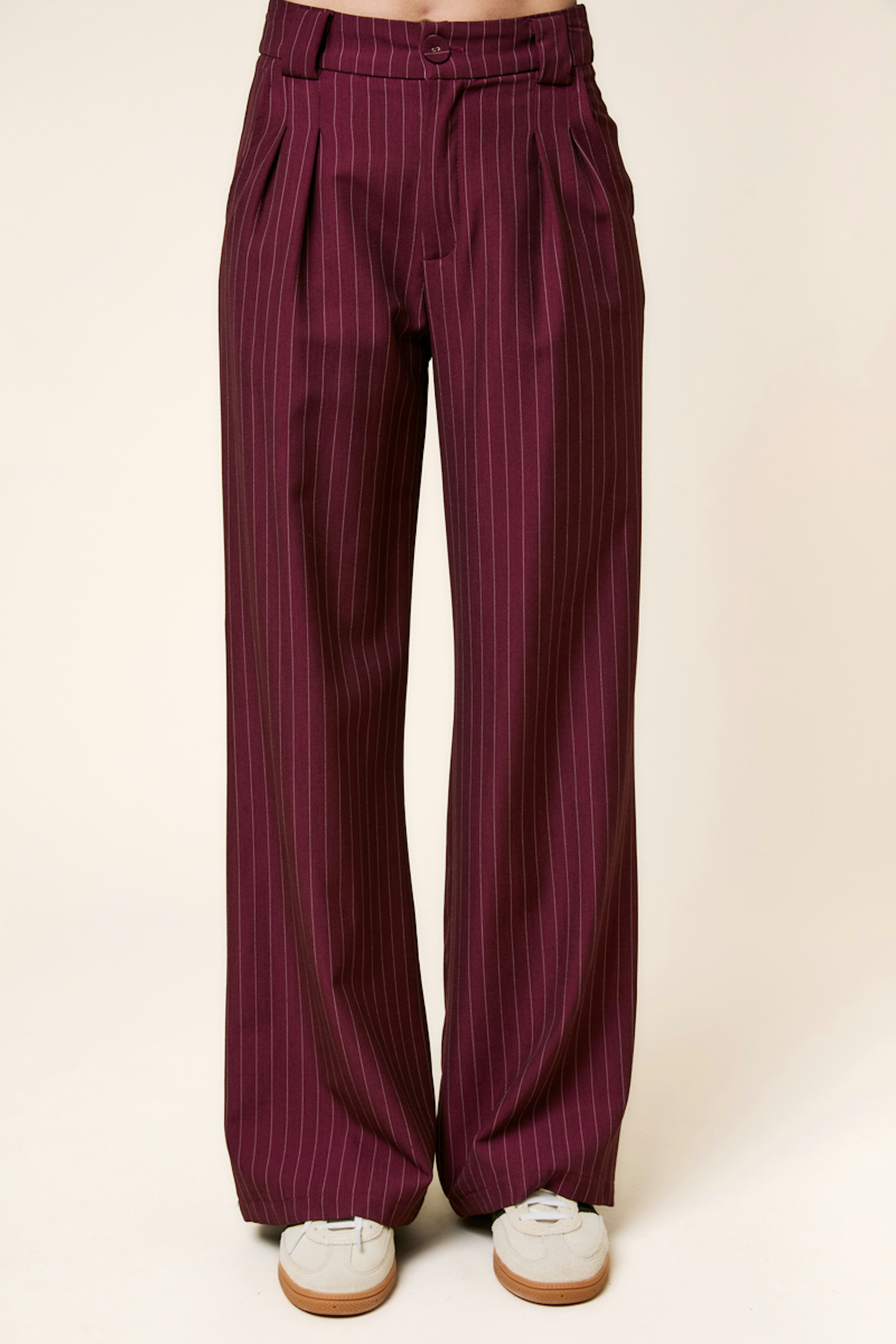 Portez-le avec un pull léger ou un chemisier en soie pour sublimer la texture luxueuse de ce pantalon en toutes saisons. • Pantalon à coupe large • Taille haute pour un look élancé • Jambes longues et fluides • Imprimé à rayures • Fermeture à agrafes et zip