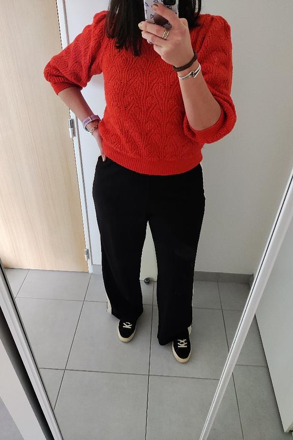 “Le pantalon parfait 🤗 taille haute, fluide, léger, matière élastique, un aspect sportswear mais qui ne fait pas jogging, une matière plus habillée, je recommande et je pense me l acheter”