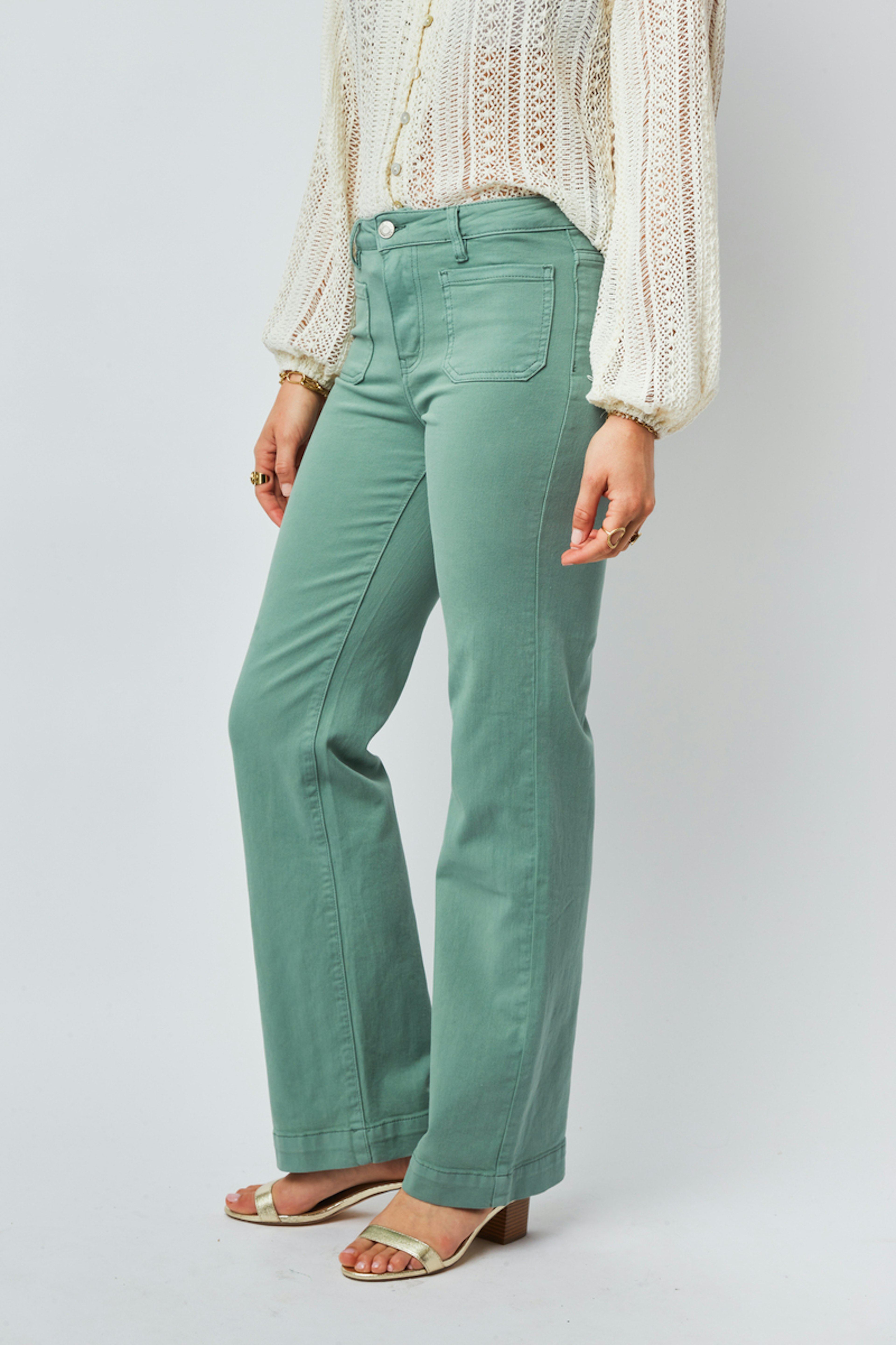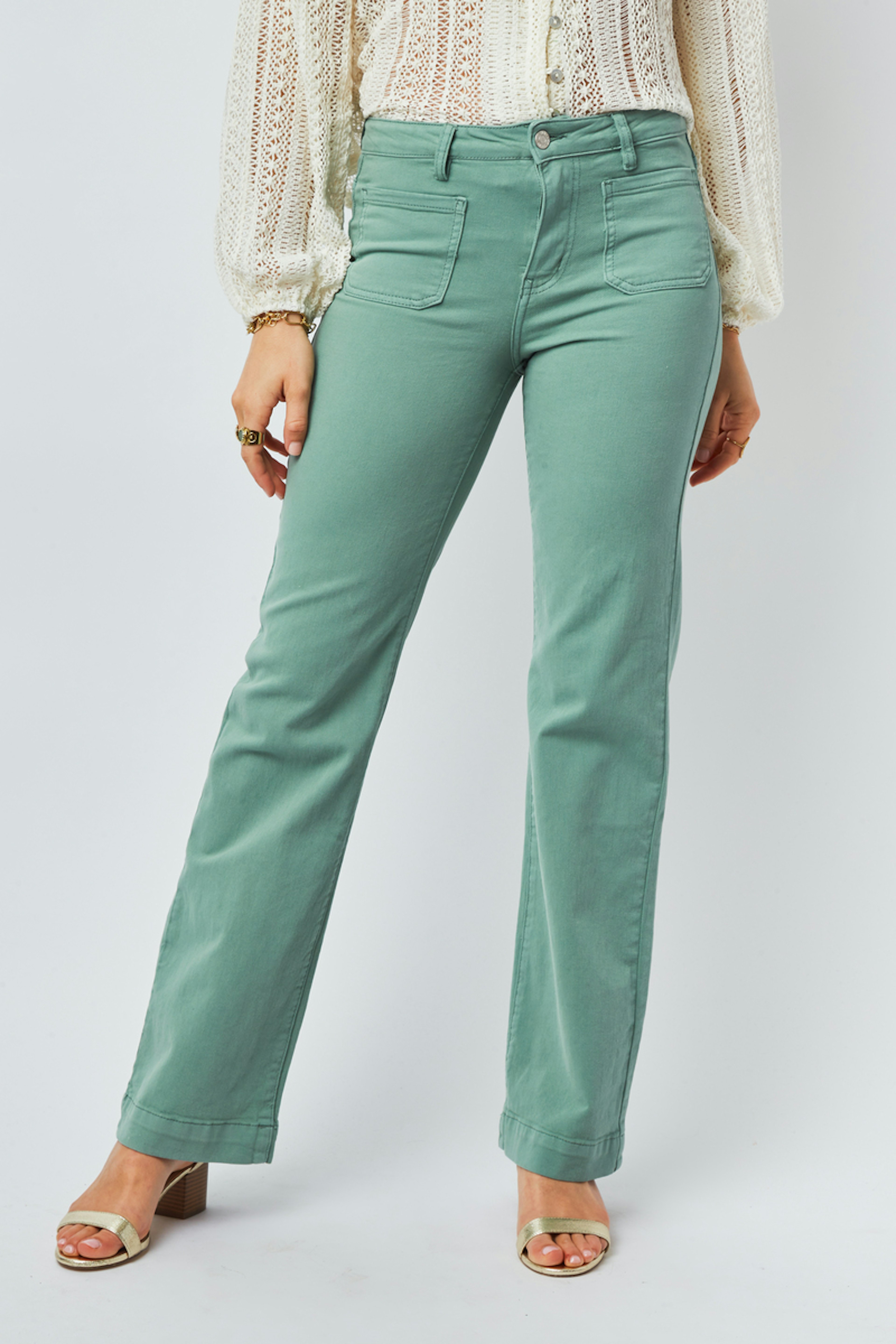 โข Pantalon Wei โข Fermeture ร boutons โข Couleur unie โข Coupe large