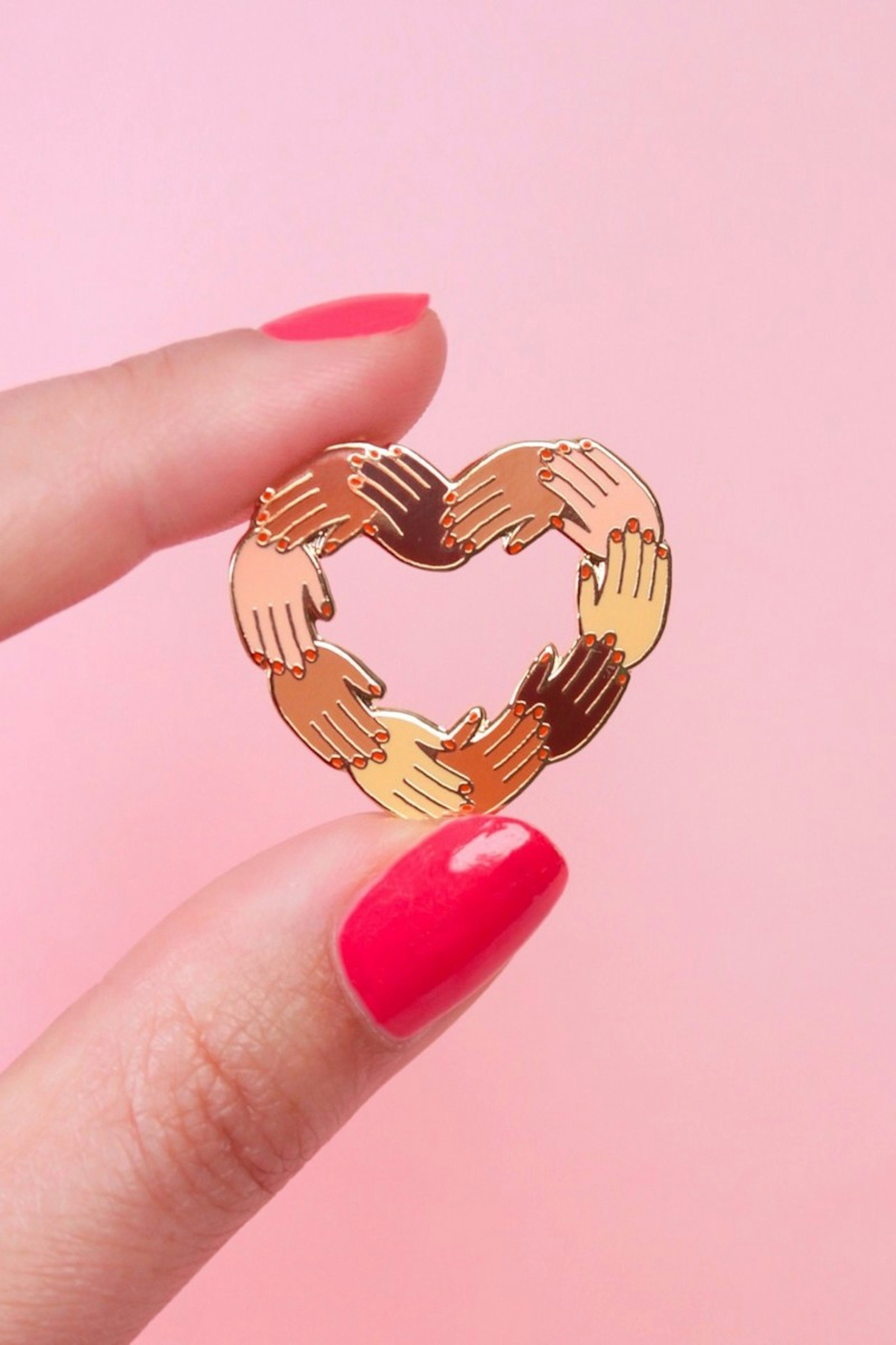 Chaรฎne humaine de petites mains formant un coeur pour cรฉlรฉbrer la solidaritรฉ et la diversitรฉ qui rend notre monde si beau. โข Pin's en forme de coeur โข Dimensions : 2,6 x 3 cm โข Fabriquรฉ en laiton