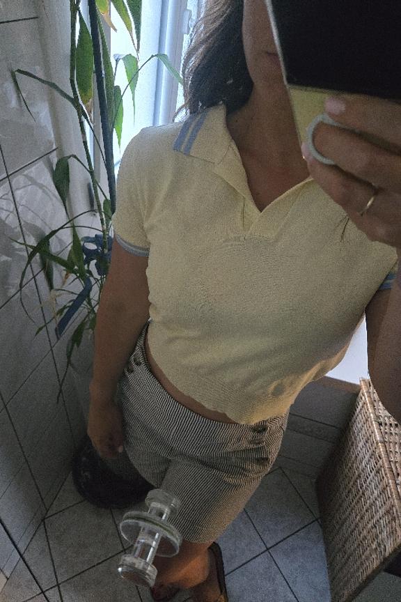 Ajoutez une touche de fraรฎcheur estivale en portant ce pull jaune avec un jean dรฉlavรฉ et des espadrilles. Parfait pour les journรฉes dรฉcontractรฉes sous le soleil. โข Pull ร manches courtes โข Coupe dรฉcontractรฉe โข Col chemise โข Bordures contrastรฉes โข Texture douce et lรฉgรจre