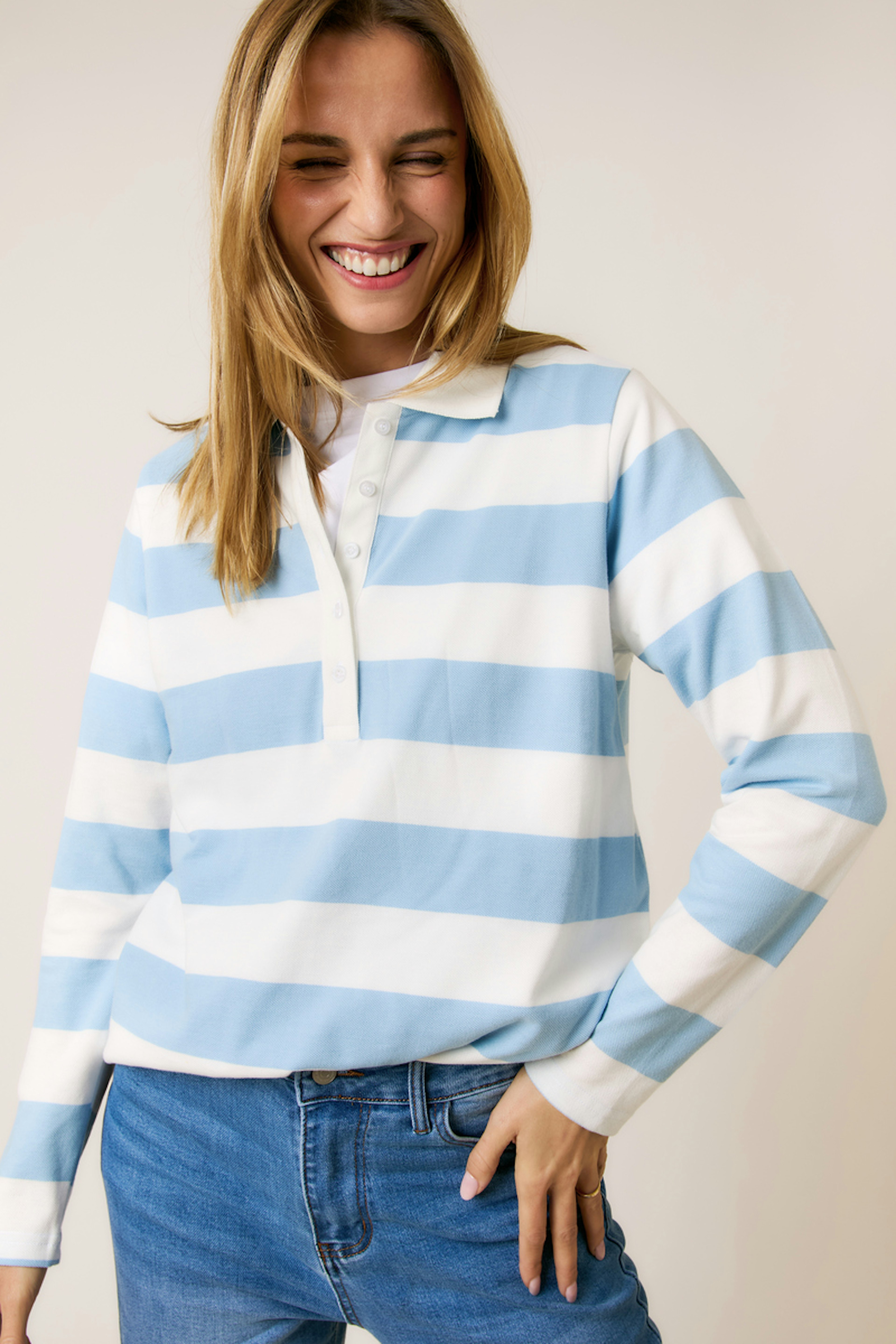 Associez ce haut avec un jean brut et des bottines pour un look hivernal décontracté et chic. Accessoirisez avec un sac en cuir pour une touche sophistiquée. • Haut rayé • Col chemise • Manches longues • Coupe droite • Motif rayures