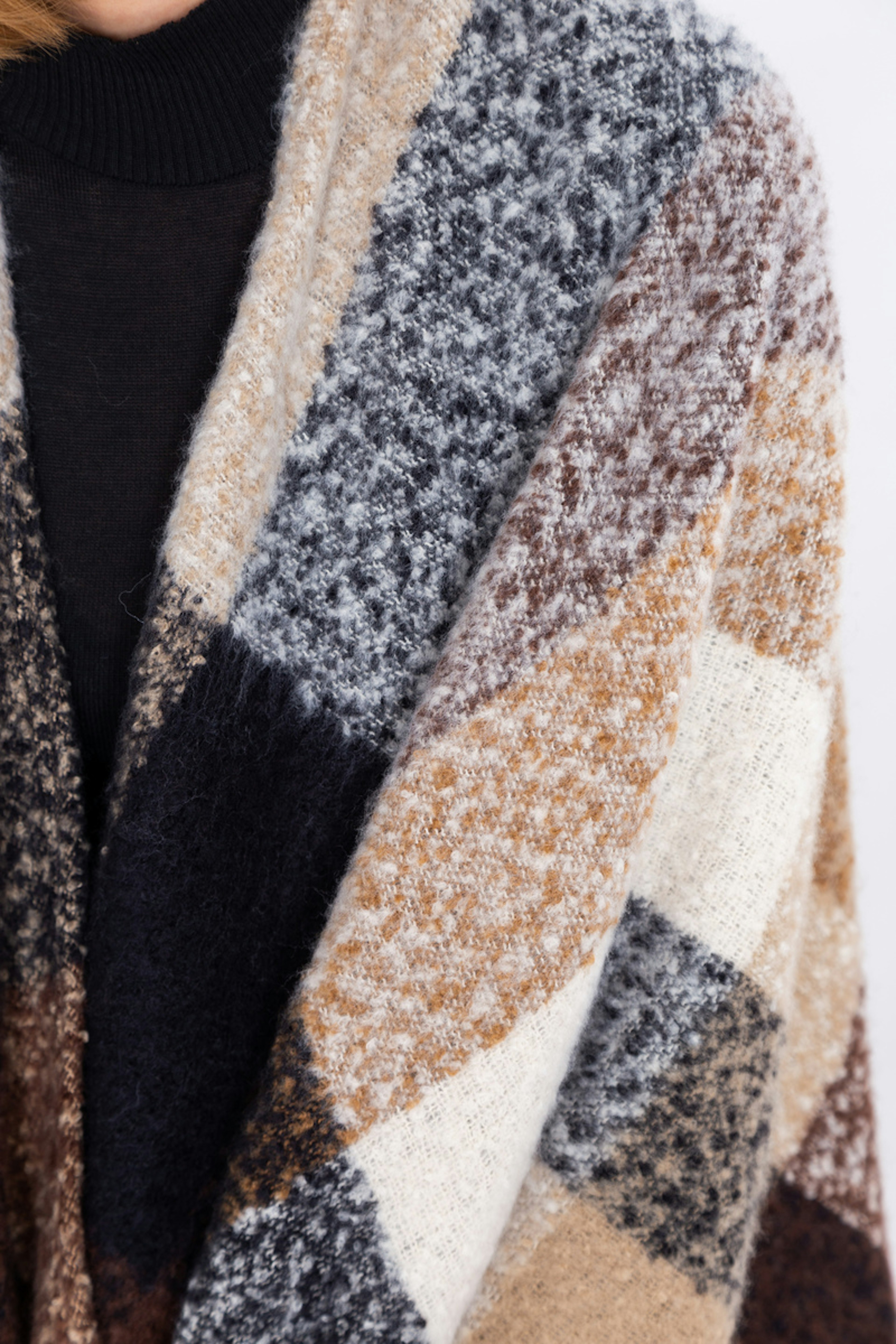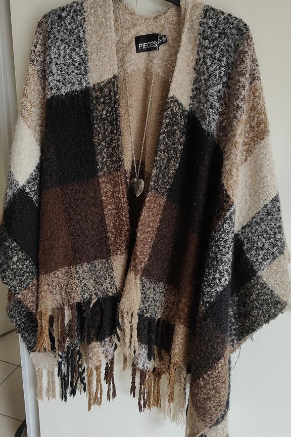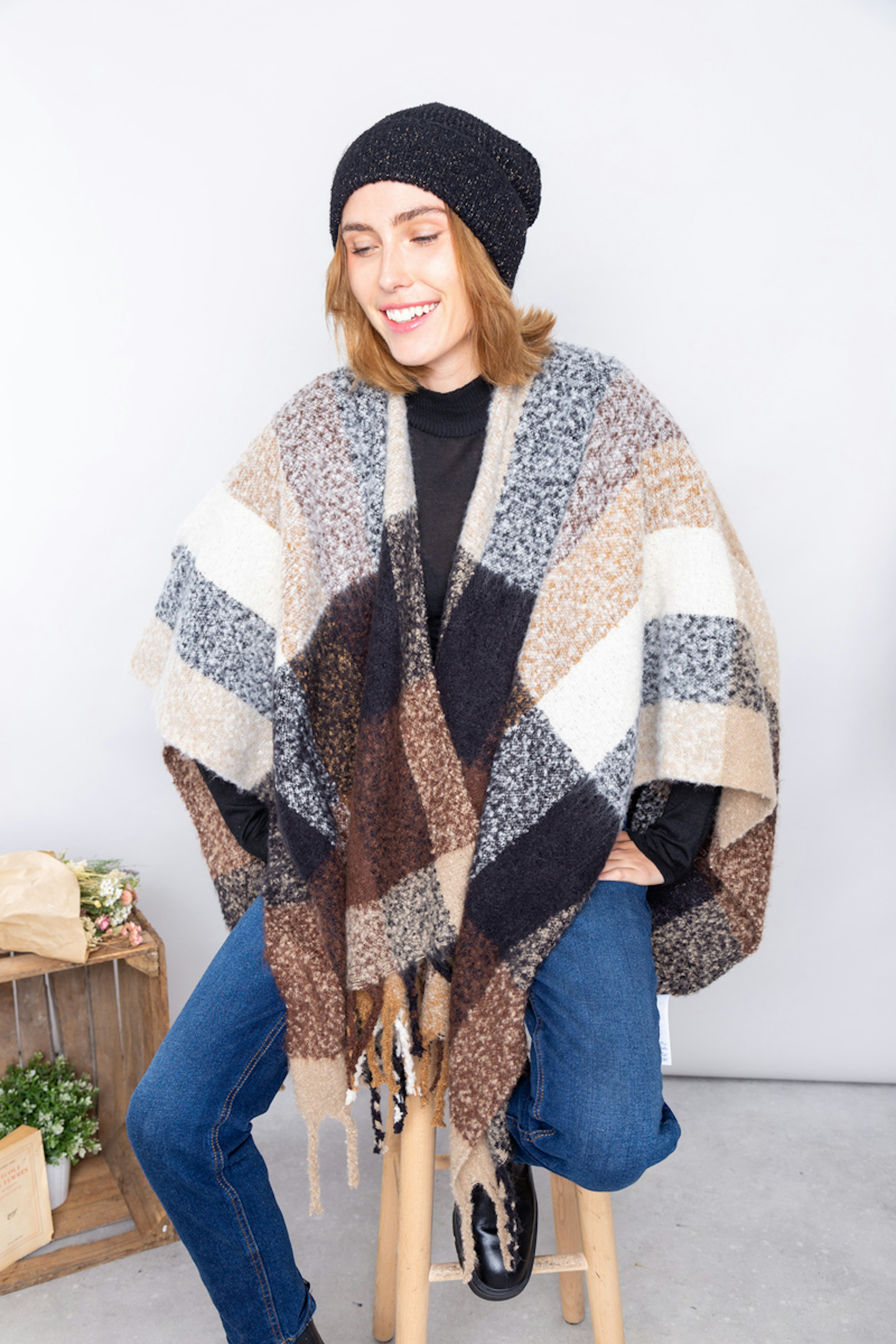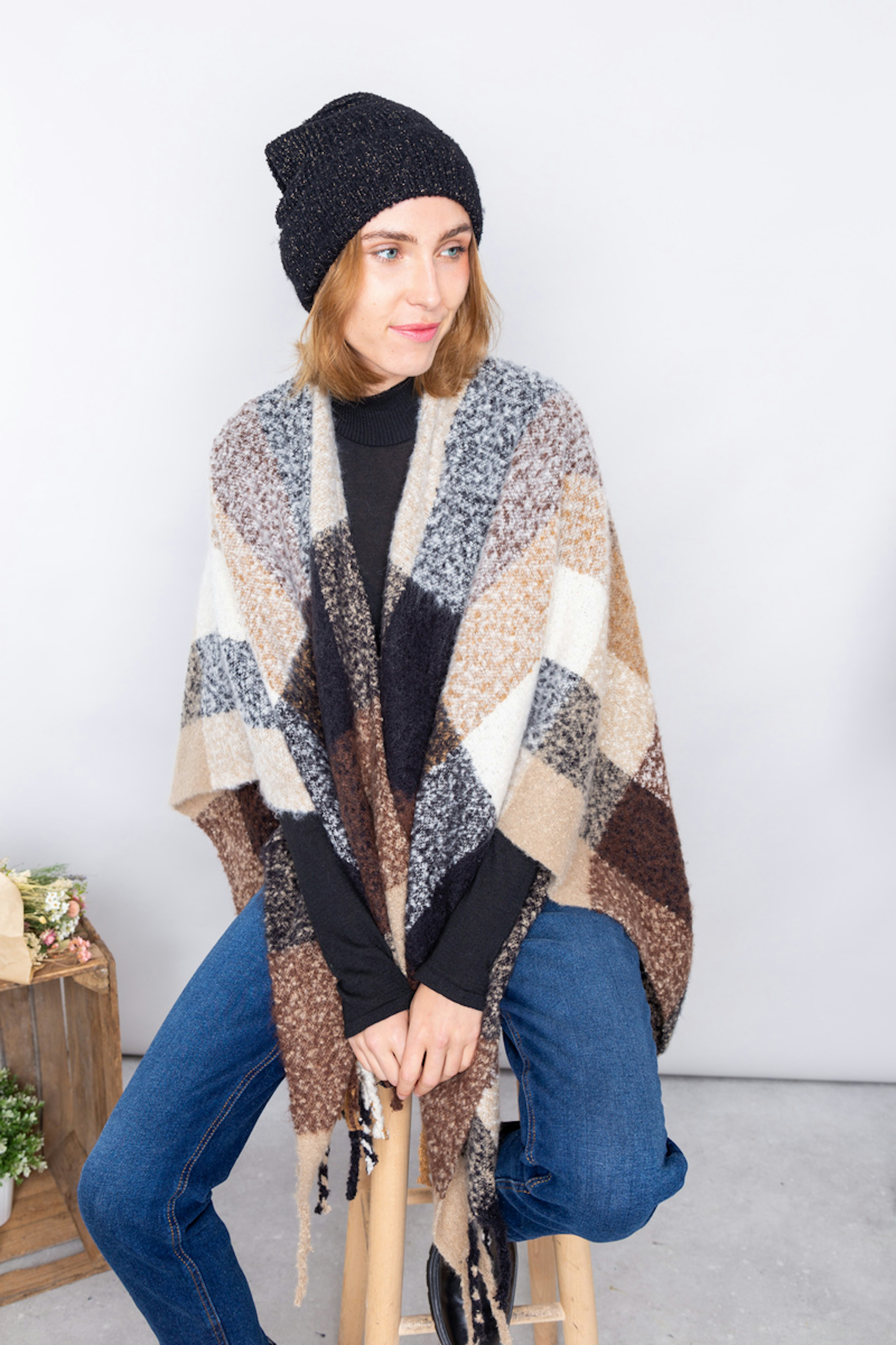 โข Poncho ร carreaux aux coloris d'automne โข Contient du polyester recyclรฉ โข On aime le porter par-dessus une veste pour rajouter une touche bohรจme ร n'importe quelle tenue !