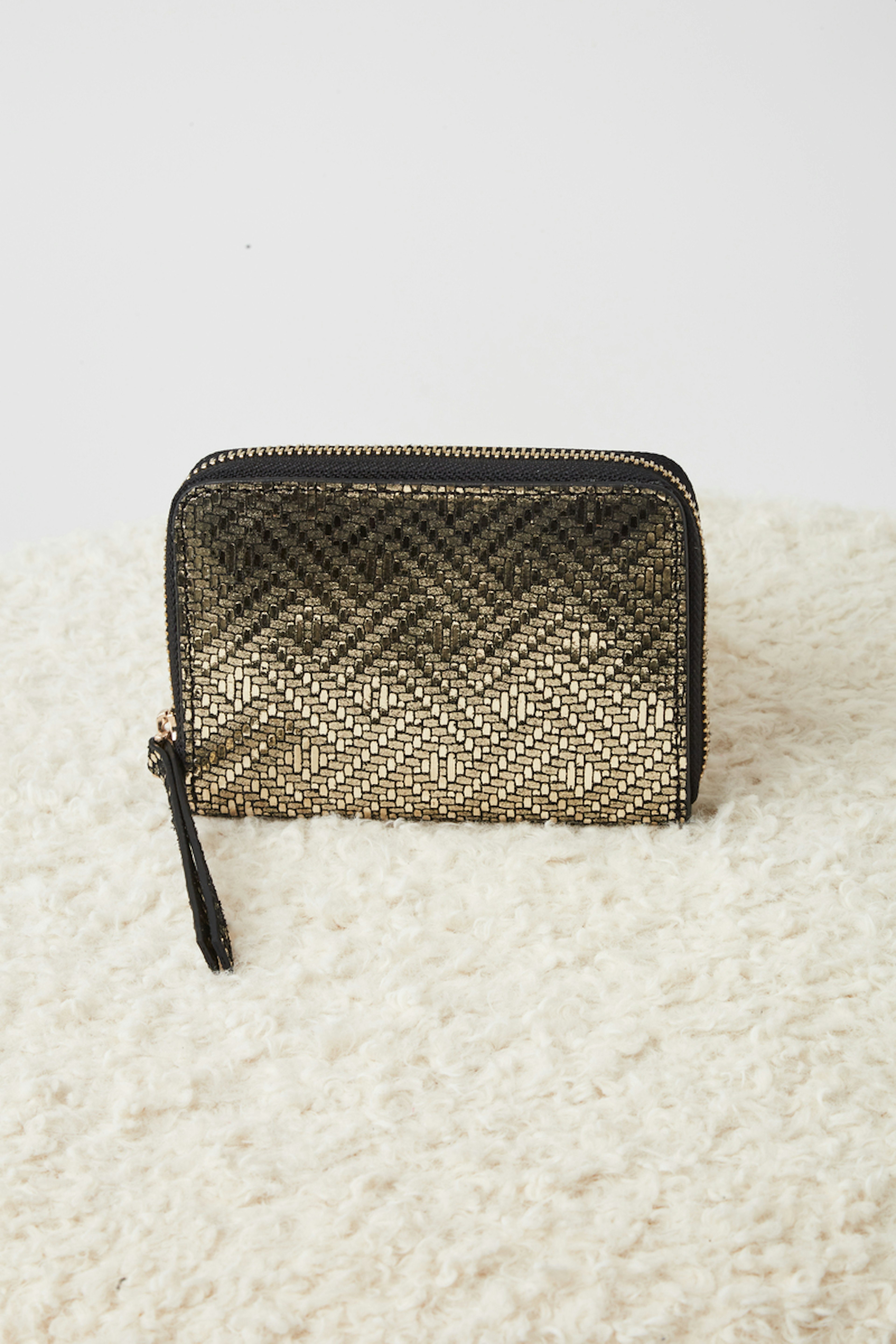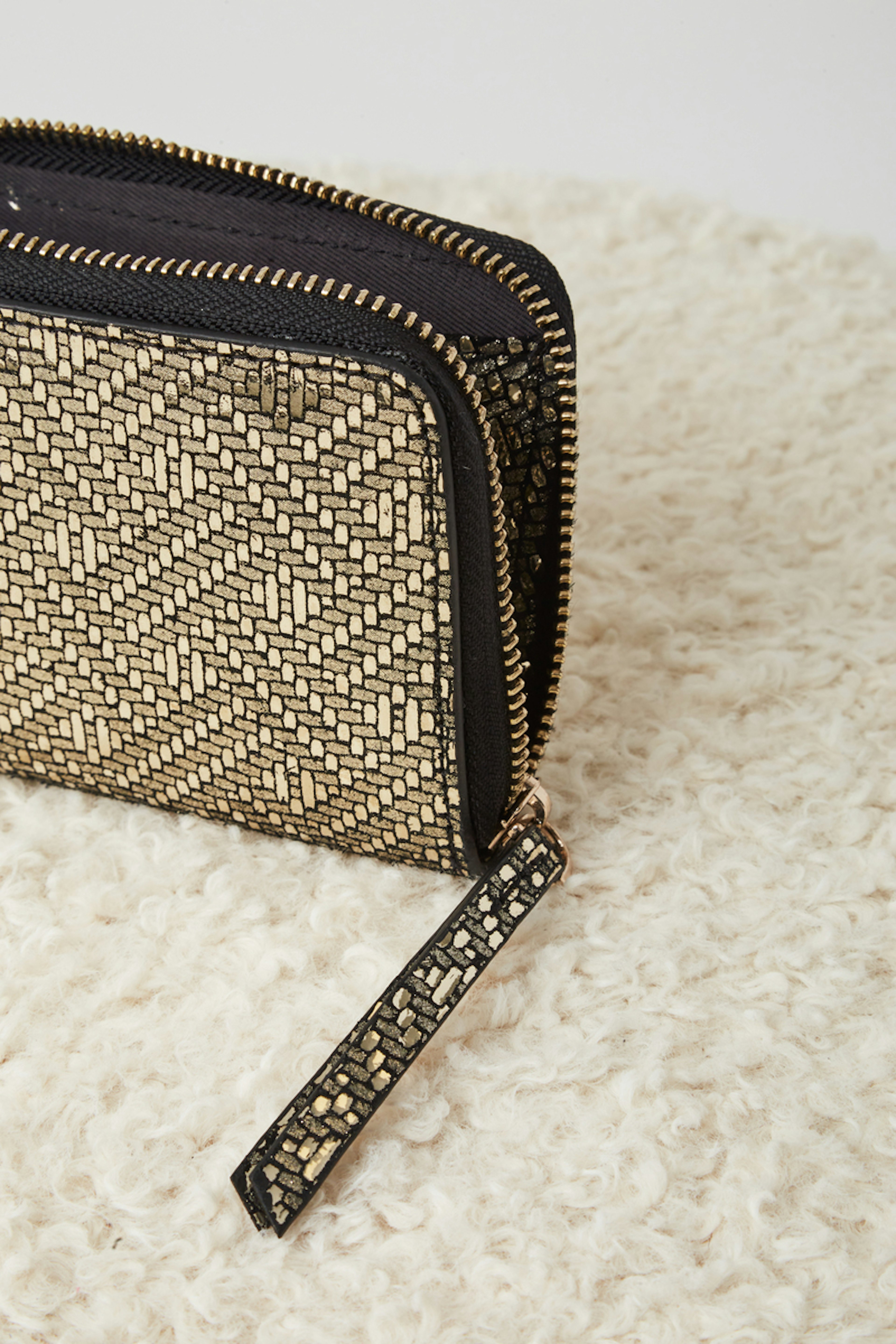โข Portefeuille Danino โข Cuir de vachette โข Fermeture zipรฉe โข Motif gรฉomรฉtrique