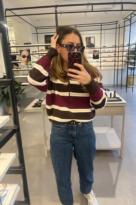 Associez ce pull rayรฉ ร un pantalon en laine pour une allure chic et intemporelle. Idรฉal pour les journรฉes dโhiver. โข Pull avec motif rayรฉ โข Col chemise โข Manches longues โข Coupe ample โข Fermeture par boutons