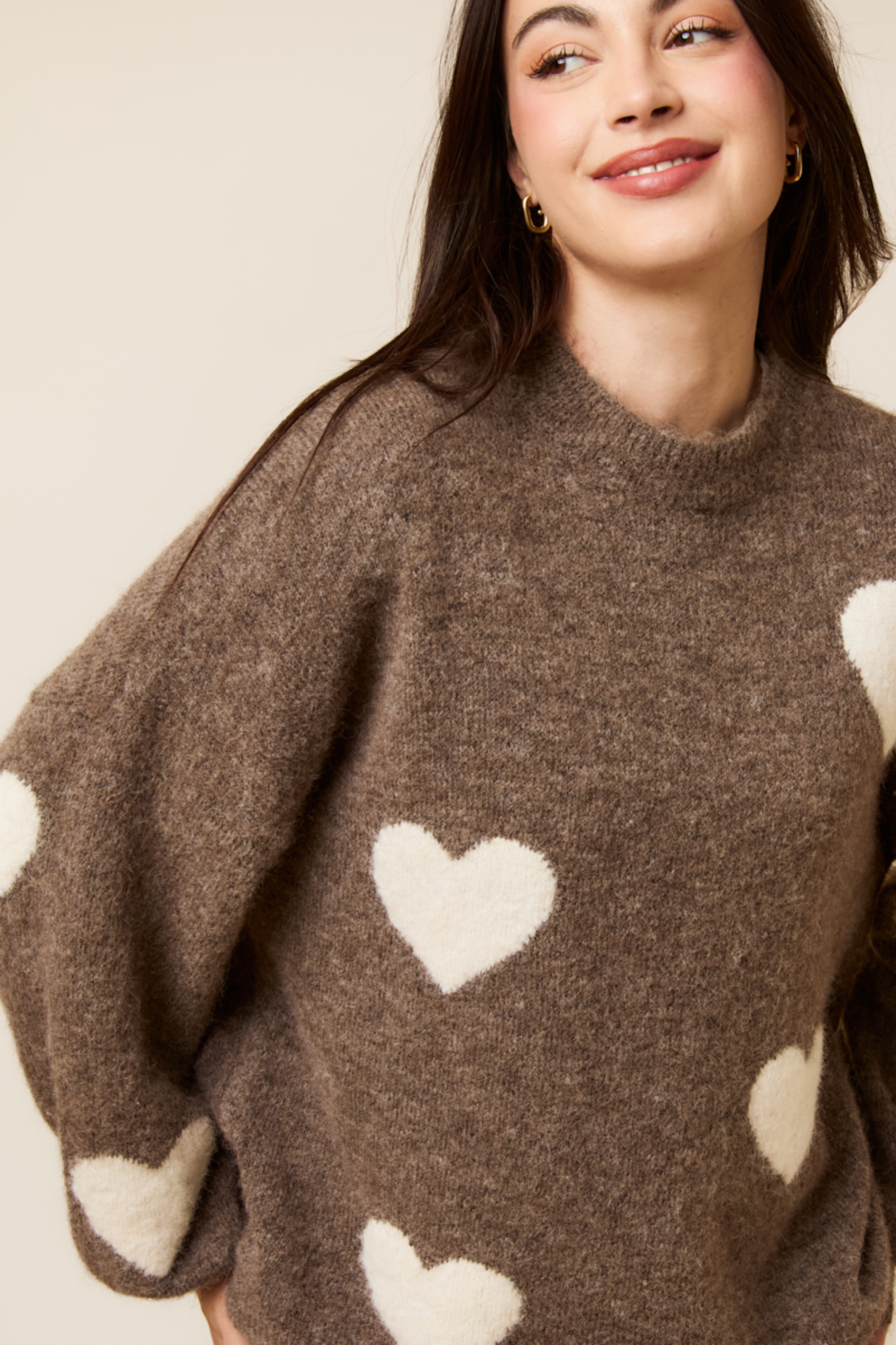 Associez ce pull douillet à un jean skinny et des bottines pour un look cocooning parfait pour l'hiver. • Pull cosy • Col montant • Manches longues • Coupe ample • Motif cœur