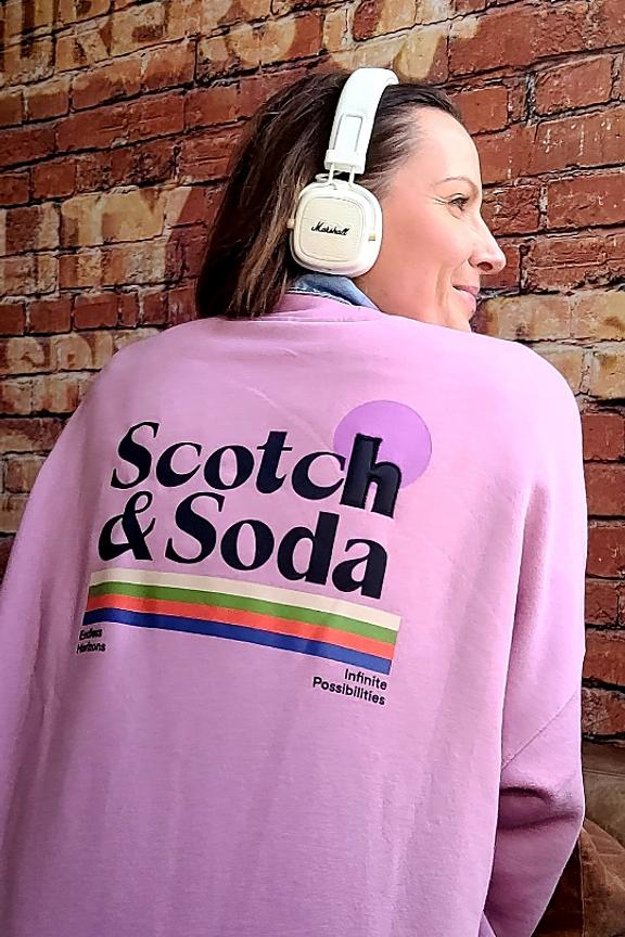 On adore l'esprit 90's de ce sweat Scotch and Soda. โข Molleton tout doux โข Imprimรฉ devant et dos โข Bord cรดte au col et en bas de manches โข Col rond