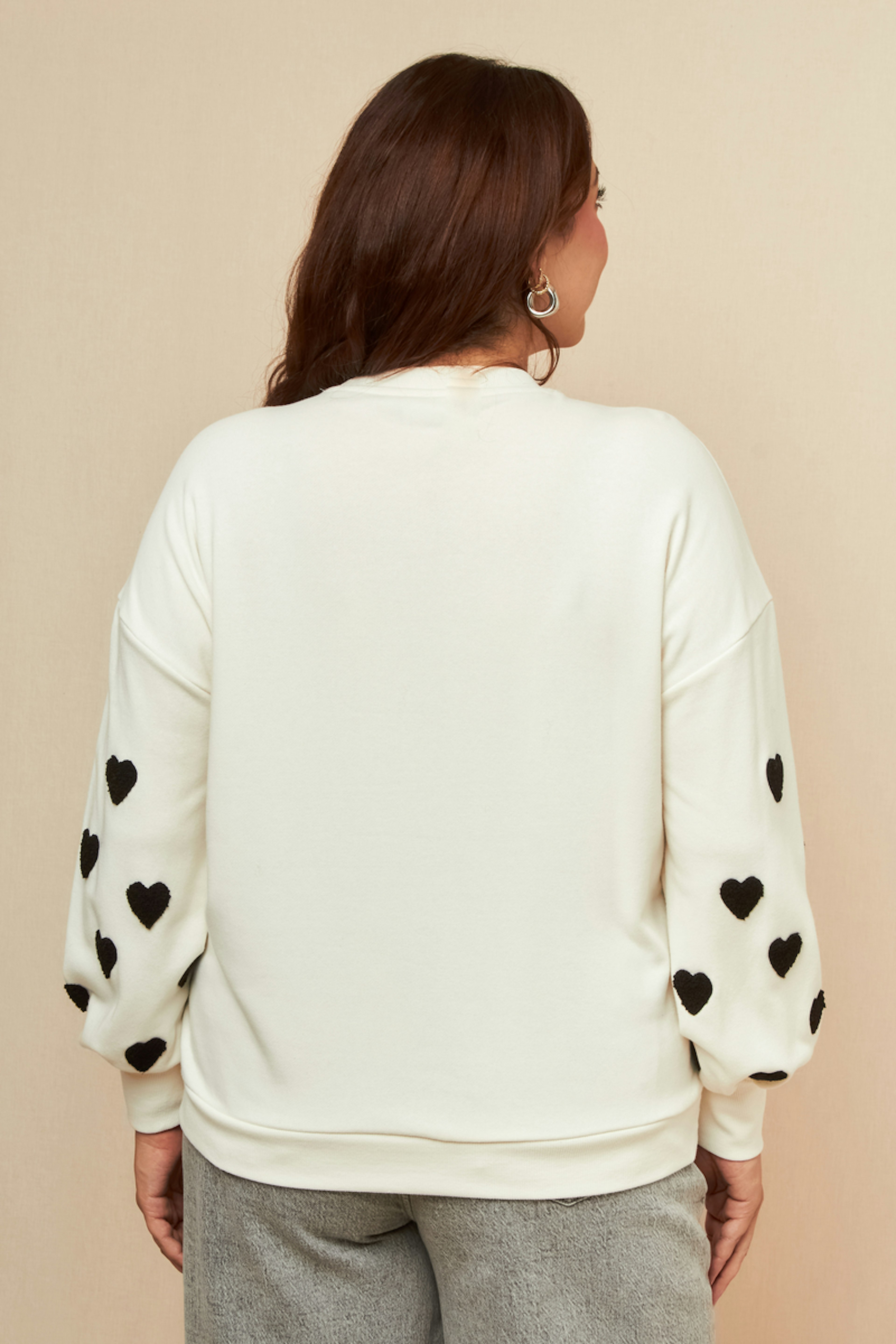 Associez ce pull avec un jean ajusté et des bottines pour un look casual chic d'hiver. Ajoutez une écharpe colorée pour une touche de fraîcheur. • Pull en coton mélangé • Manches longues • Motif cœur • Coupe ample • Encolure ras du cou