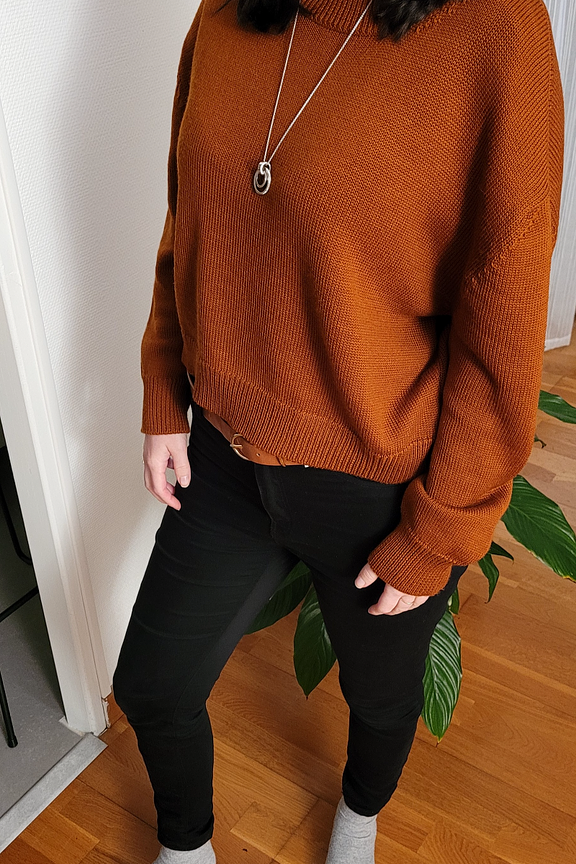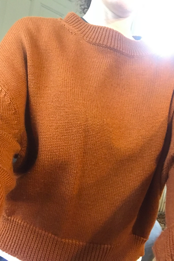 โJe nโai pas aimรฉ la coupe particuliรจre du pull. Court et large au niveau des bras.โ