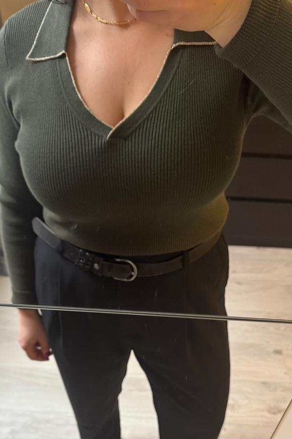 Ce pull élégant est idéal avec un jean taille haute et des bottines. Ajoutez un manteau structuré pour les journées fraîches. • Pull en laine mélangée • Décolleté en V • Manches longues • Col à revers • Finitions contrastées