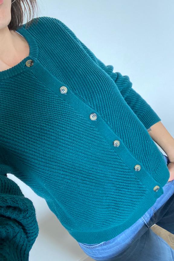Entre la veste et le gilet, les cรดtes de ce gilet sont tricotรฉes en diagonal. โข Notre gilet Cosmo est tricotรฉ en 85% coton issu de l'agriculture biologique et 15% laine โข Labellisรฉ GOTSยฎ โข Col rond โข Volume droit โข Finitions cรดtes au col, bas de manches, et bas de corps โข Il se ferme sur le devant par des boutons en corozo de couleur naturelle