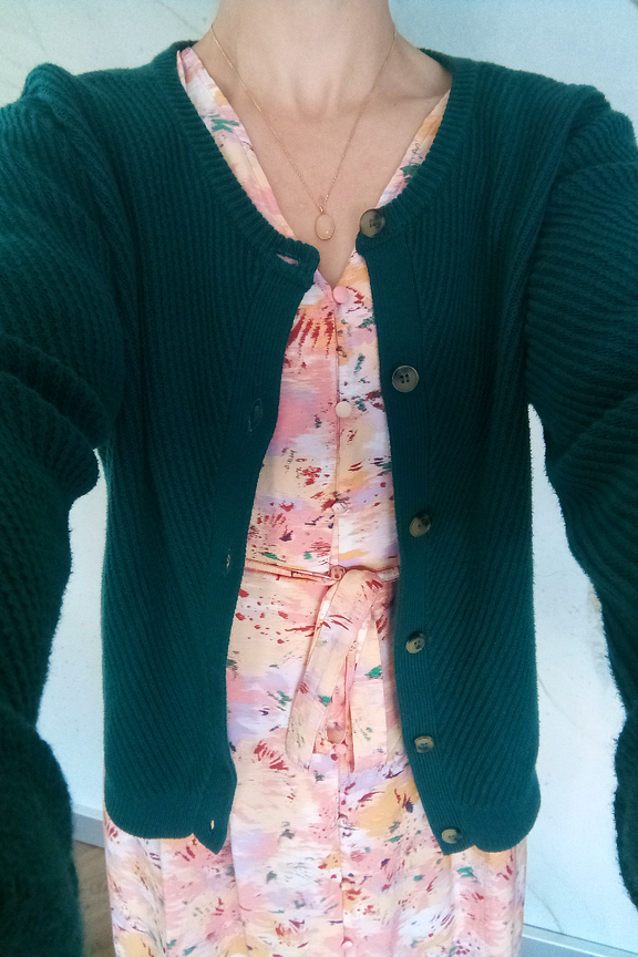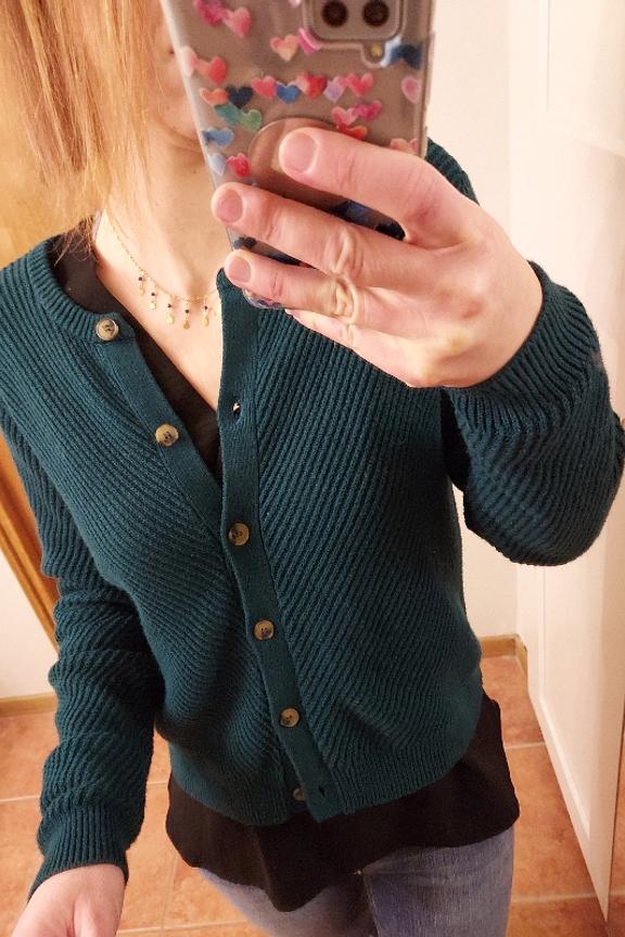 โGilet d'une jolie couleur ,confortable .Je l'ai portรฉ avec un jean noir .โ