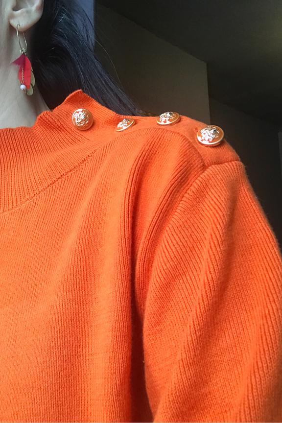 โTrรจs joli pull avec de jolis boutons sur lโรฉpaule.โ