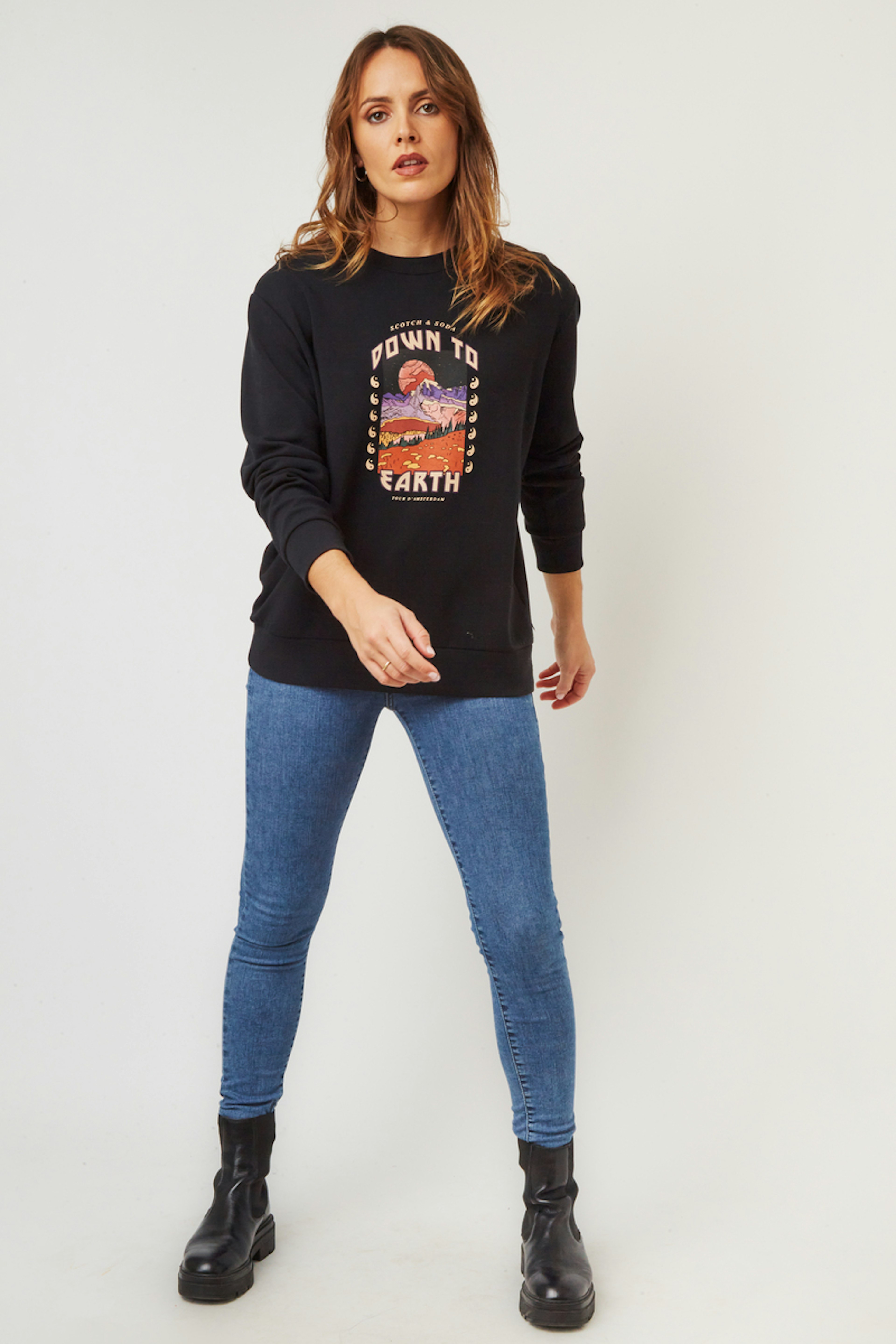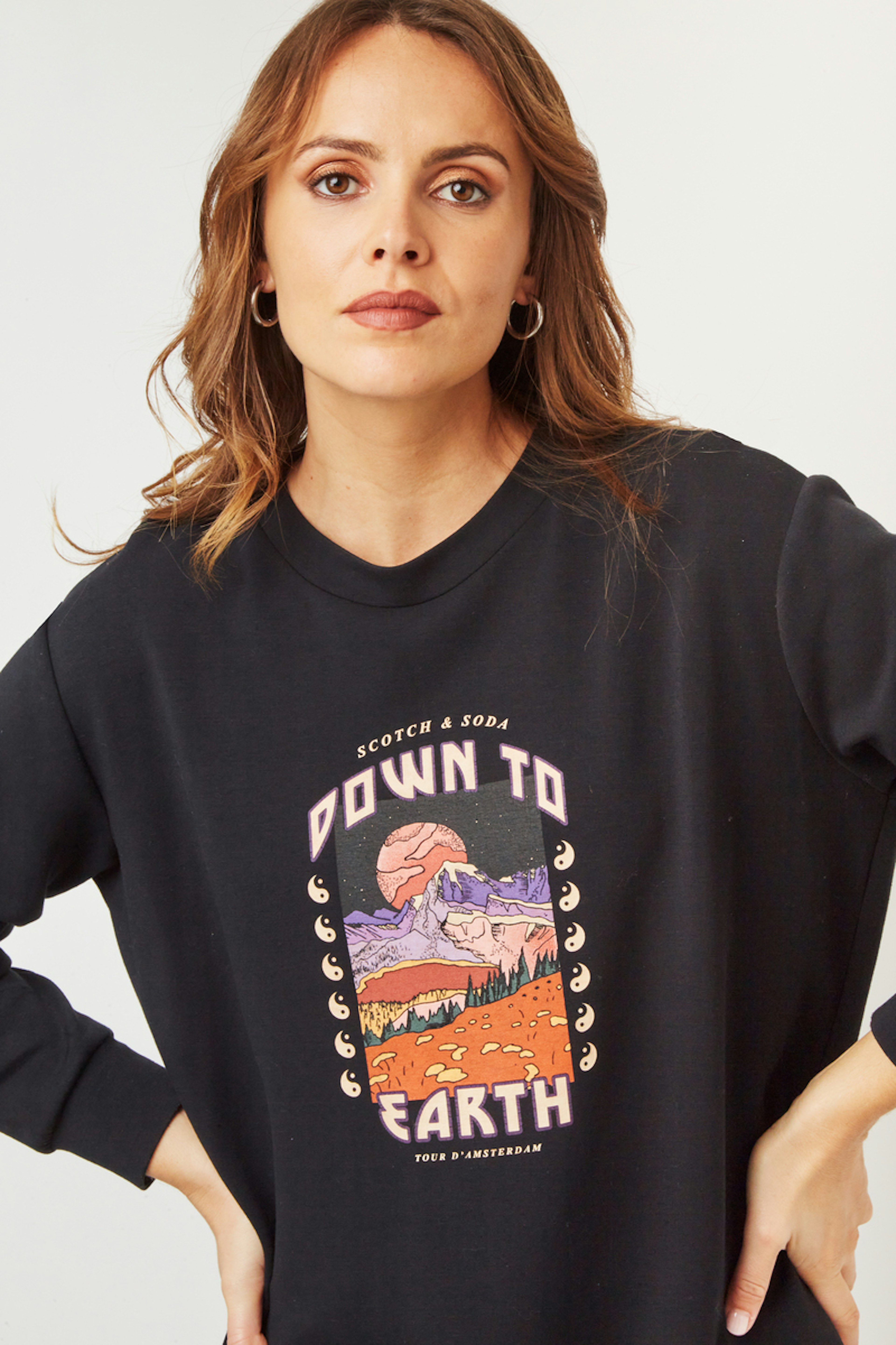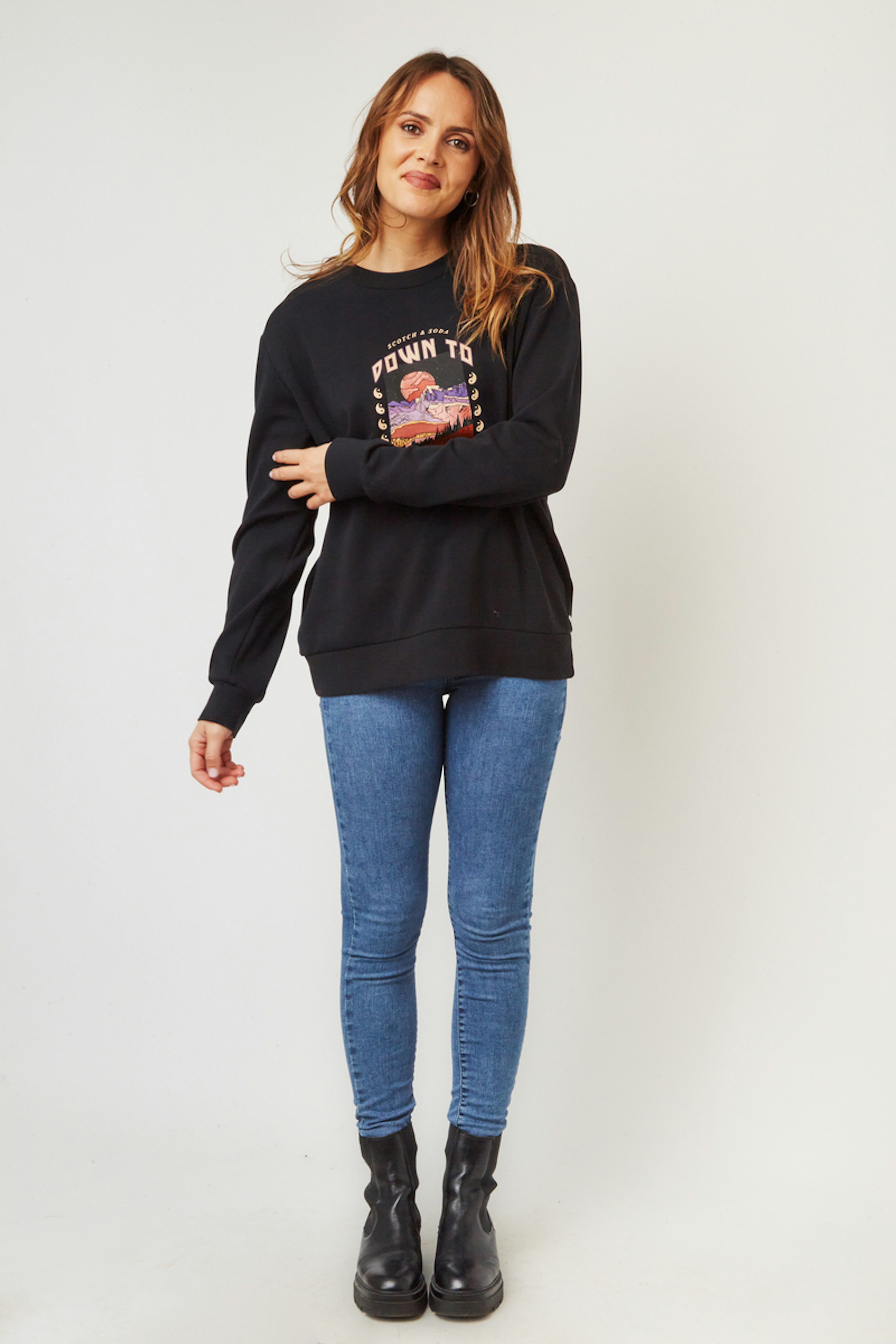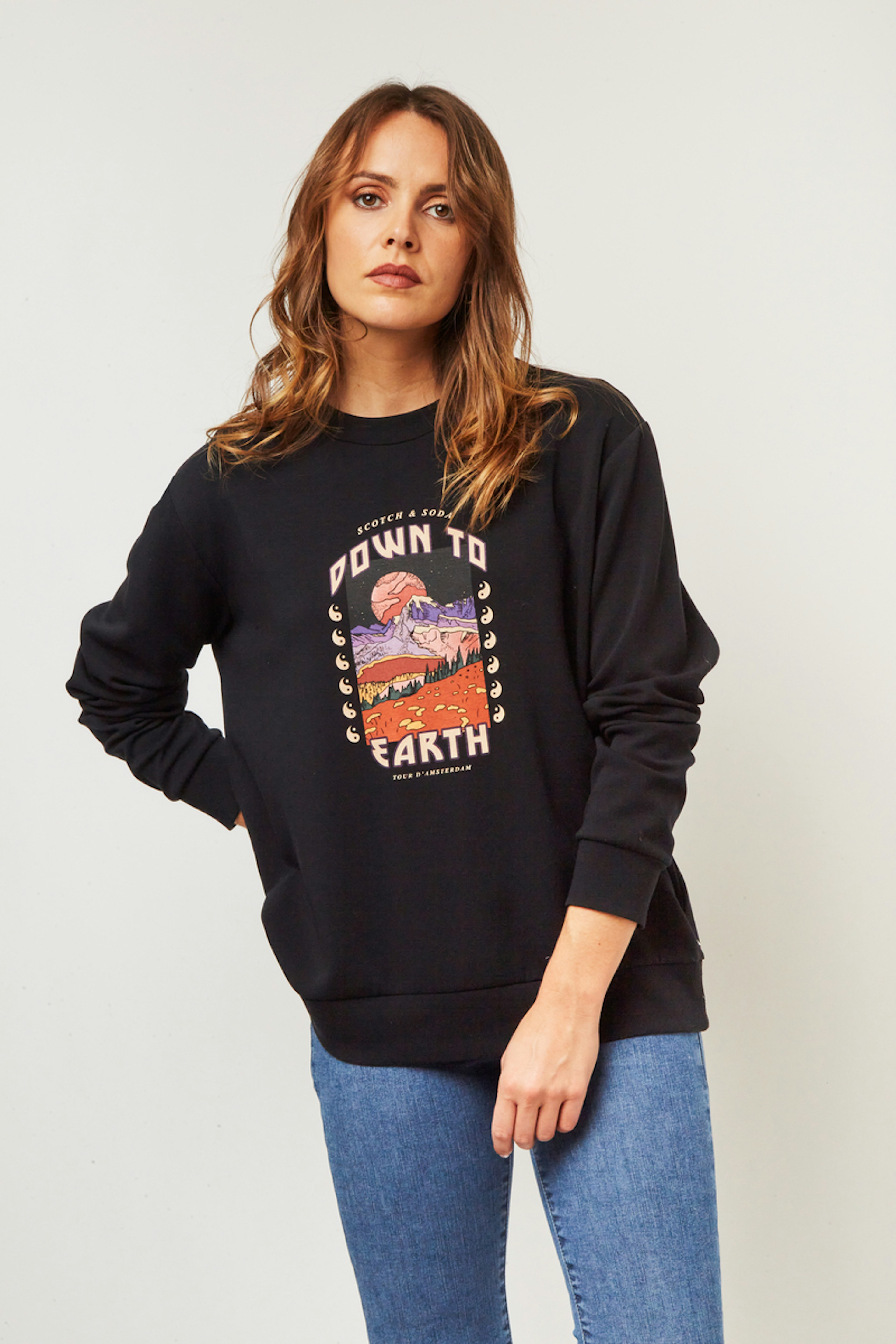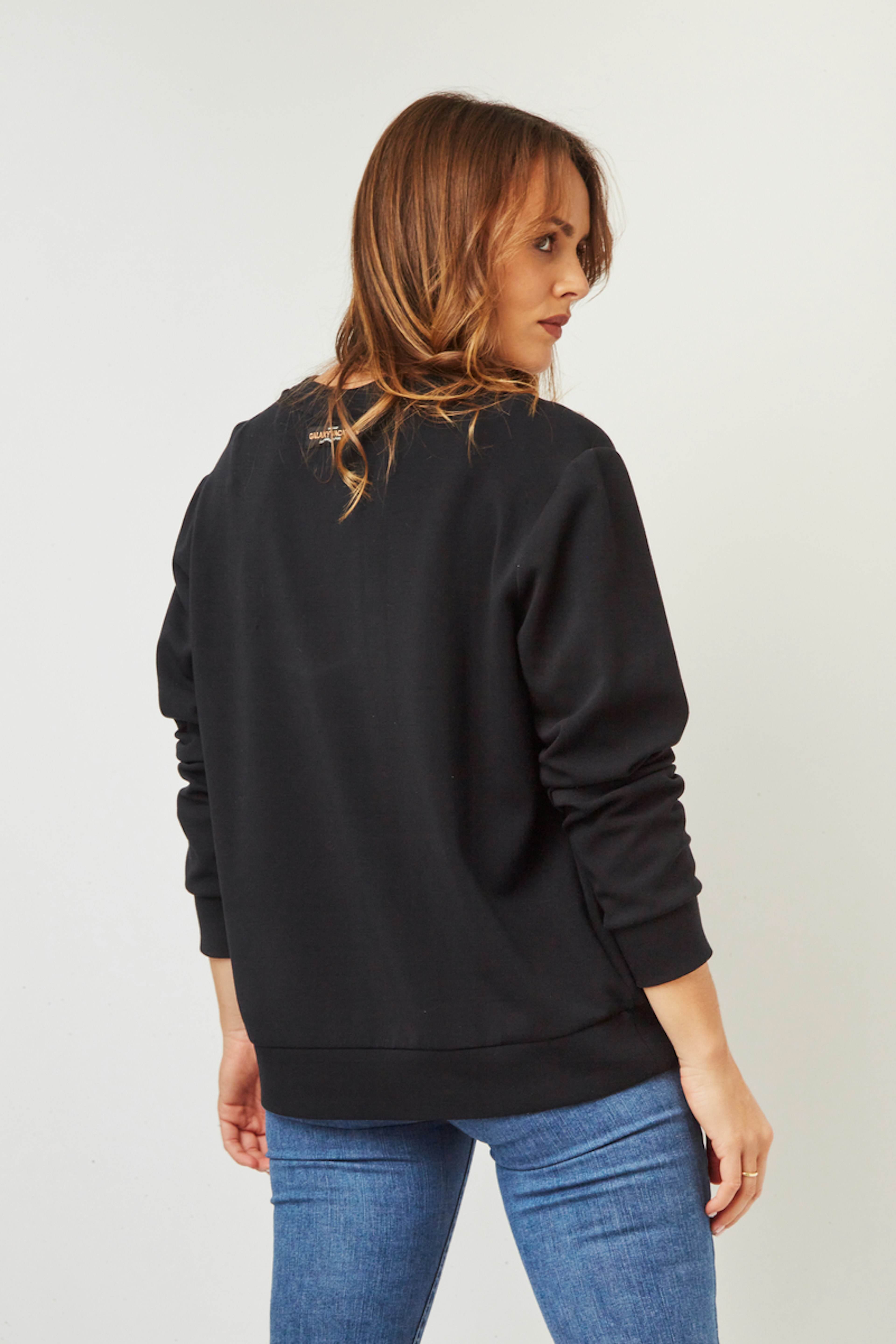 โข Sweat ร manches longues noir โข Col rond โข Manches longues โข Sรฉrigraphie rรฉtro colorรฉe sur le devant