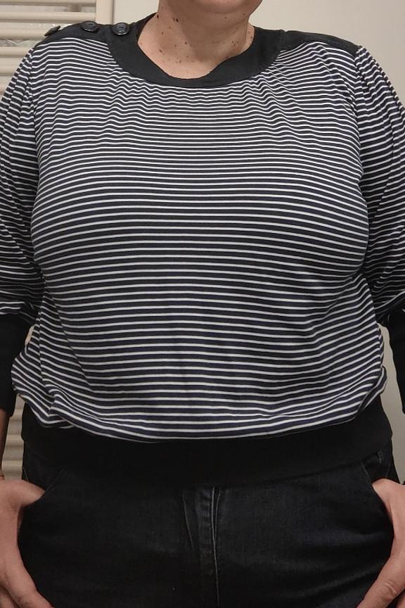 โPull rayรฉ trรจs sympa, avec petit bouton sur l'รฉpaule, agrรฉable a porter mais un peu petit porter ( poitrine,bras et longueur)โ