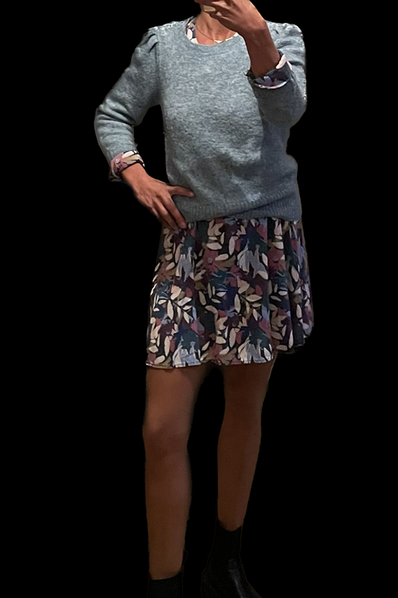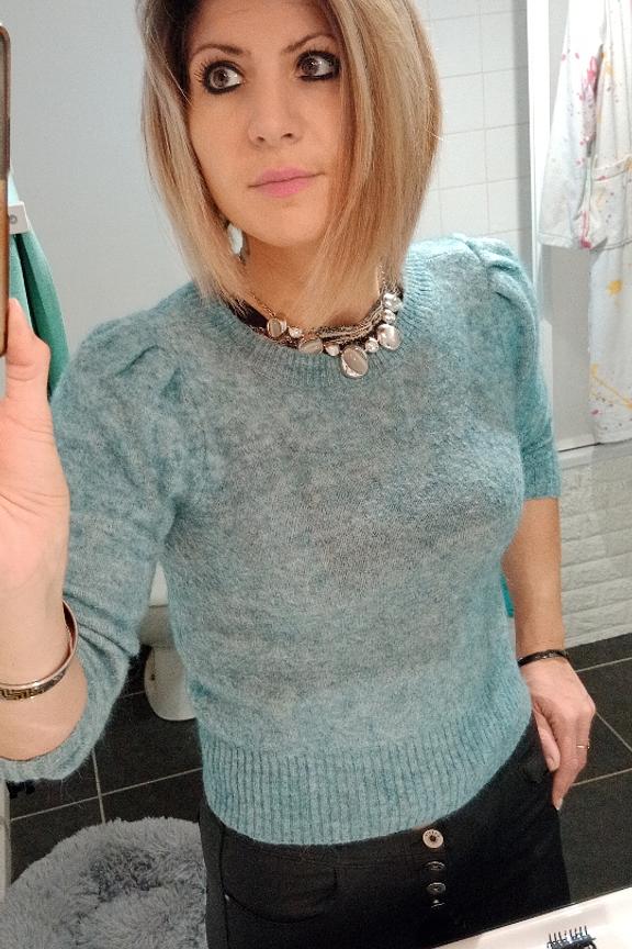 โข Petit pull lรฉger bleu ciel โข Manches longues โข Col rond โข Epaules lรฉgรจrement marquรฉes par de petites รฉpaulettes โข Ourlets poignets et bas du pull cรดtelรฉs