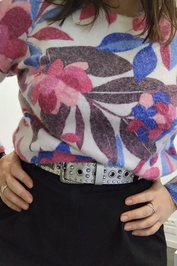 โข Gilet en maille imprimรฉe qui peut se porter dans les 2 sens โข Imprimรฉ exclusif composรฉ de 12% d'alpaga โข Encolure V boutonnรฉe ร porter devant/dos โข Manches longues et bord-cรดtes en finition โข Look feminin.