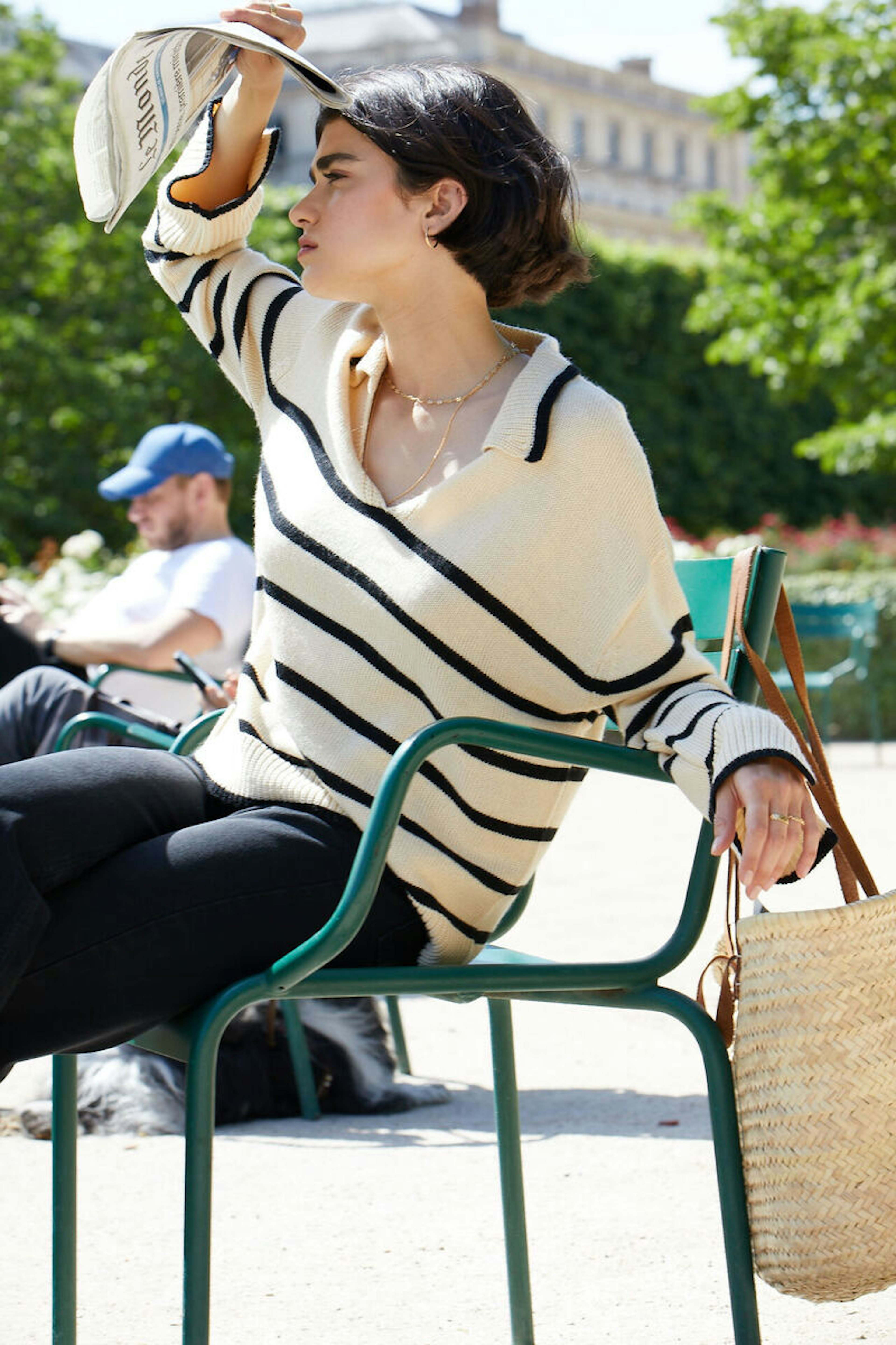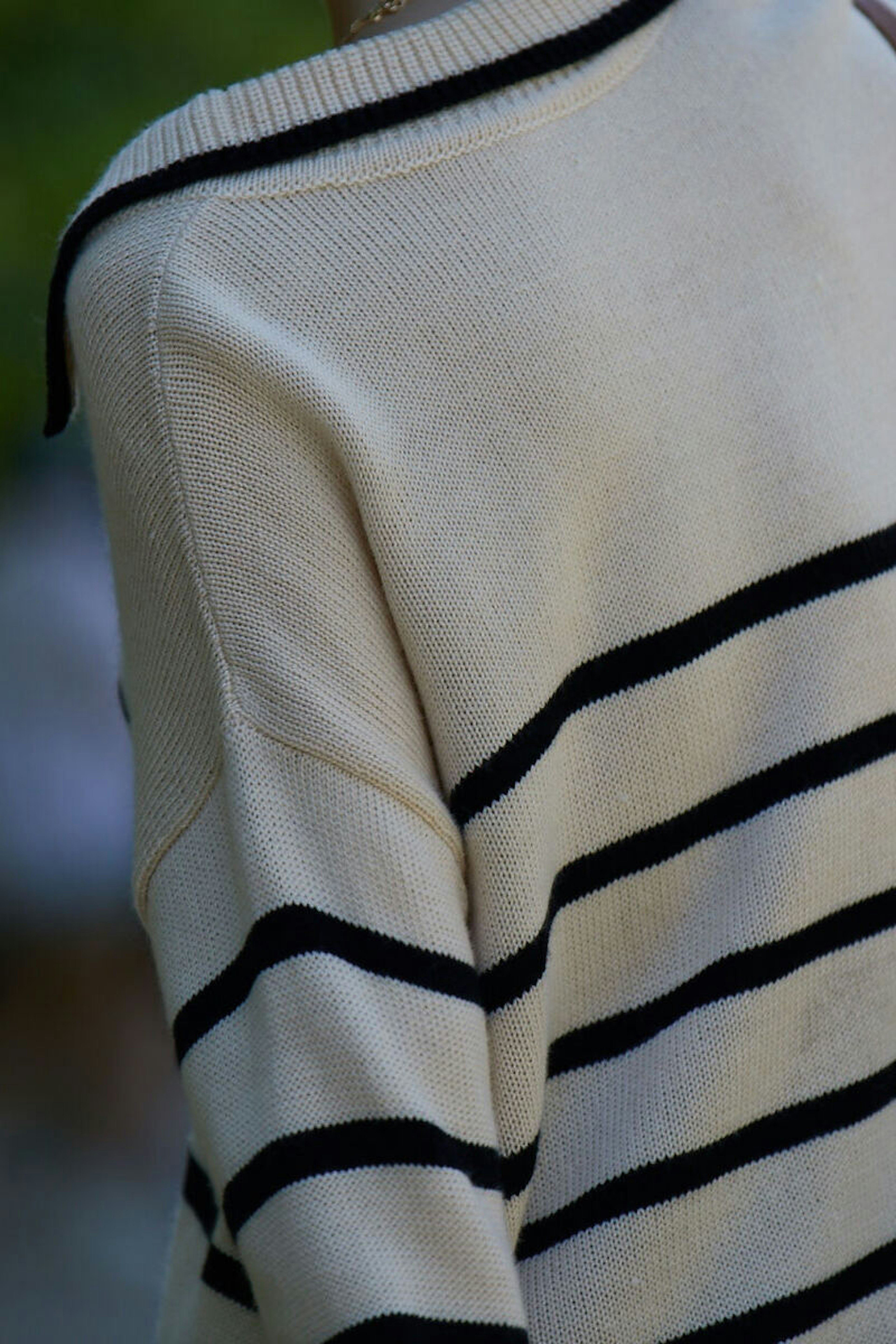 โข Pull mariniรจre โข Couleur crรจme/รฉcru et rayures noires โข Col en V, esprit chemise, dรฉgagรฉ โข Coupe large โข Manches longues et รฉvasรฉes