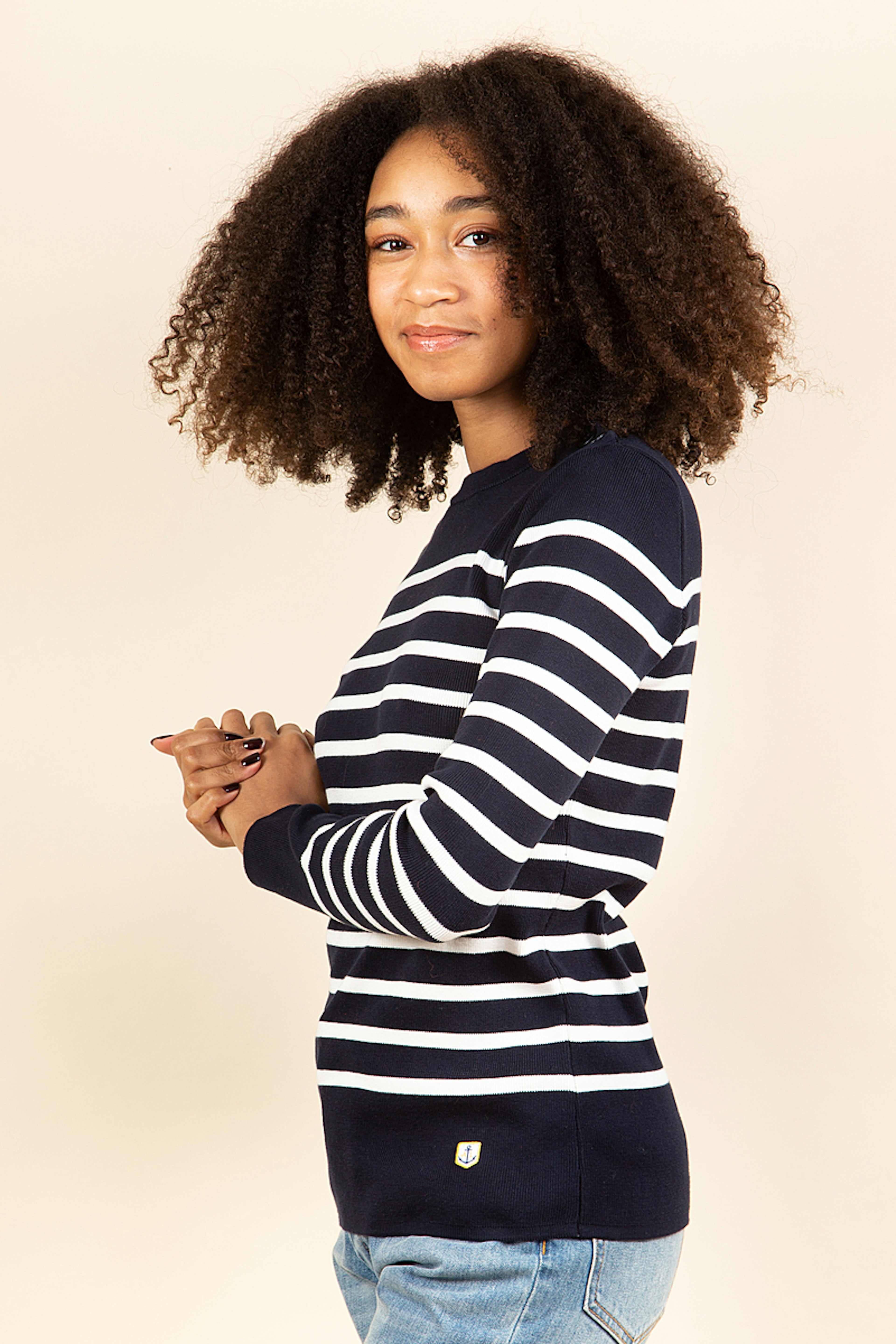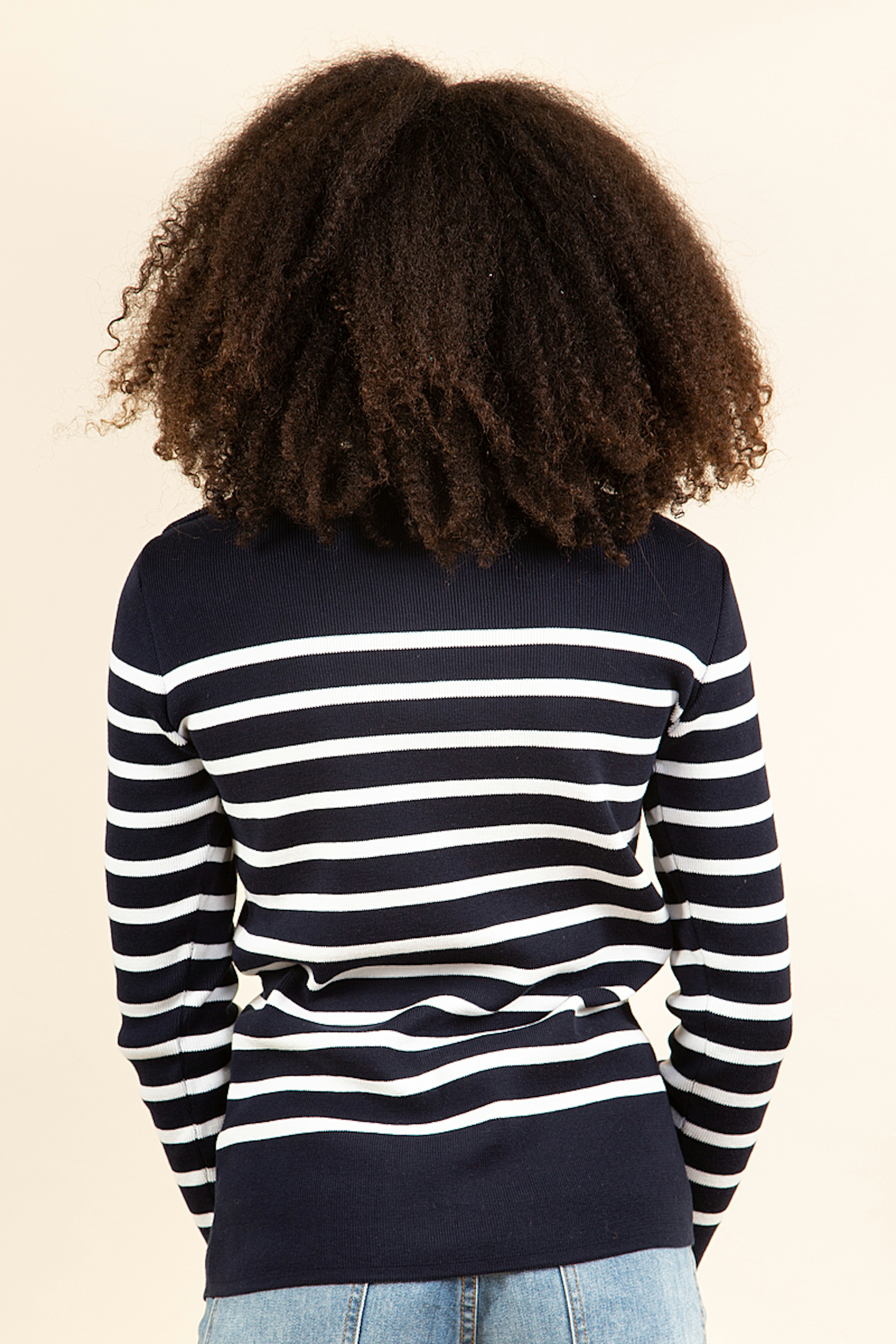 Craquez pour la mariniรจre en coton Groix. Idรฉale pour la mi-saison, sa maille lรฉgรจre se porte aussi bien sous une veste en automne qu'au printemps. A associer ร un mom jeans pour plus de modernitรฉ.