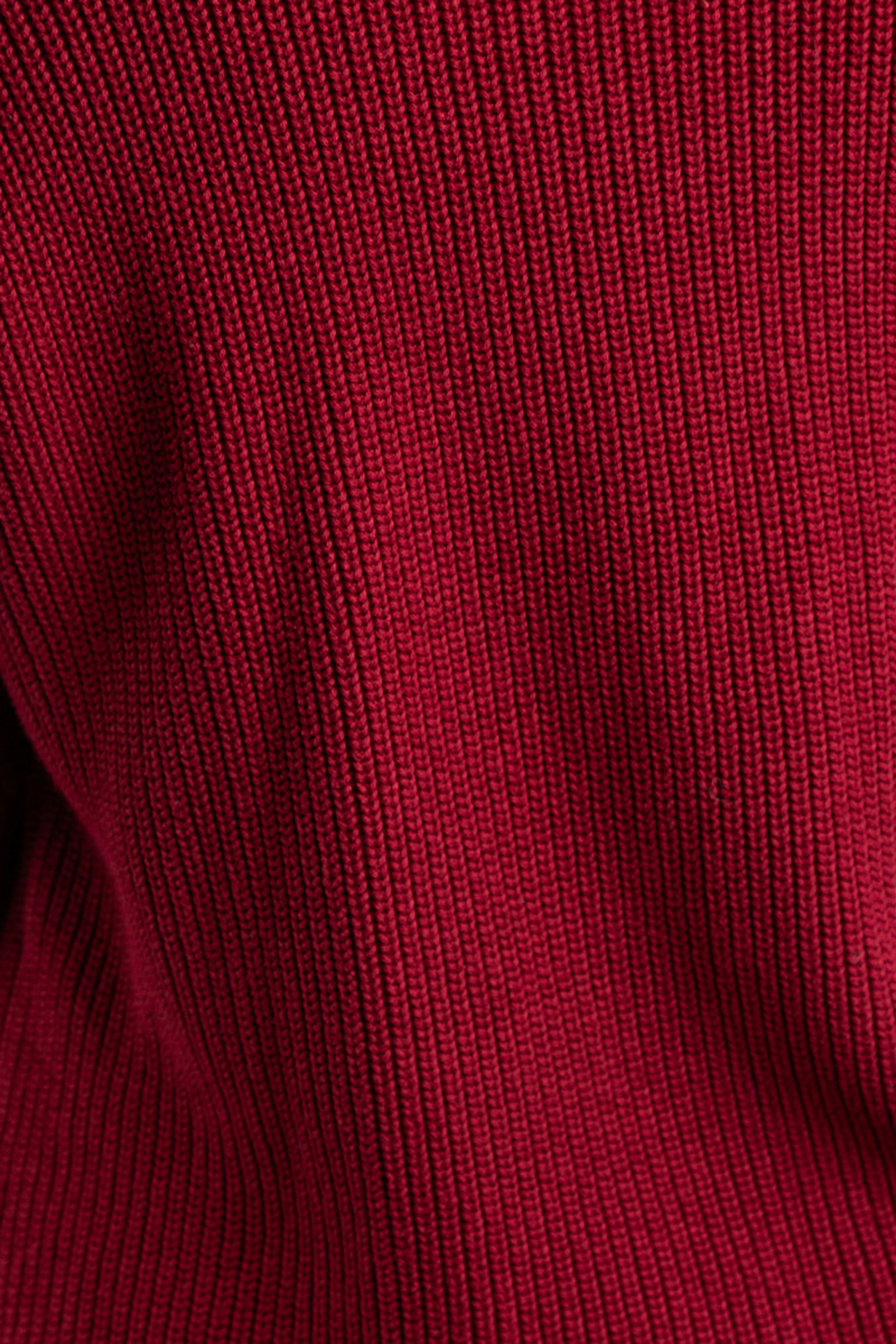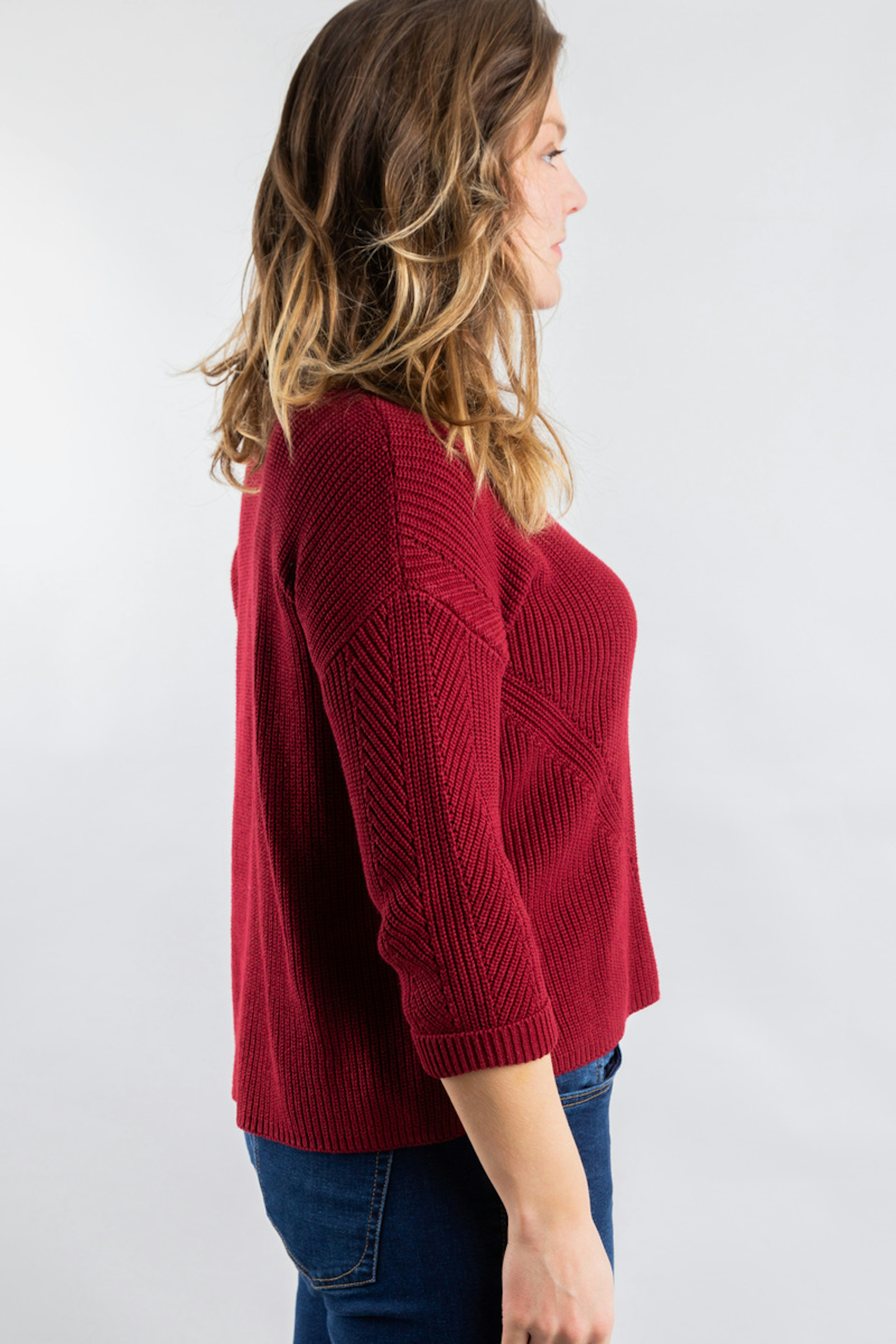 โข Pull rouge en maille cรดtelรฉe โข Manches 3/4 droites โข Col rond โข Bords cรดtelรฉs โข Coupe classique